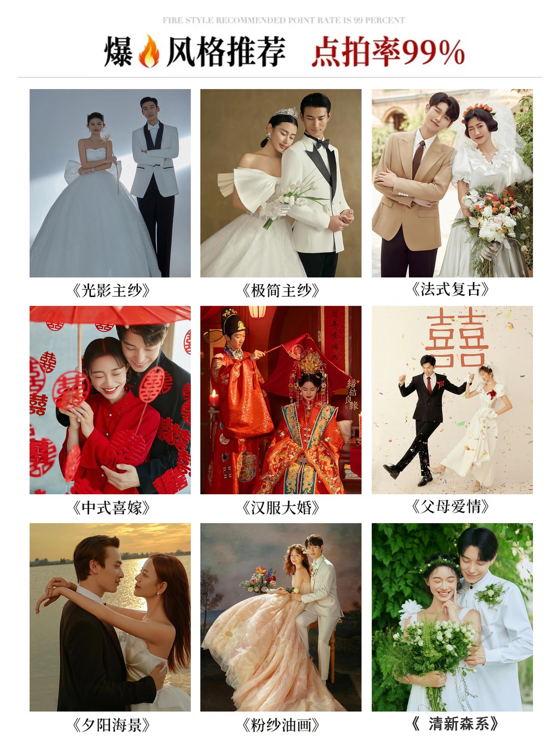 • #淮安备婚 请大数据推给想拍婚纱照的女生 不知道怎么选风格的 直接🐎这篇推荐就ok啦 - ◎氛围感 ◎故事感 ◎精致感 一键解锁惊艳朋友圈的婚纱照✔️ - ▷法式复古系列 丝绒裙摆缀满鎏金光影 优雅感拉满✨ ▷复古胶片系列 阳光漫过白衬衫衣角 元气又治愈❤️ ▷极简肖像系列 干净背景凸显情绪张力 将温柔定格 ▷国风汉服系列 锦绣纹样藏着东方韵味 一衫一裙皆是风雅 ▷森系氧气系列 林间光斑跳跃在发梢 清新感溢出屏幕🍃 ▷港风复古系列 红唇卷发撞色复古场景 慵懒又迷人💕 ▷轻氧韩系系列 柔焦镜头捕捉细腻情绪 是自然的少女感 ▷油画艺术系列 色彩晕染出浪漫氛围 仿佛走进古典画作🥀 - 婚纱照工作室|婚纱照风格|电影感婚纱照