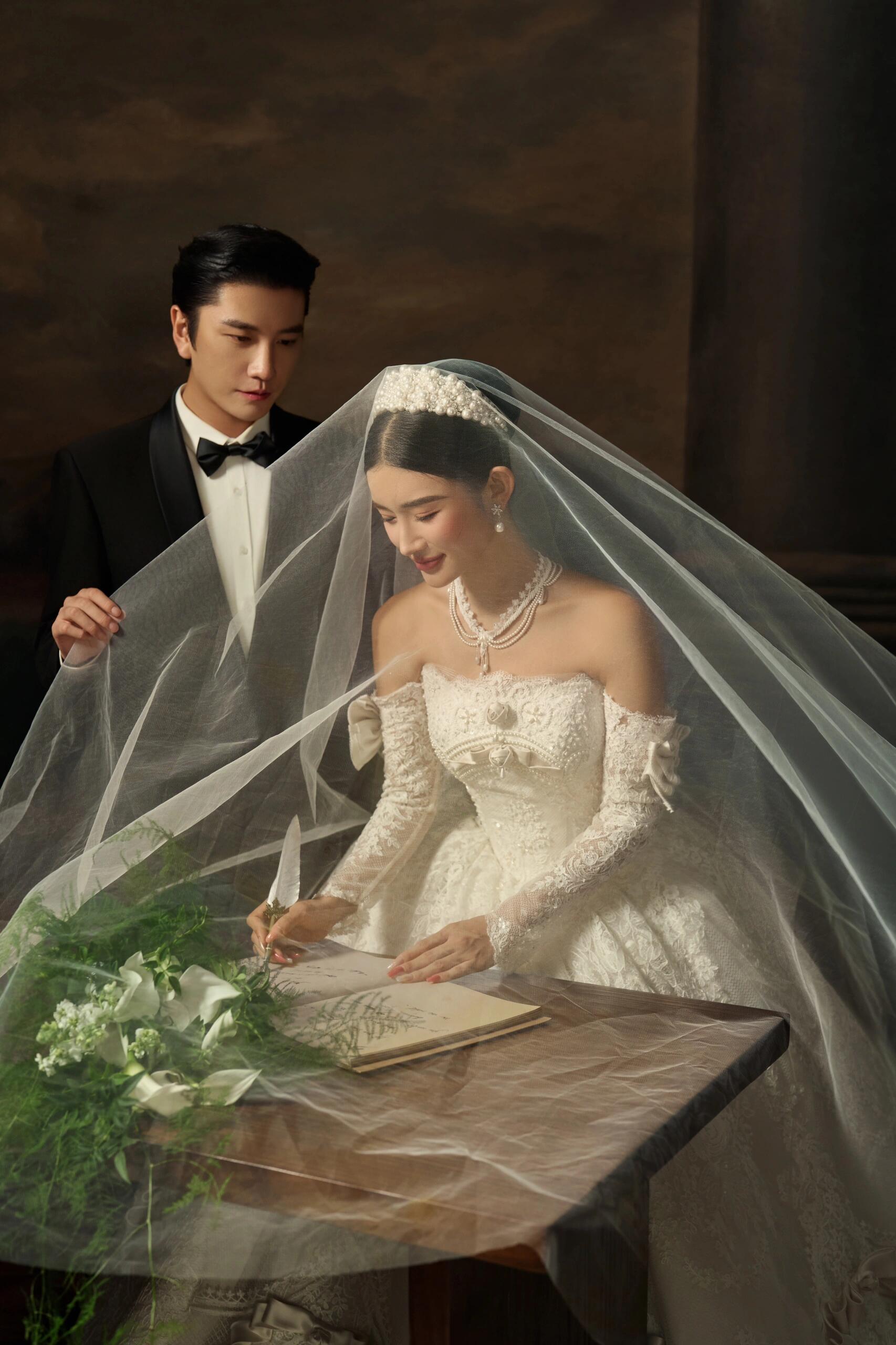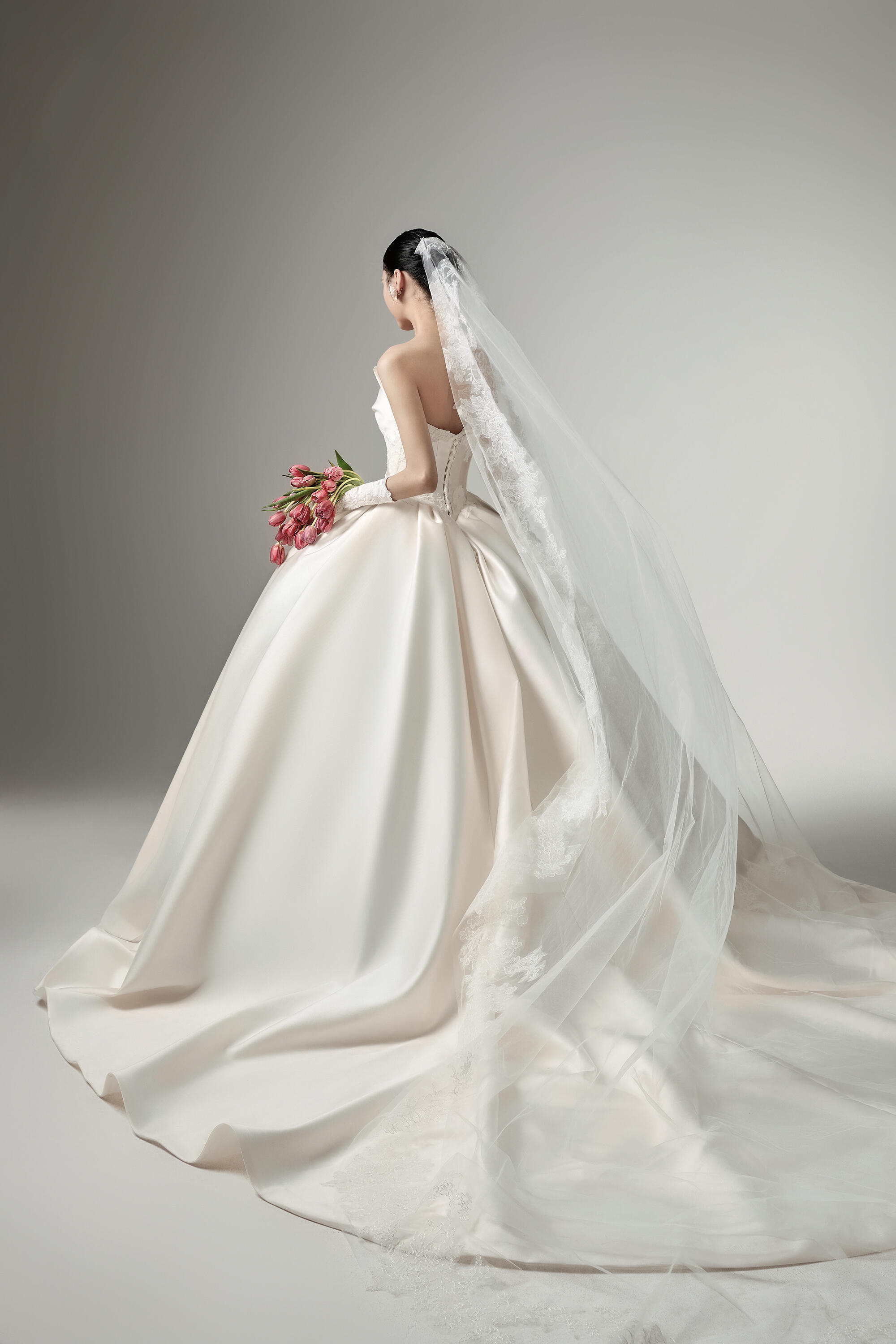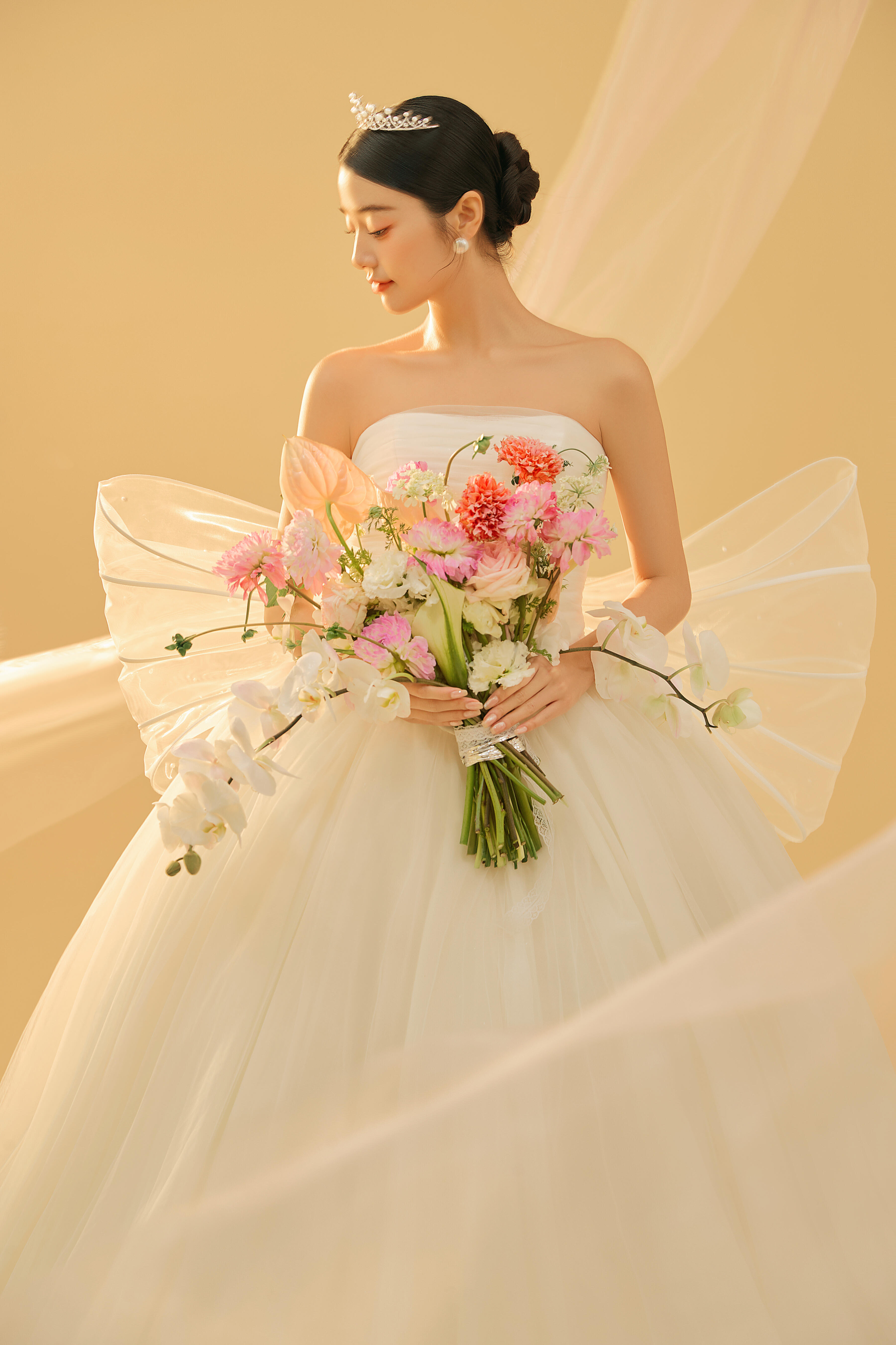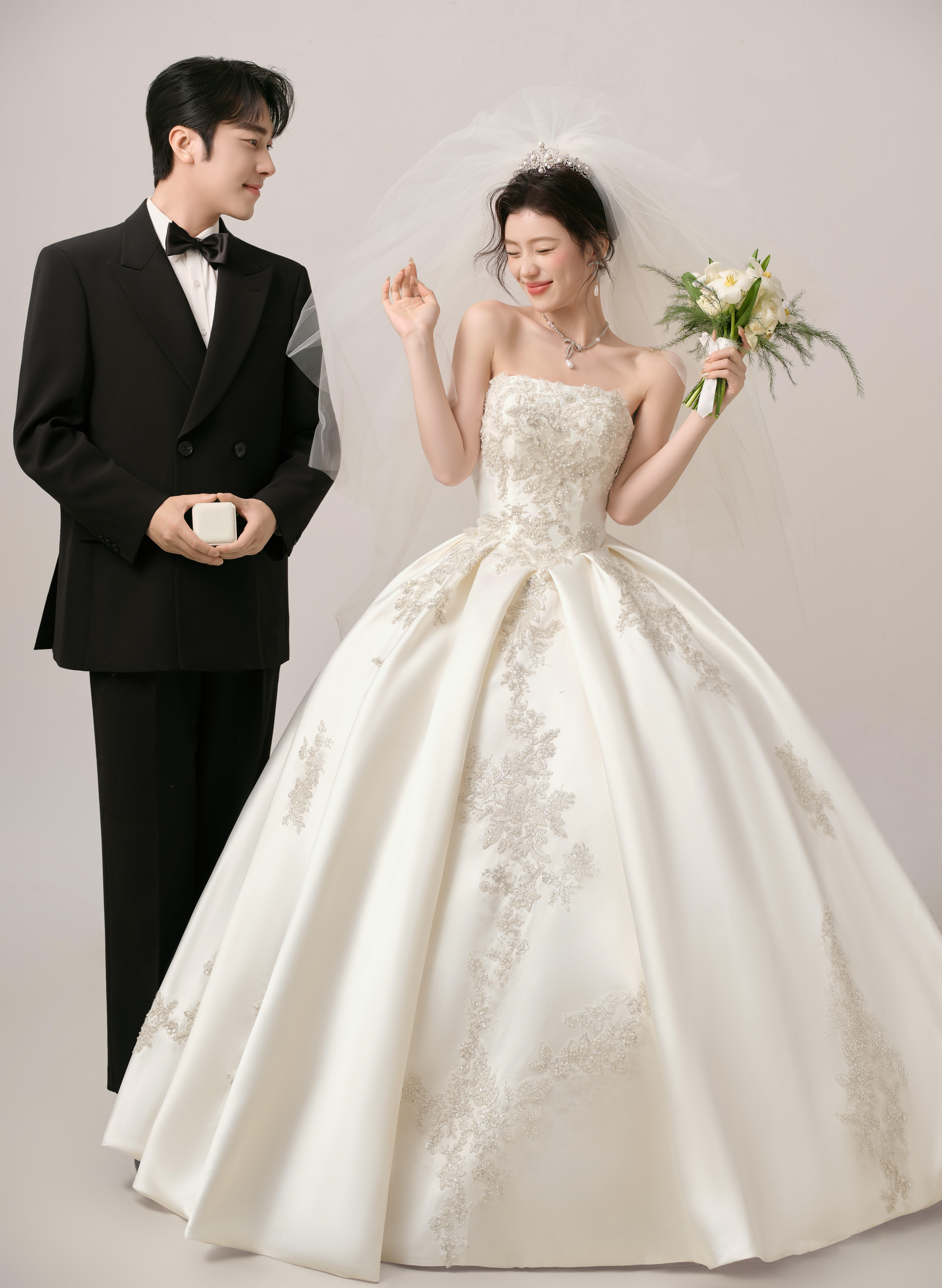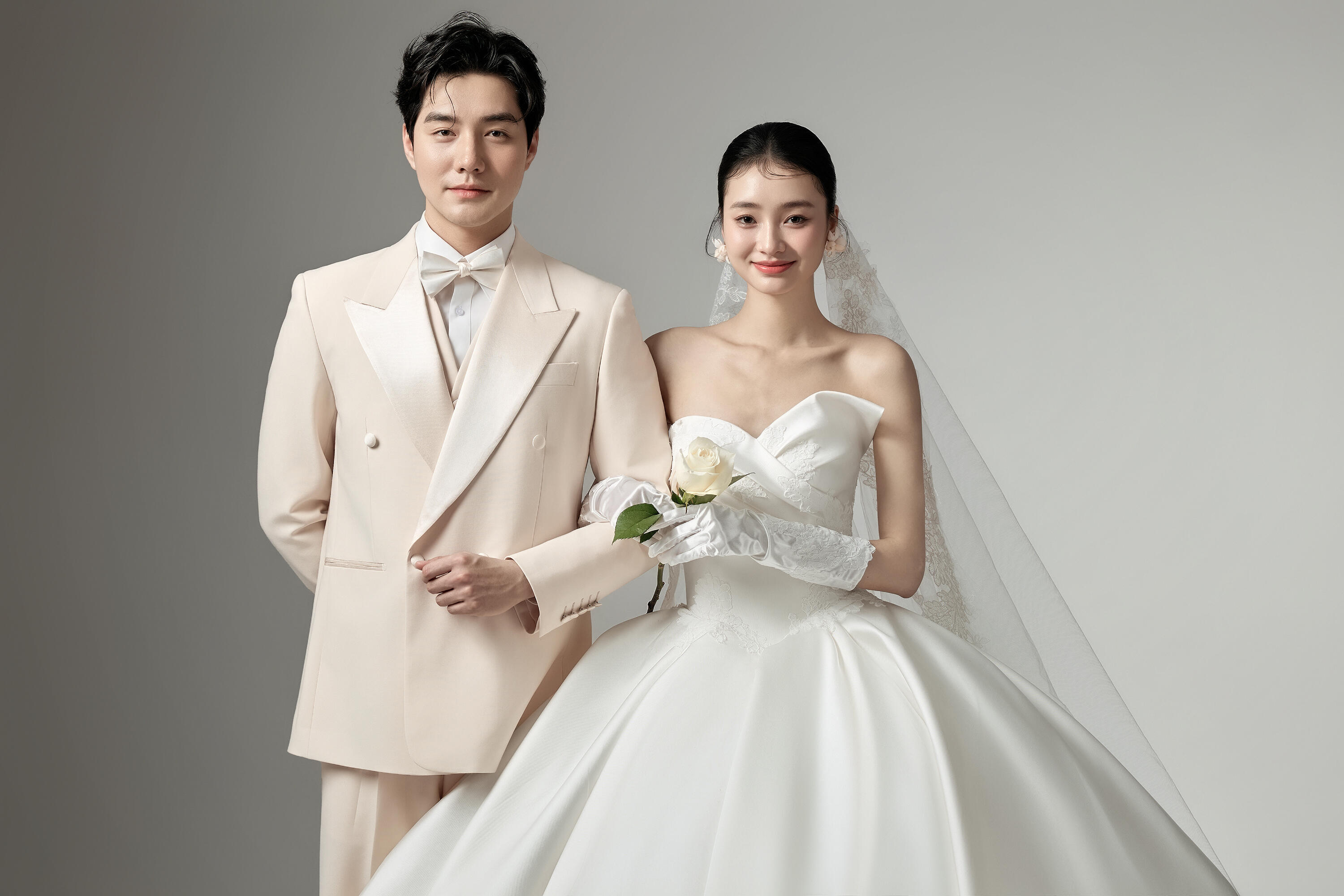• #浪漫光影婚纱照室内 | 主纱 | 极简 - 经典的纯白缎面主纱 简约大气,质感满满 流畅的剪裁勾勒出优雅身姿 没有过多繁杂装饰却尽显高贵 - 干净的纯色背景 让焦点全部集中在新人身上 简单的场景✨ 却能拍出历久弥新的高级感