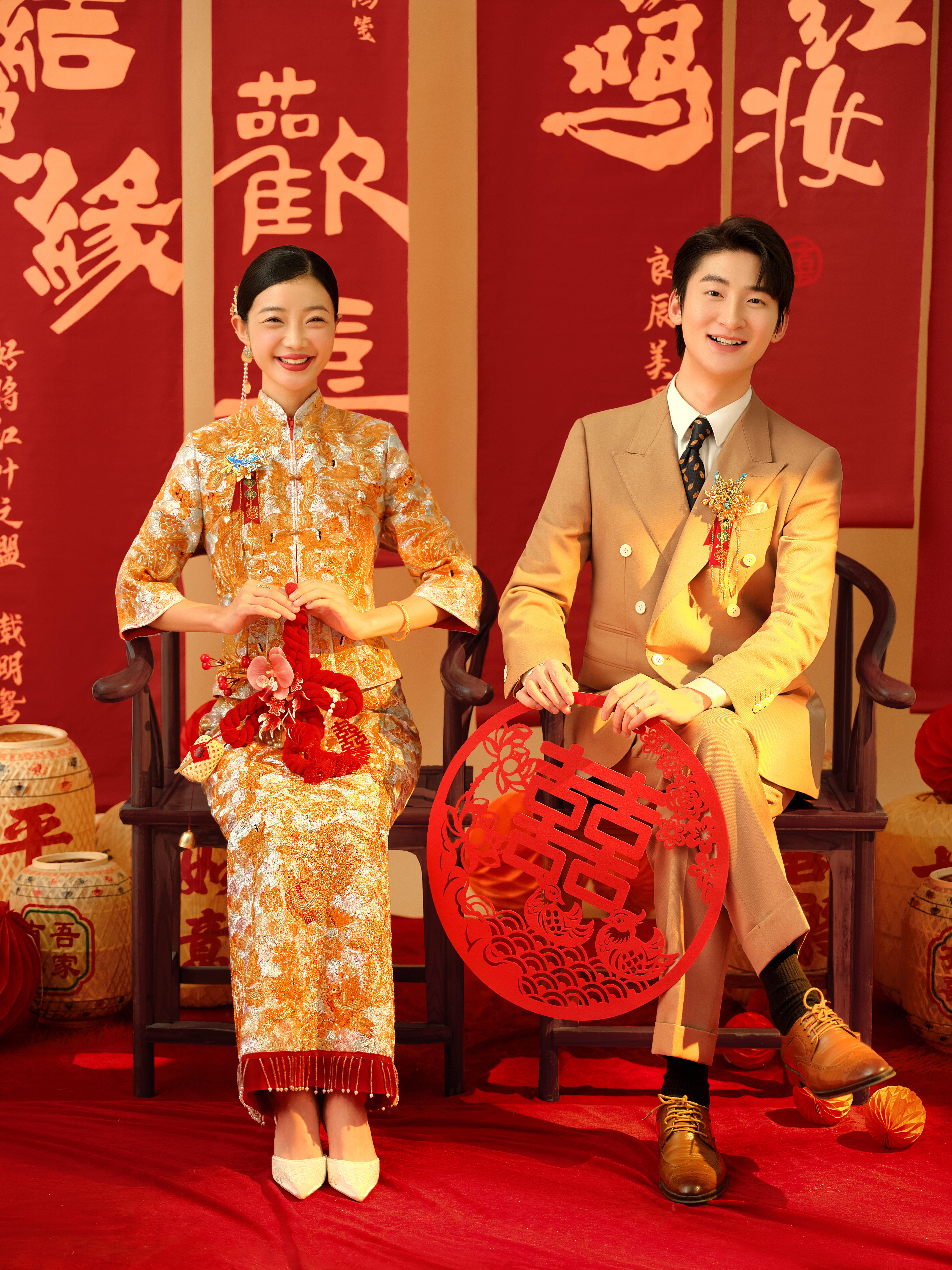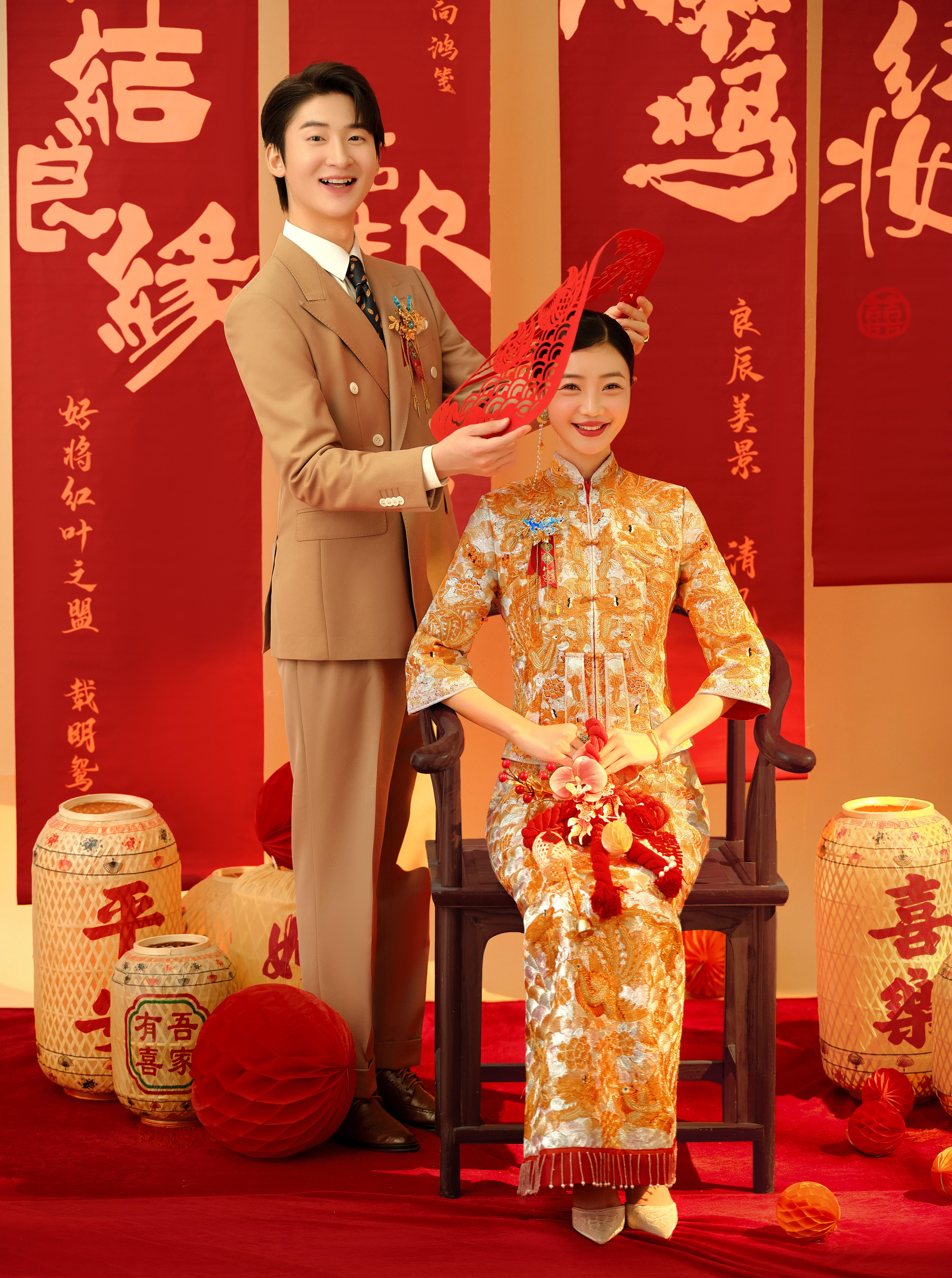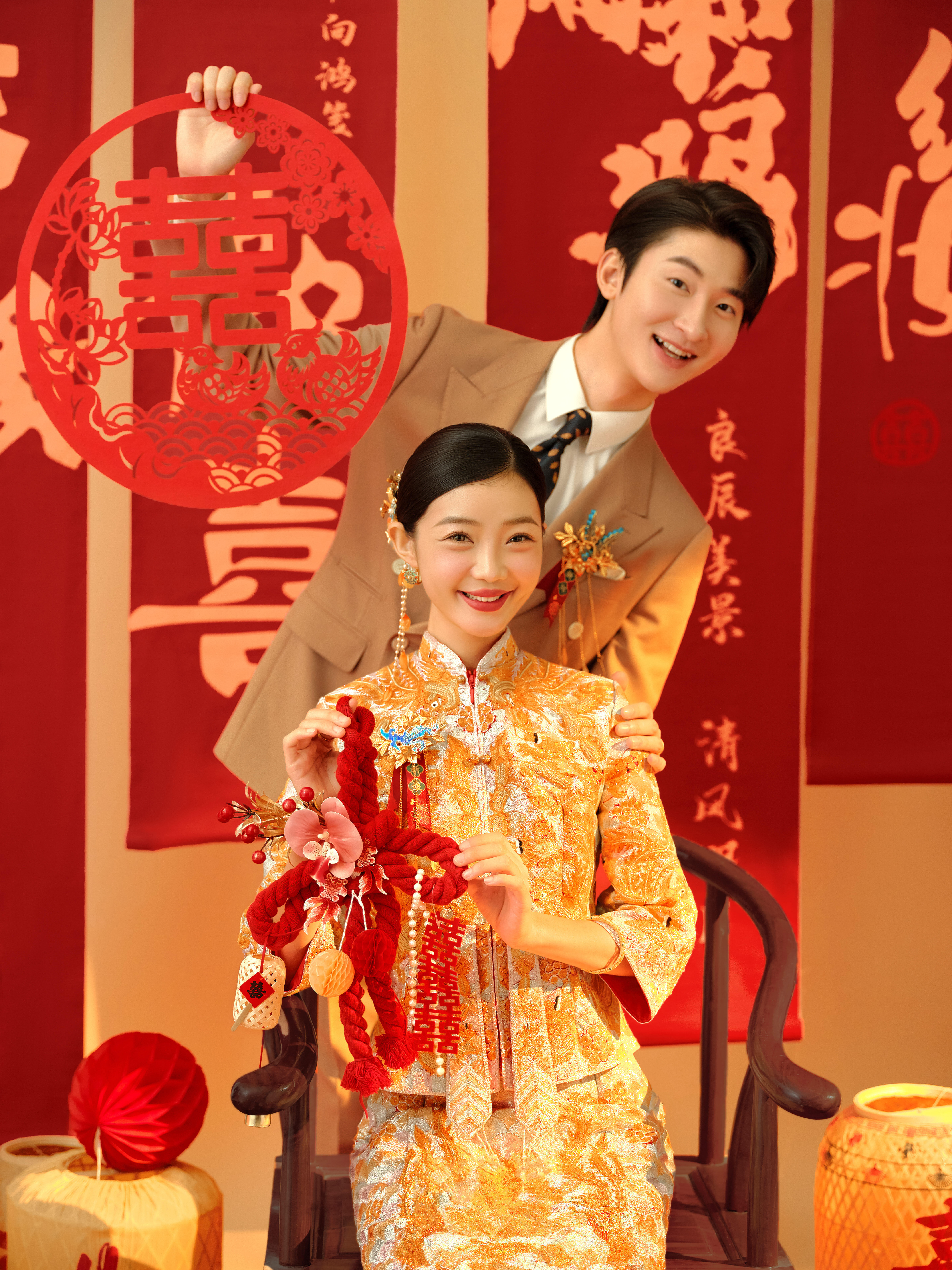 • #浪漫光影婚纱照中式 | 喜嫁 | 室内 - 红纸为笺,刻尽东方浪漫 我们的故事 是刀痕里蜿蜒的连理枝 是镂空处透出的月光 更是囍字中央你我交叠的心❤️ -
