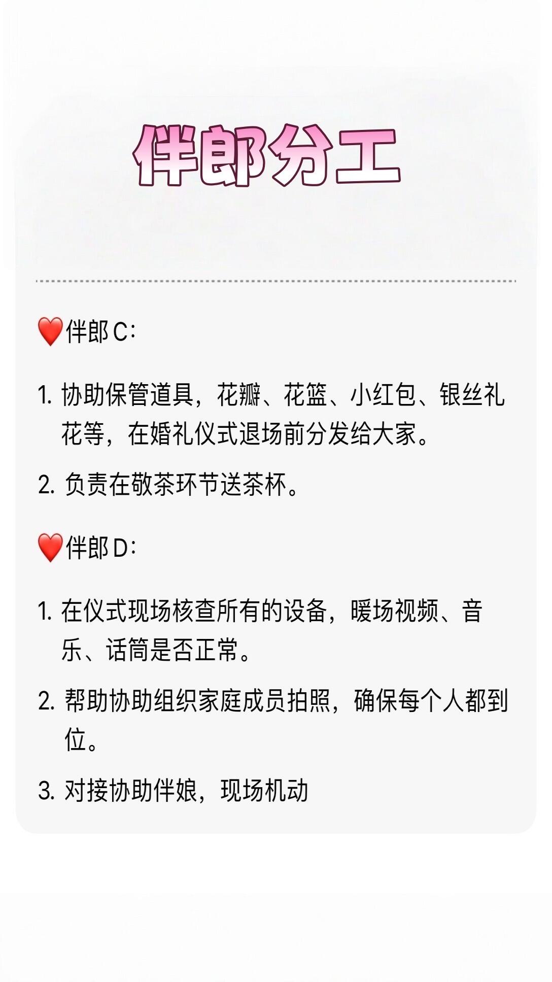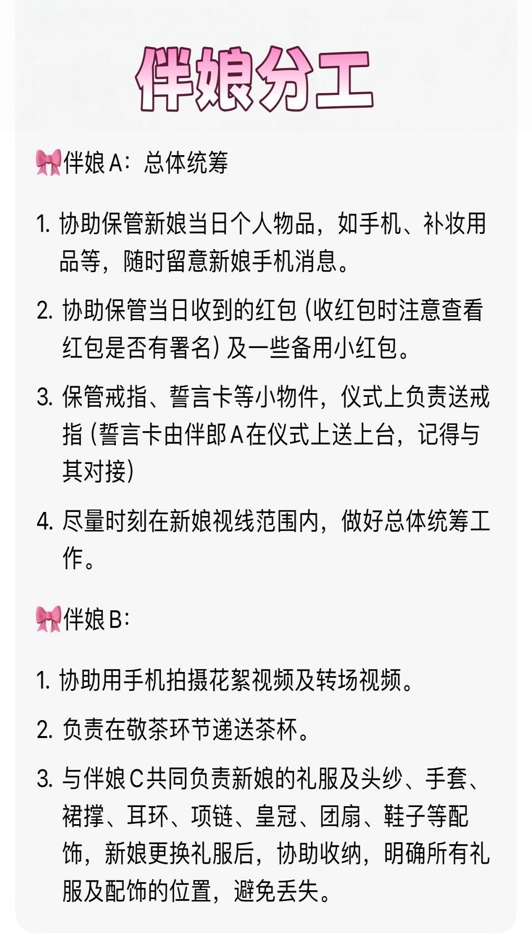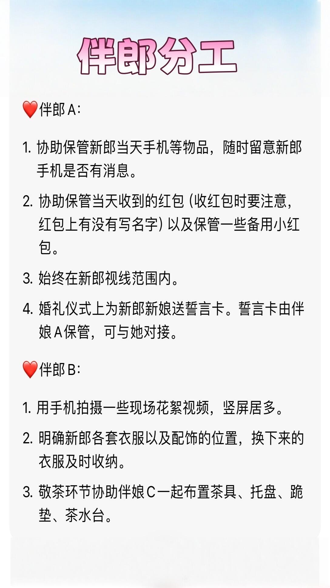 • #淮安备婚攻略 提前梳理好伴郎伴娘的分工明细,把任务落实到个人,婚礼当天有条不紊,新郎新娘只需负责美美登场,其他的都安心交给队友们~ 祝大家都能圆满完婚呀~ 有没有2026年1月1号结婚的姐妹呀