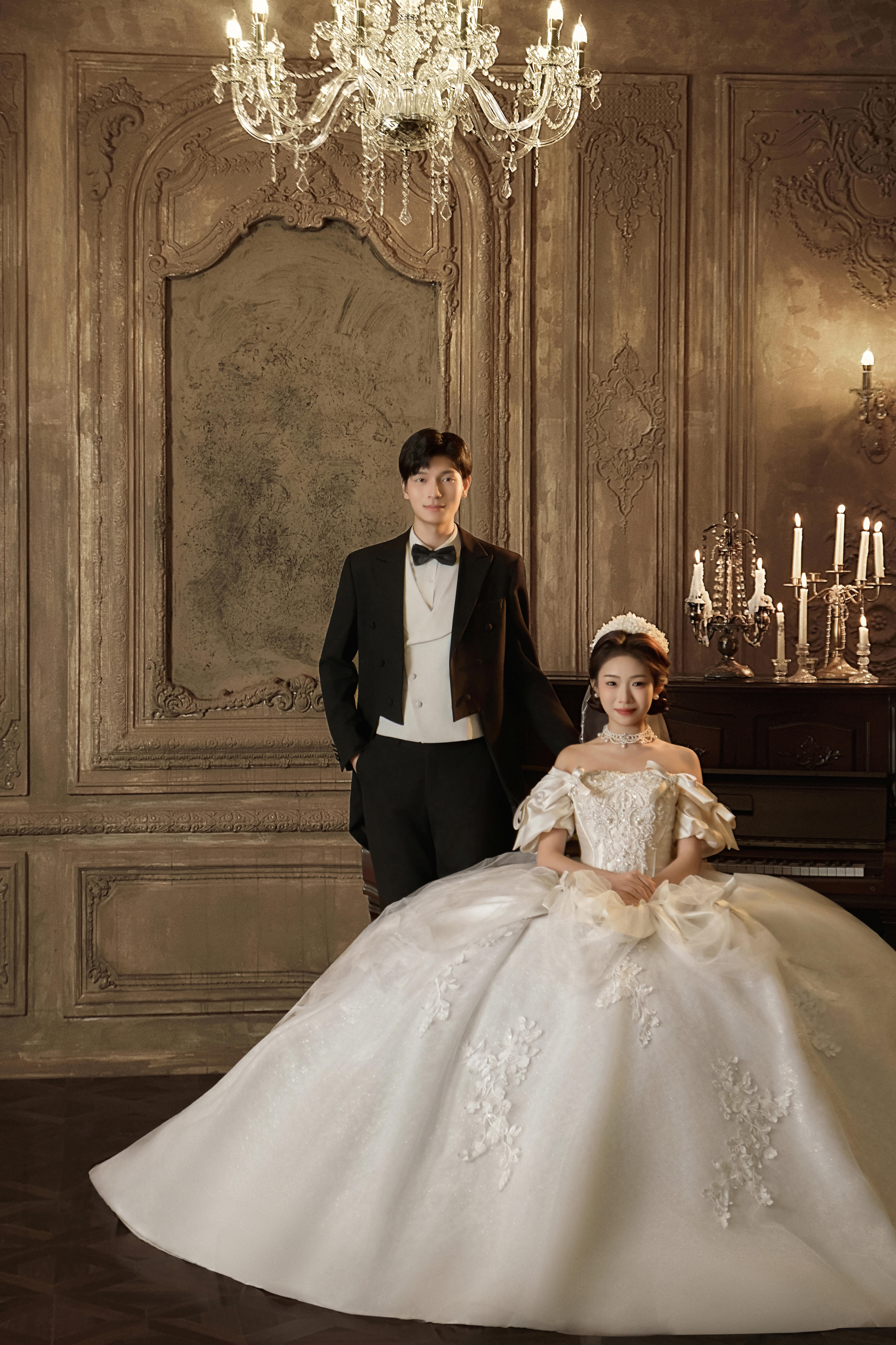 • #浪漫光影婚纱照欧式 | 室内 | 复古 - “你是我藏在复古调里的,终 极浪漫。” - 似给这场婚礼披上一层金纱 在这充满历史韵味的空间里 无需过多言语,爱意便满溢而出♥️