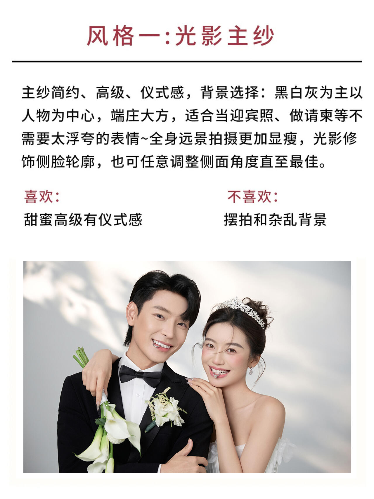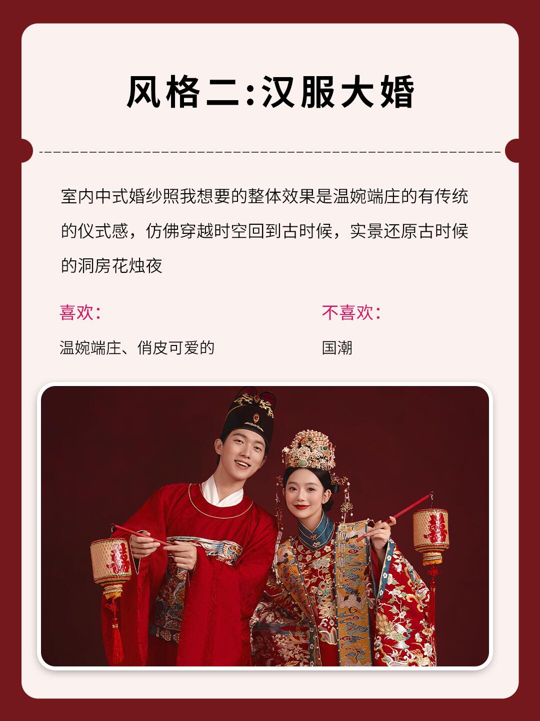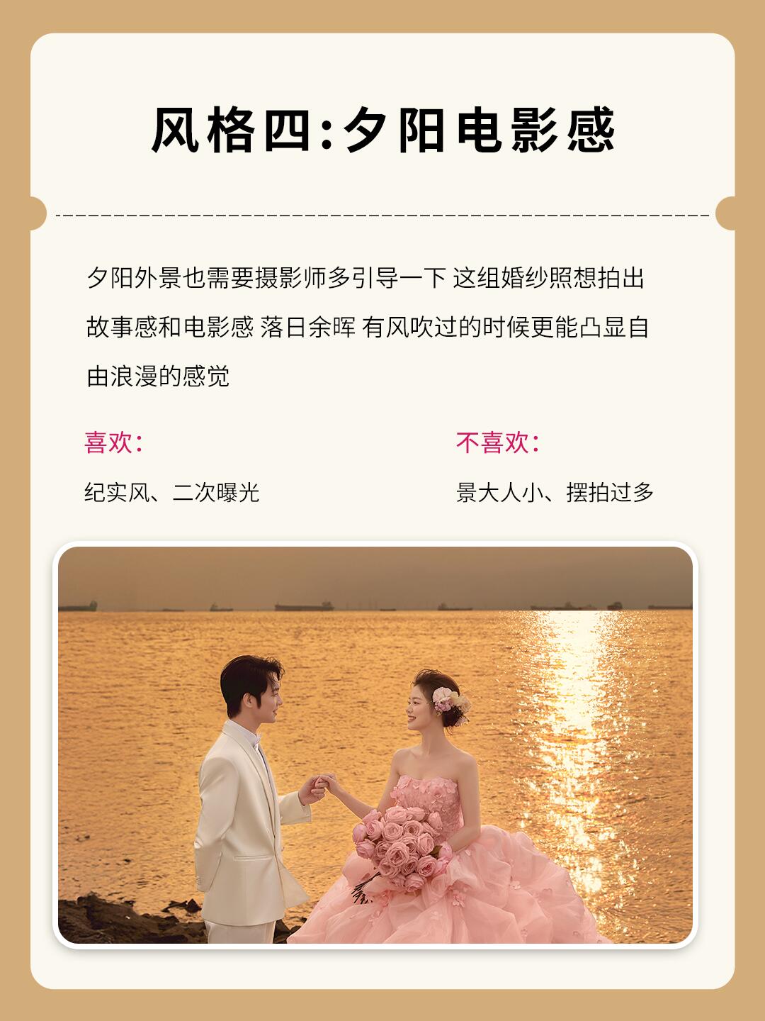 • #淮安备婚攻略 还在为选婚纱照风格发愁吗? - 给大家整理了超热门的婚纱照风格 有浪漫夜景🌃在星光下记录甜蜜 有温馨的烛光场景🍸氛围感拉满 还有森系🌿新中式等多种风格 - 每一种都超有特色✨ 能满足不同的喜好和想象~ 快来pick属于你的浪漫吧💕