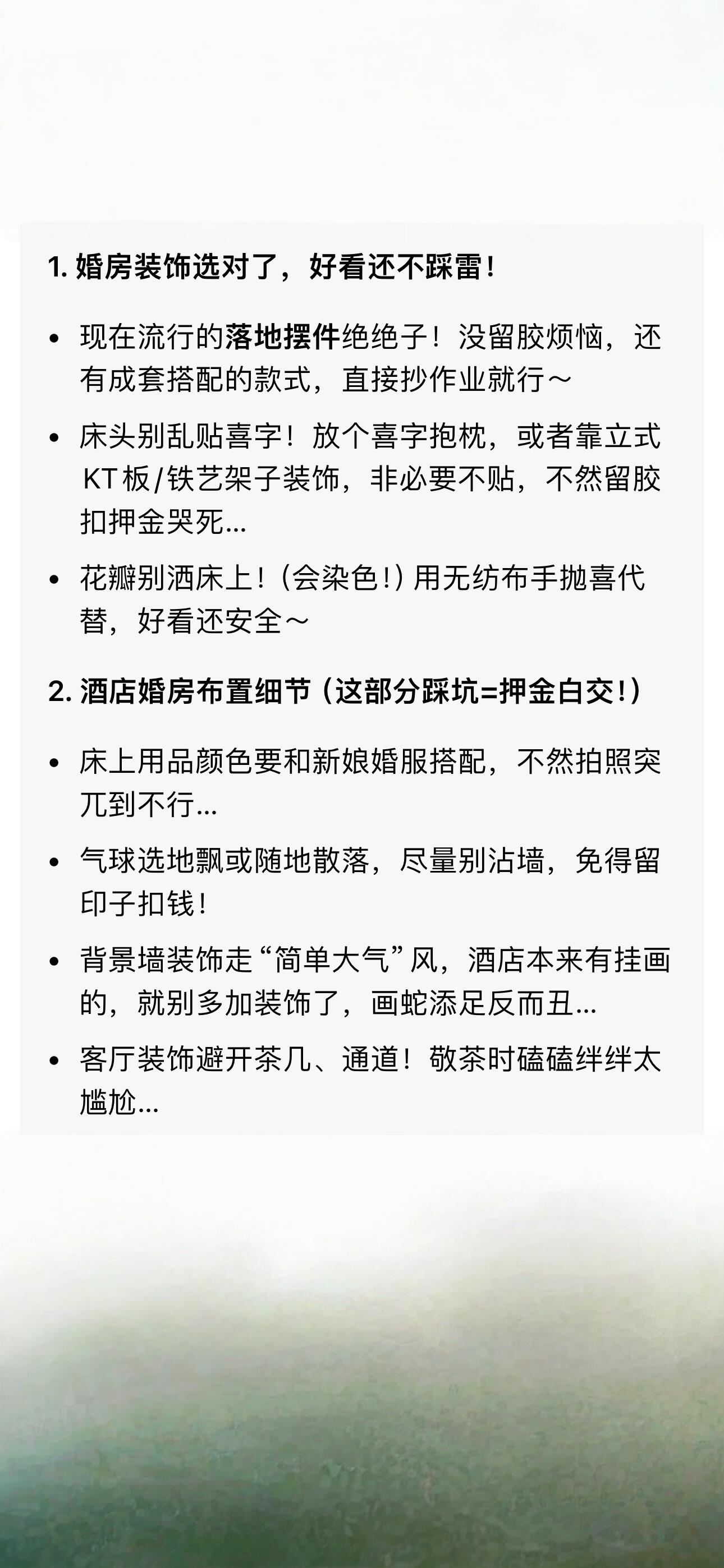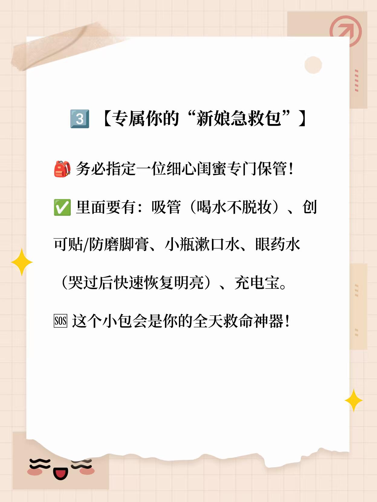 • #淮安备婚攻略 姐妹们!婚礼当天真的会又忙又懵,一不小心就留下遗憾! 作为刚毕业的过来人,总结了5个核心要点 牢牢记住它们,你就能安心做最美新娘!✨