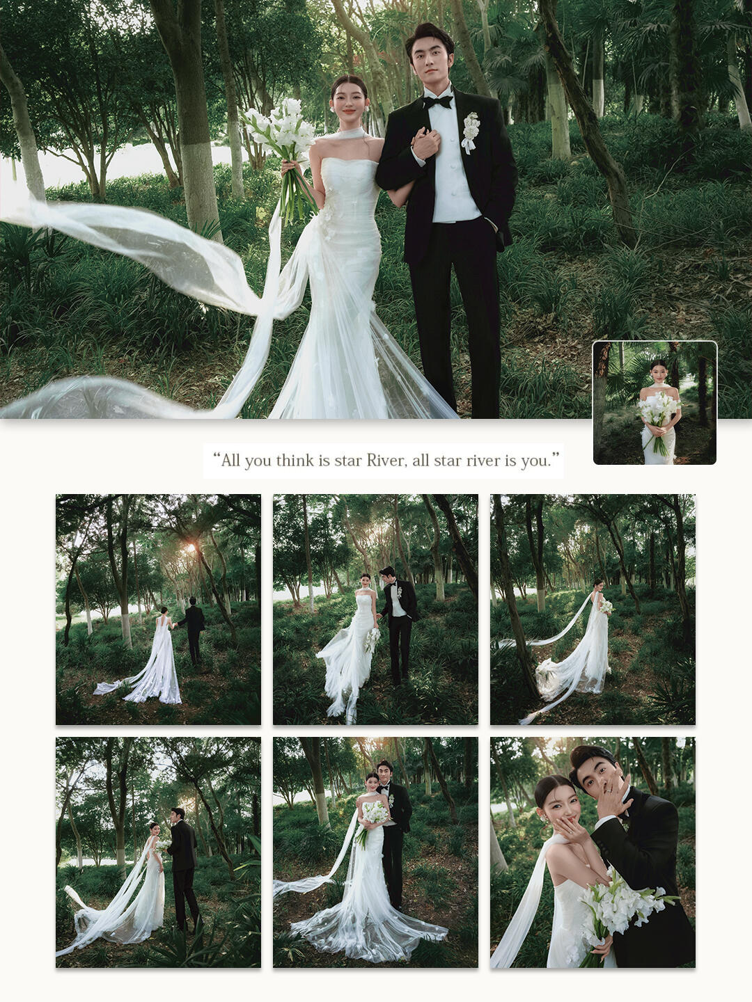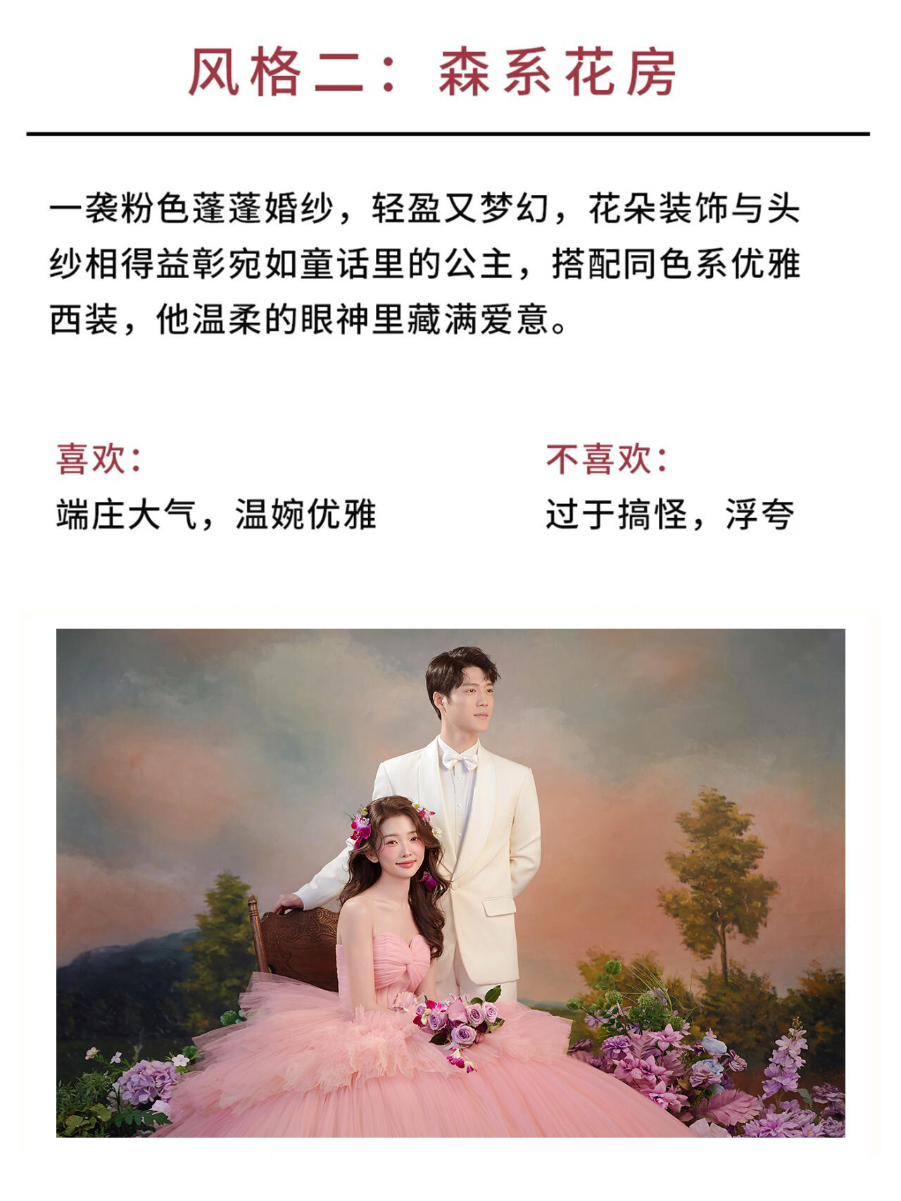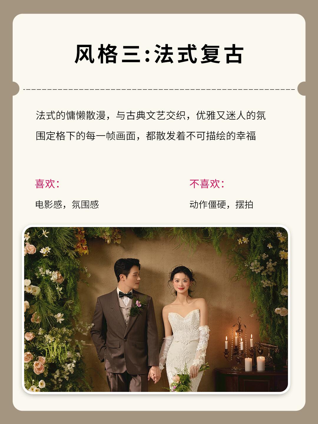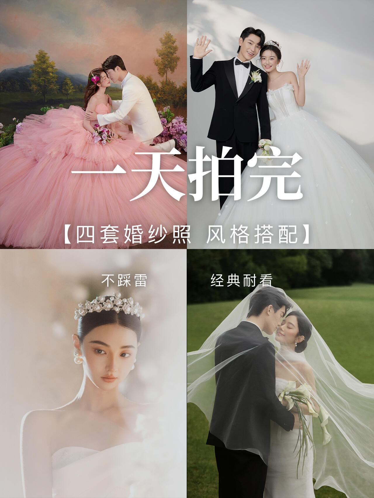 • #淮安备婚攻略 还在为婚纱照拍几套、选什么风格纠结? 其实4套就够啦! 这套万能搭配公式,备婚宝子直接抄作业~ - 1. 光影主纱款:婚纱照的“定海神针”,仪式感拉满,长辈超爱 2. 森系花房款:被鲜花包围的浪漫,温柔又清新,氛围感绝了 3.复古法式款:自带电影滤镜,优雅又显贵,小众不撞款 4. 森系草坪款:自由松弛的户外感,奔跑、大笑都很出片 - 不用费脑凑风格,这四套拍完直接封神,赶紧存好备婚用!