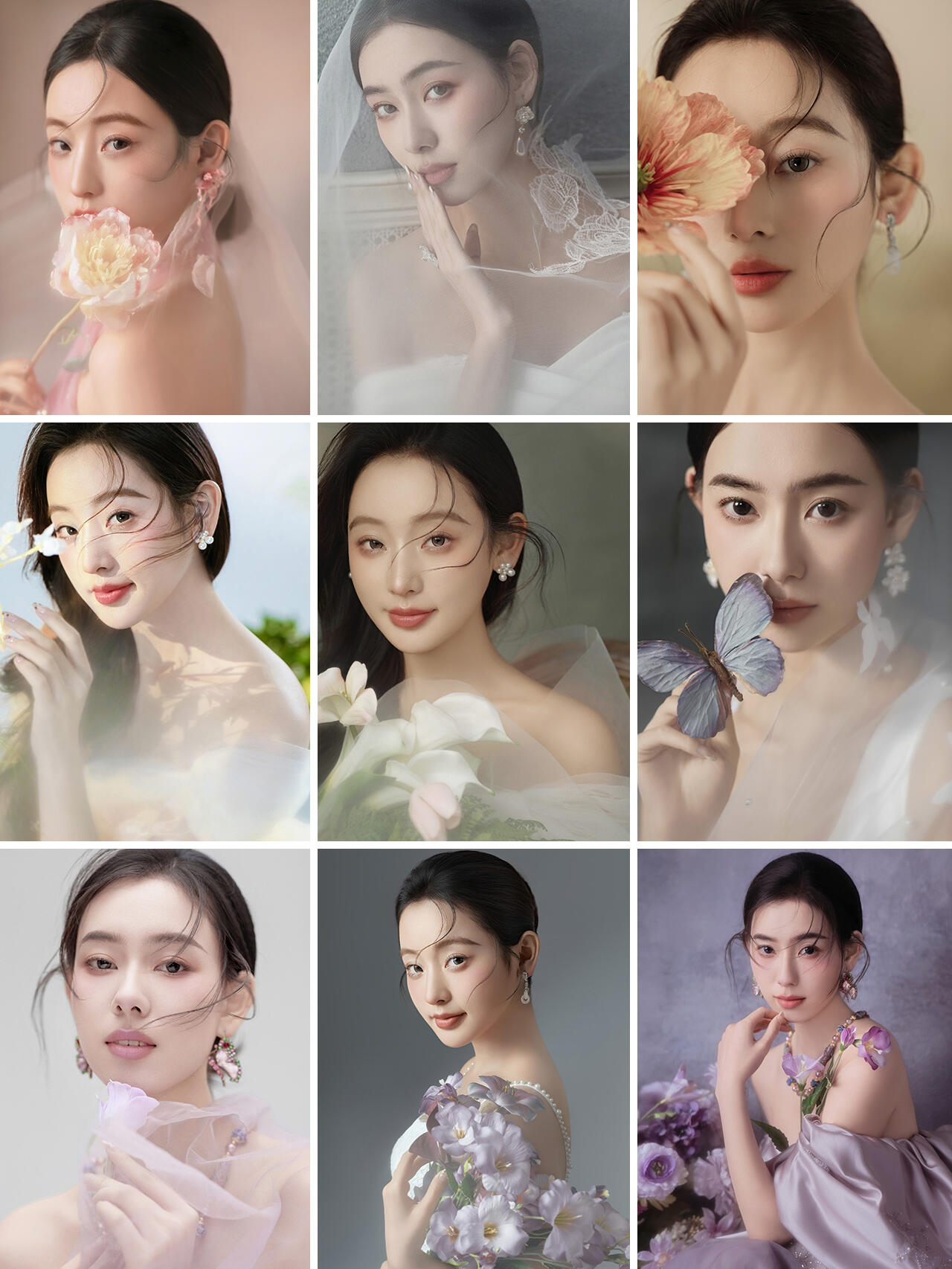 • #淮安备婚攻略 🎬风格:主纱、室内、油画、极简、法式 今天分享九组不同主纱婚纱照👰‍♀️ 用不同鲜花做搭配🌸会有不一样的气质体现 人物肖像特写拍摄,高级感直接拉满✨