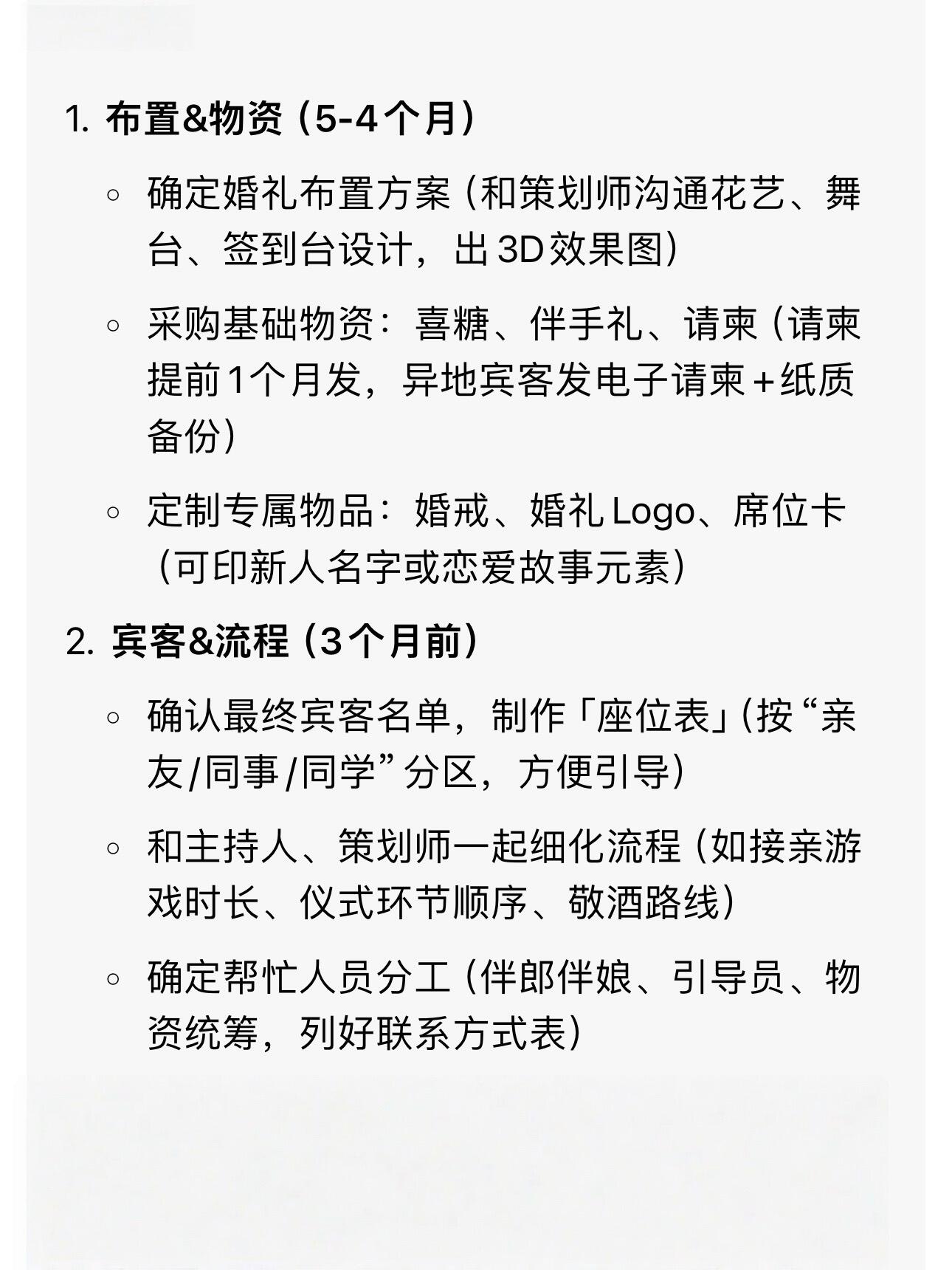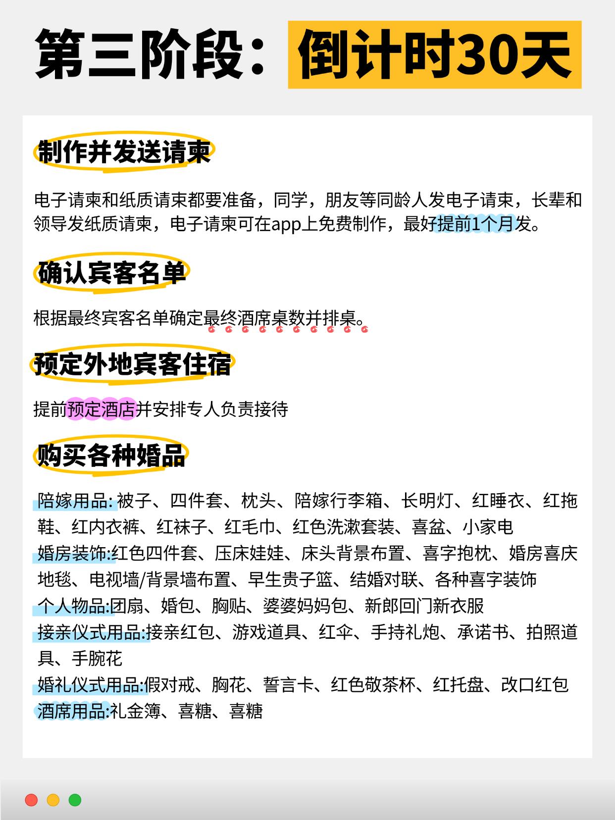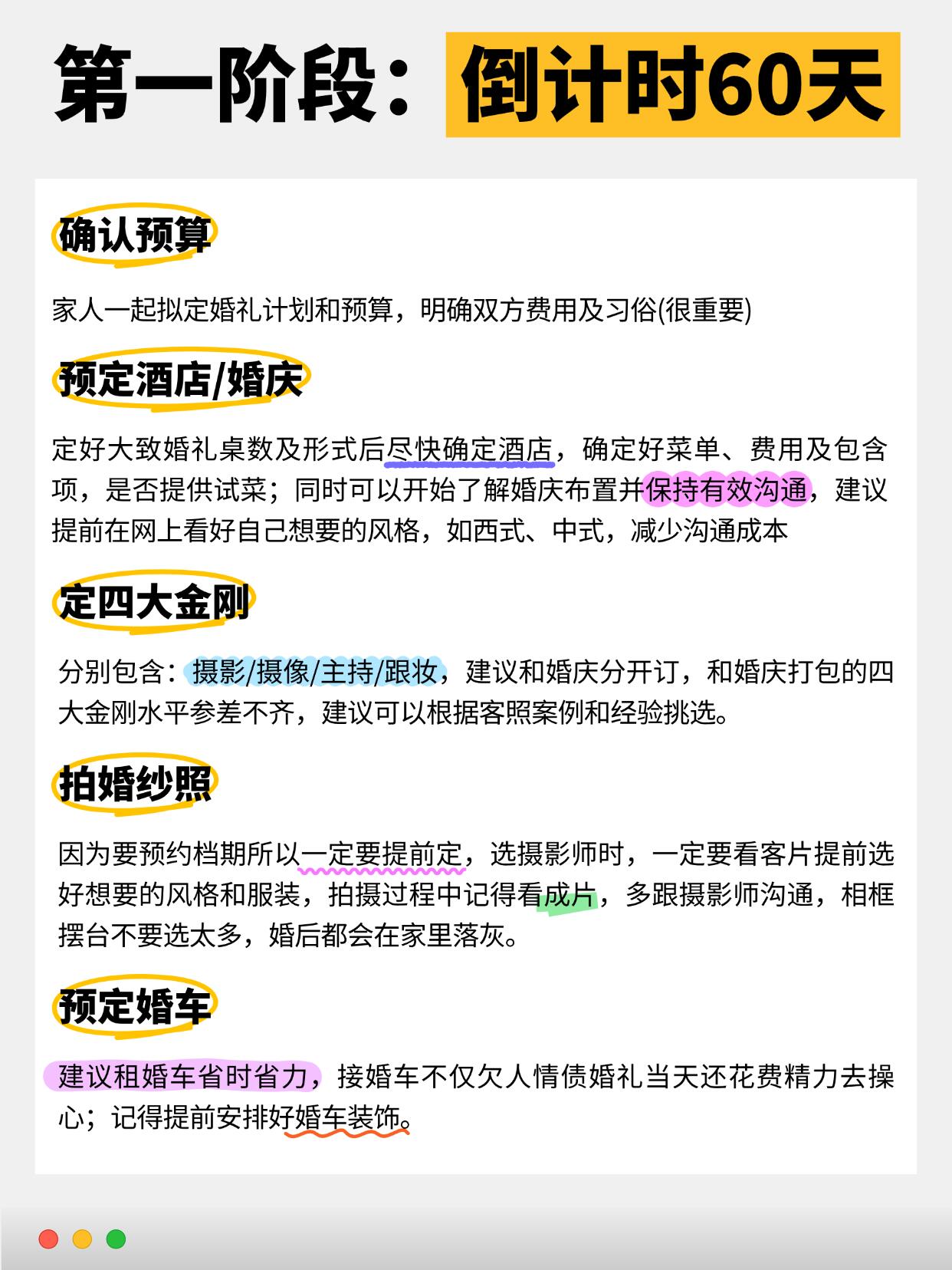 • #淮安备婚攻略 附避坑细节 谁懂啊!刚开始备婚时我像个无头苍蝇,今天忘订化妆师、明天漏算场地费,直到整理了这份「分阶段时间表」,才把节奏稳下来——从12个月到婚礼当天,每个节点该做啥都标得明明白白,抄作业就行