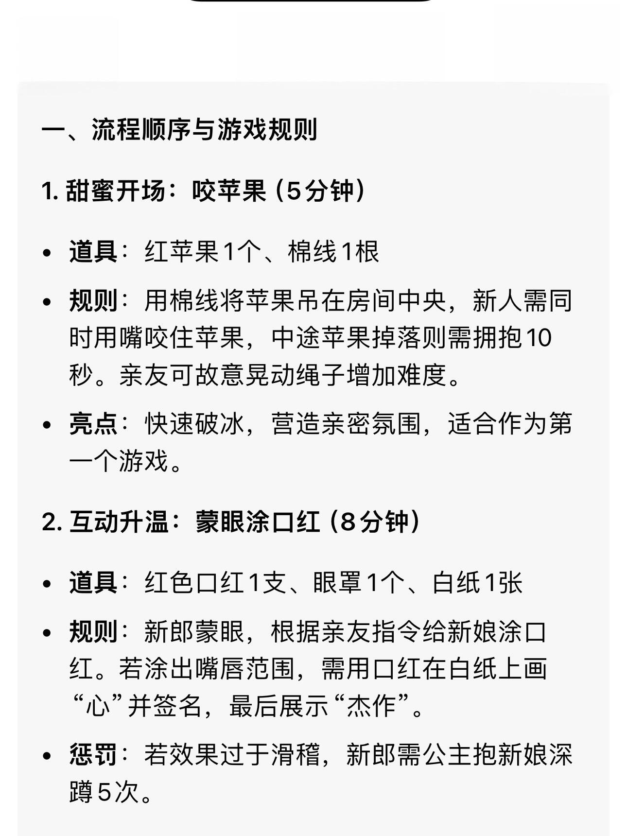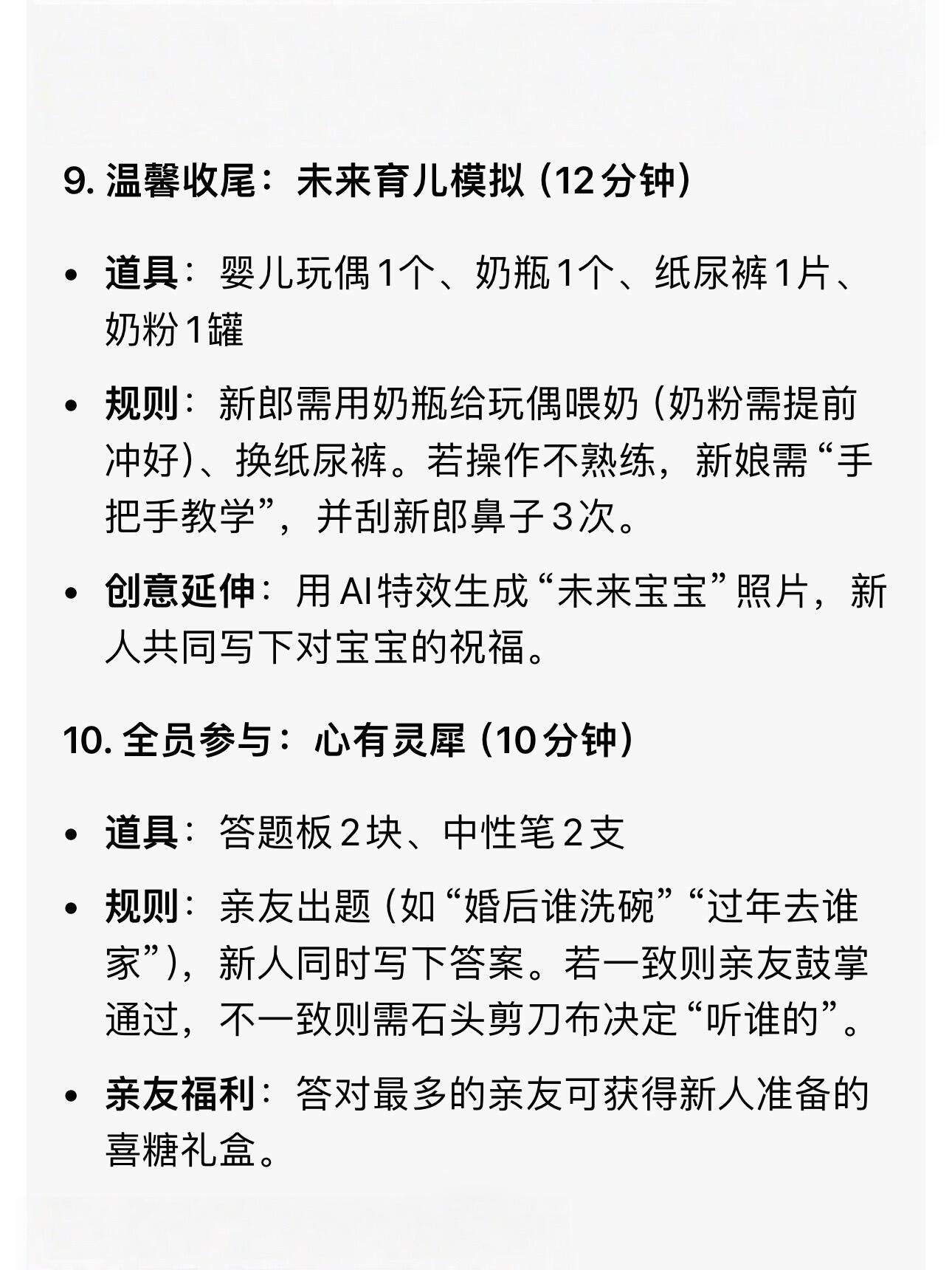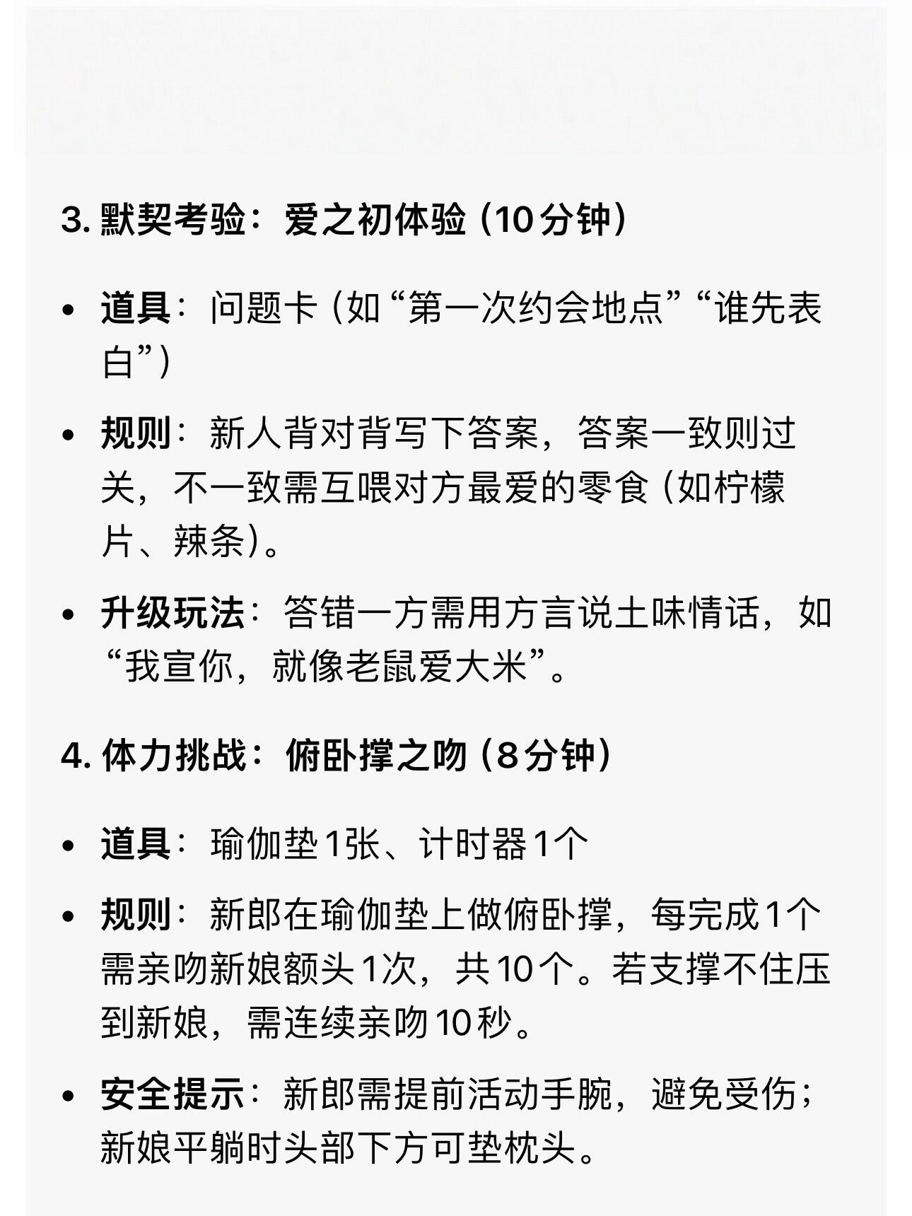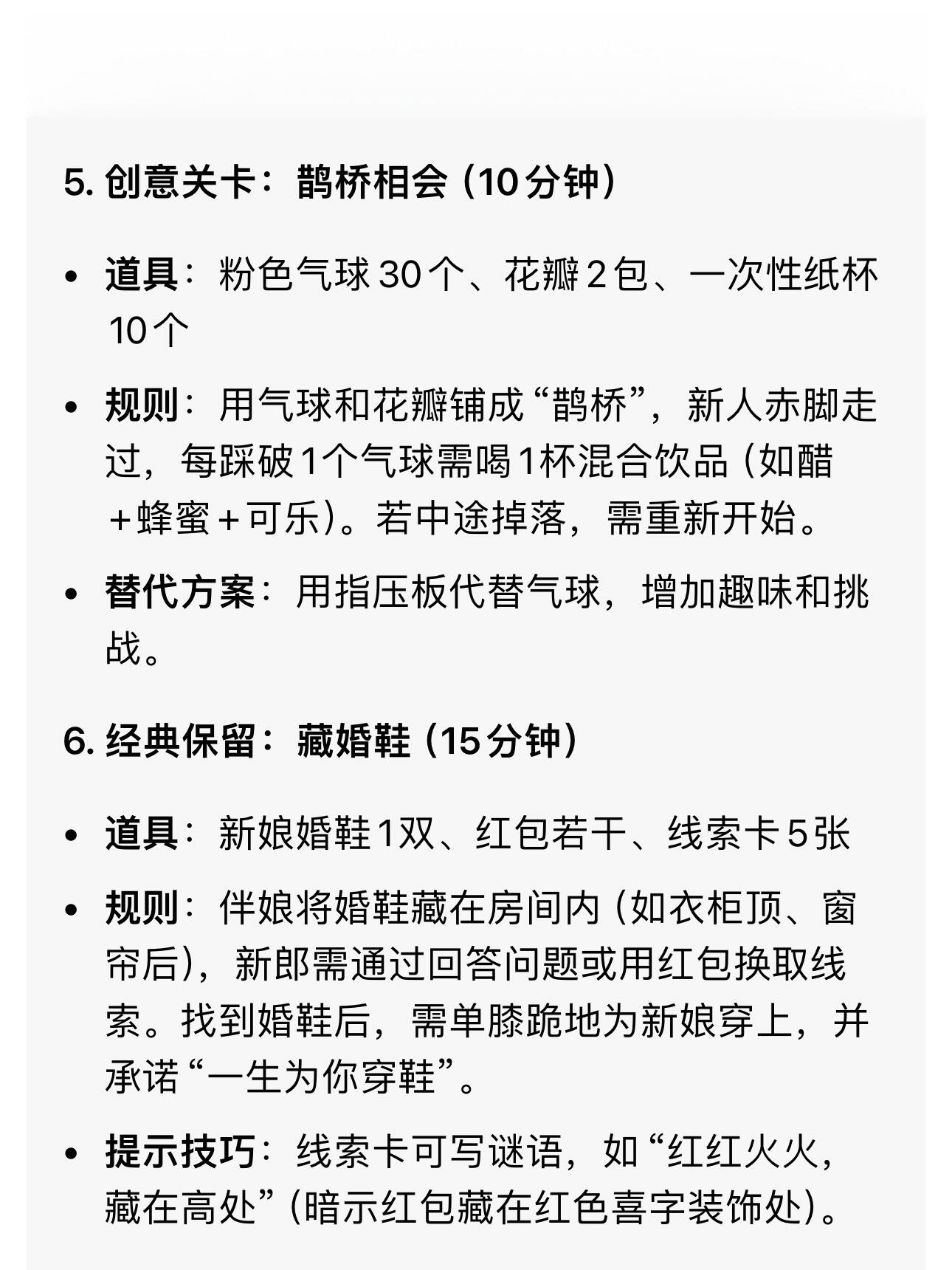 • #淮安备婚攻略 救命!原来闹洞房也能玩出“高情商”~💒 不是被逼着做尴尬动作,而是新人亲友一起笑一起甜:新郎蒙眼涂口红的“抽象派杰作”、藏婚鞋时伴娘团的脑洞线索、育儿模拟时新郎手忙脚乱的样子… 每一幕都是名场面! 现在轮到你们晒了!交出你们见过/玩过的「最 佳洞房游戏」,或者说说你觉得闹洞房的“红线”是什么?快来唠!💬