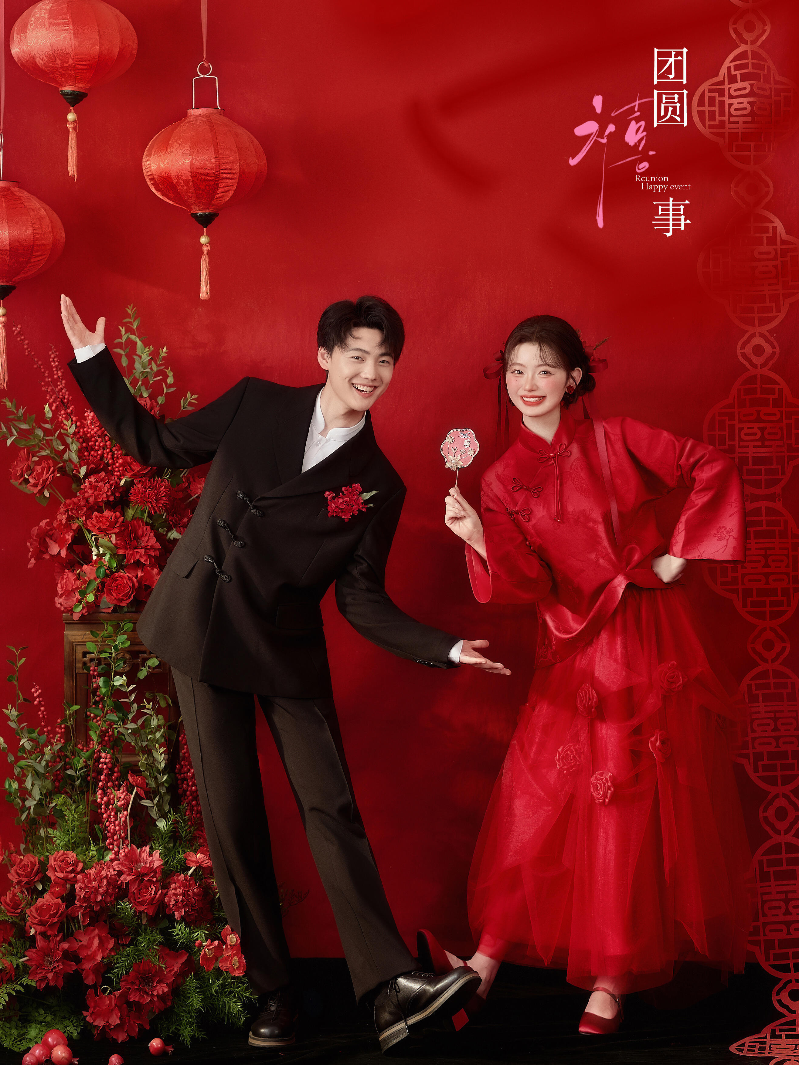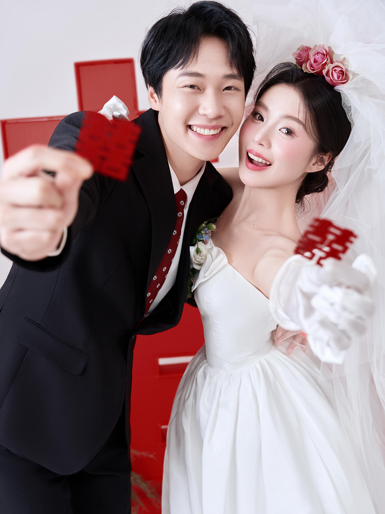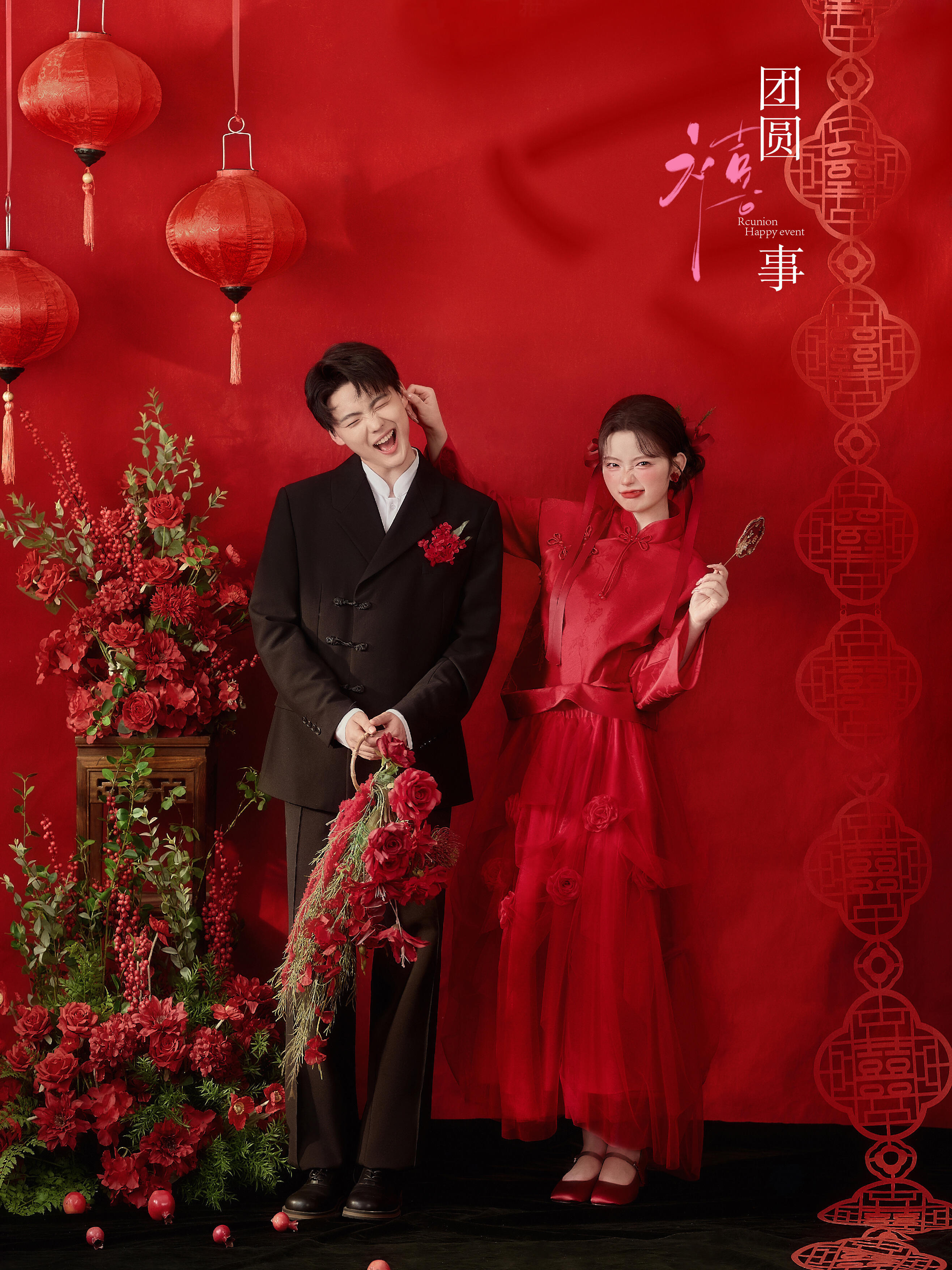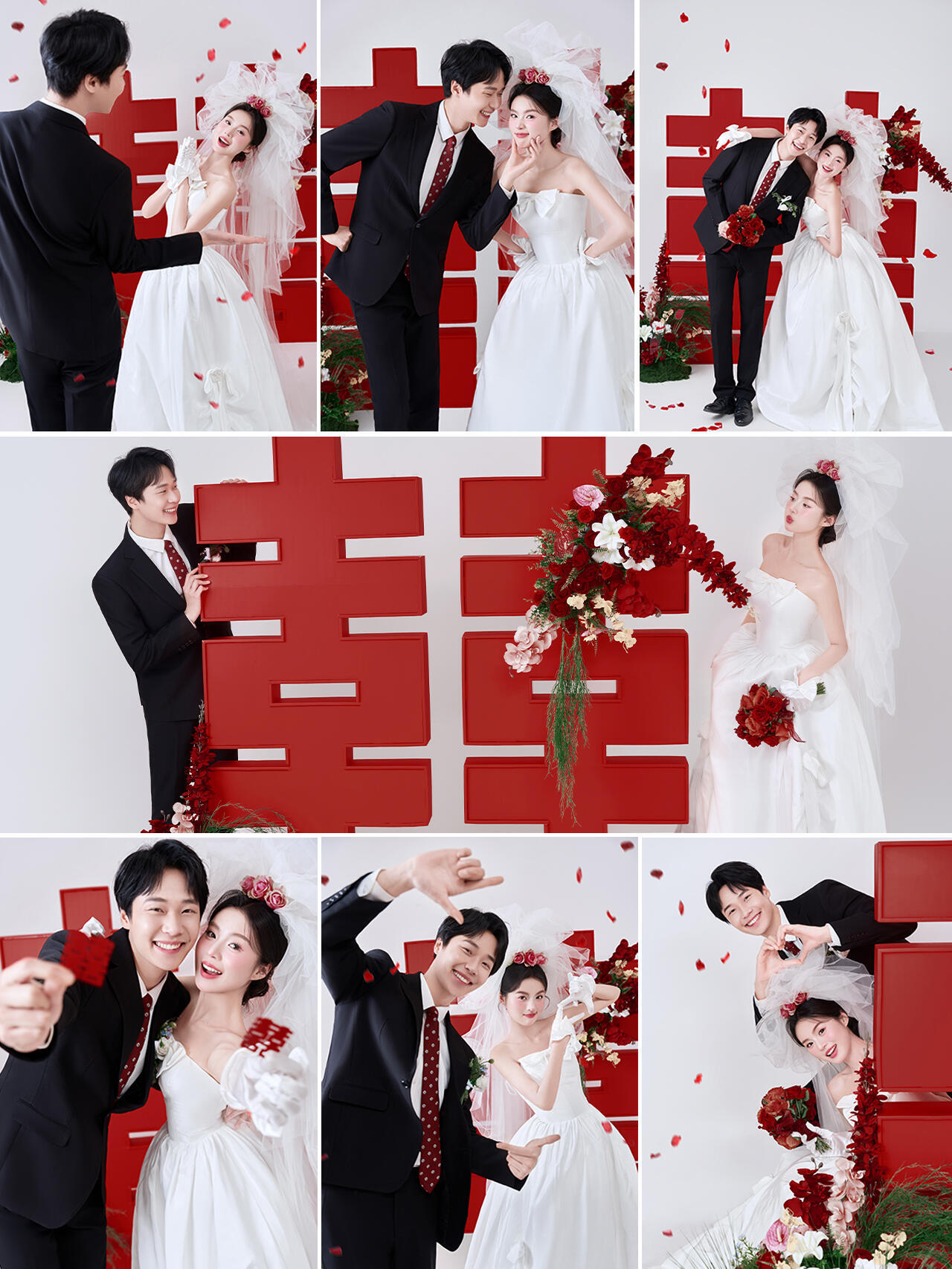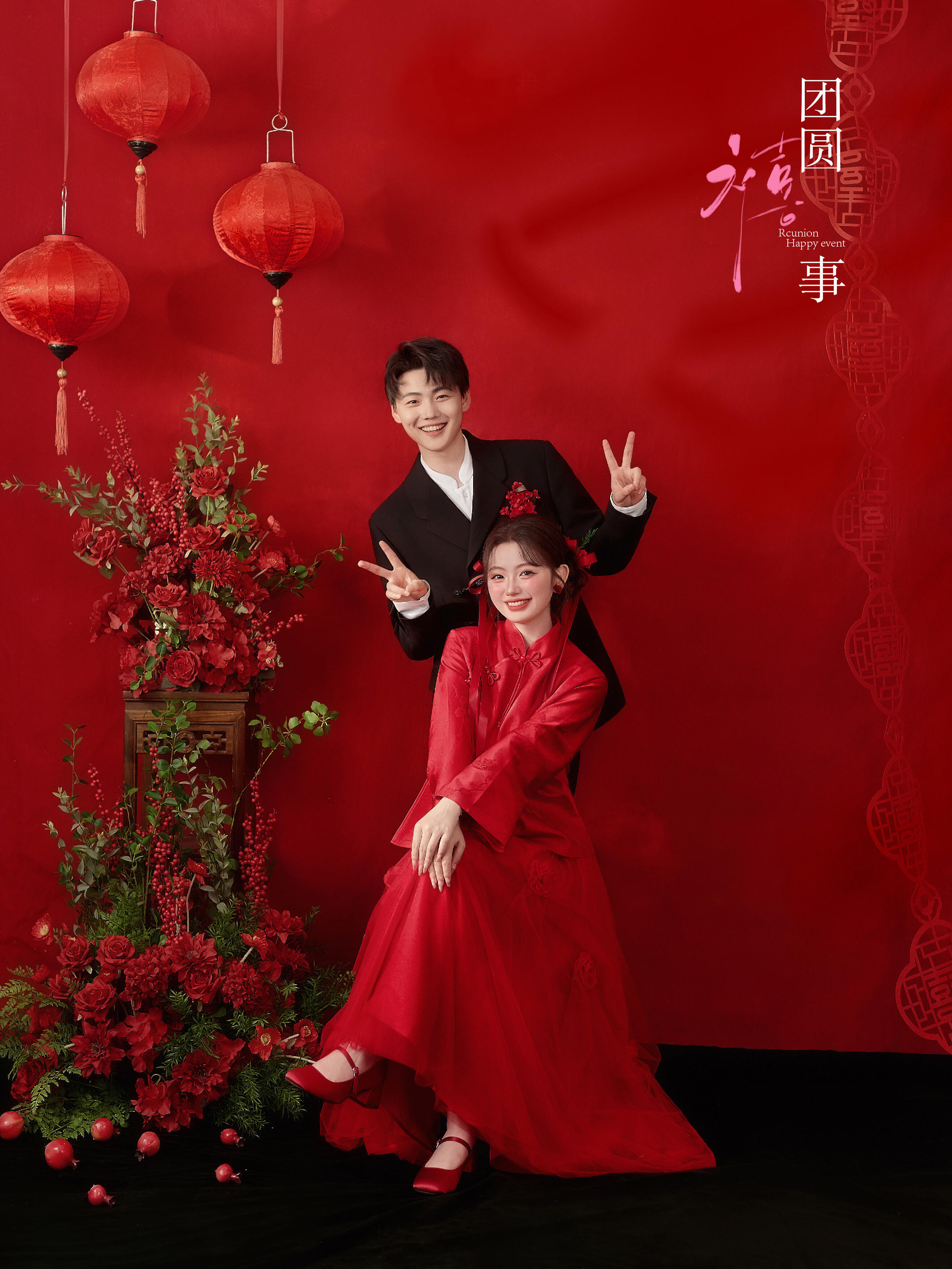 • 谁懂啊!大红色囍字背景一摆 氛围感拉满✨ 白纱的纯粹和囍字的热烈碰撞 既有年轻人喜欢的浪漫 又戳中长辈的心#浪漫光影婚纱照