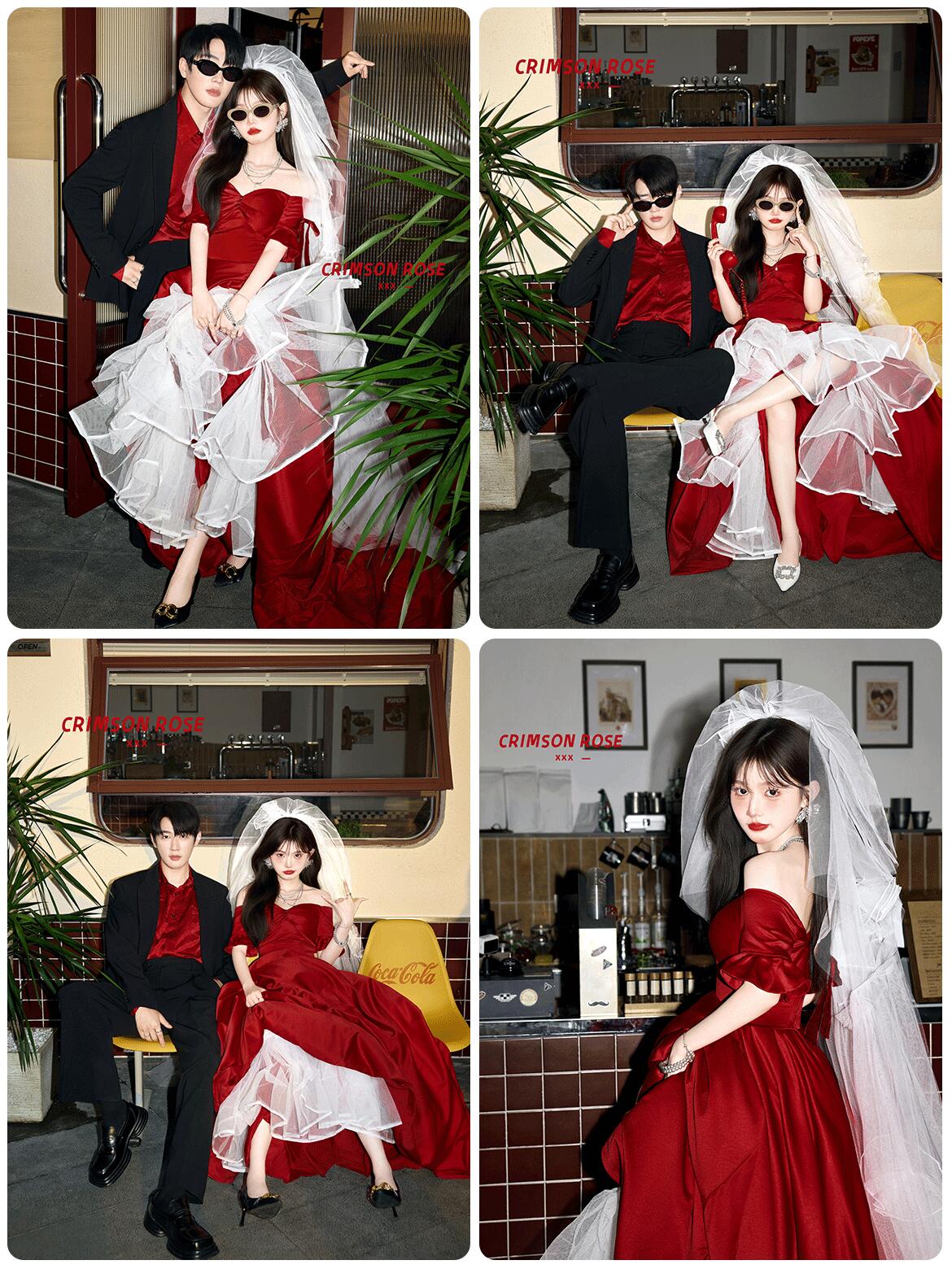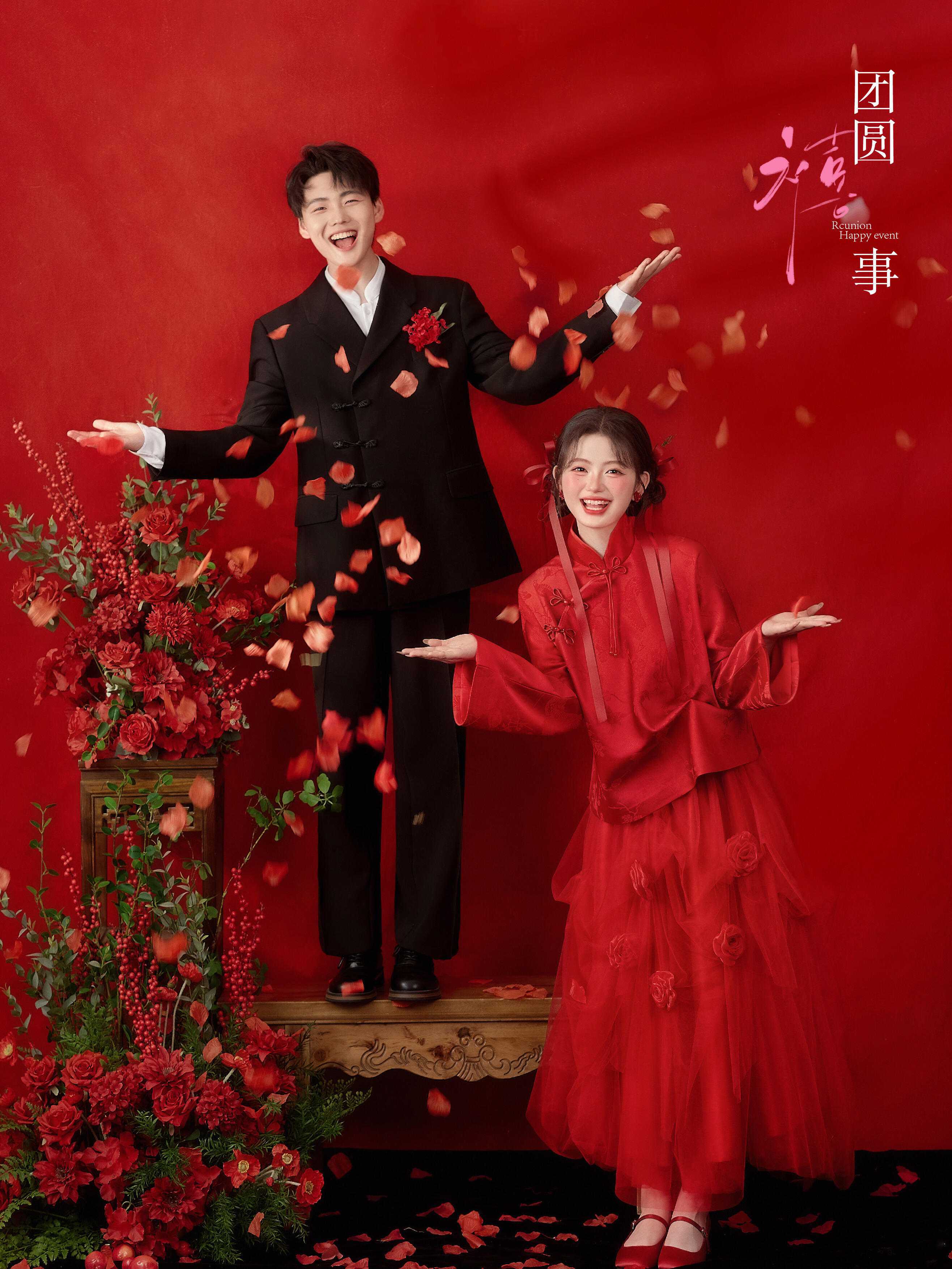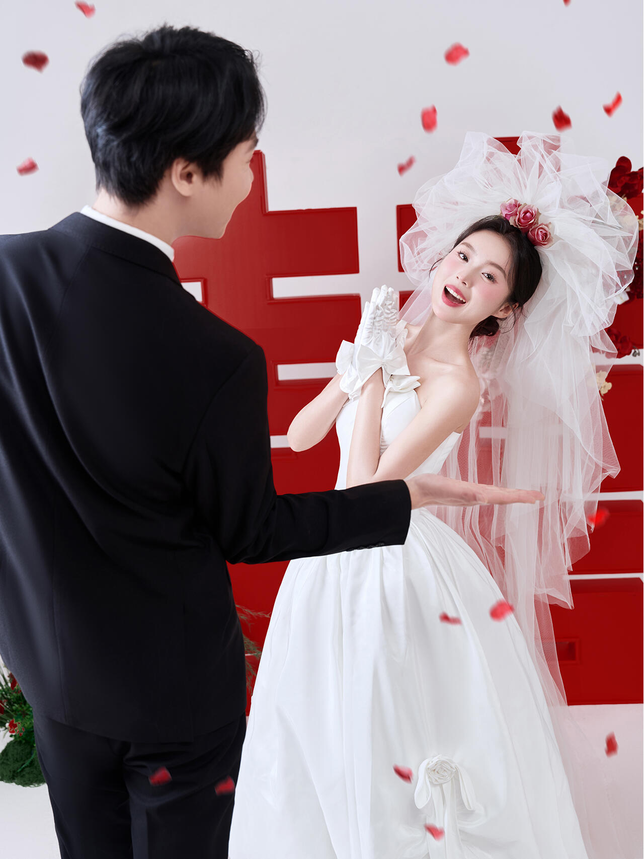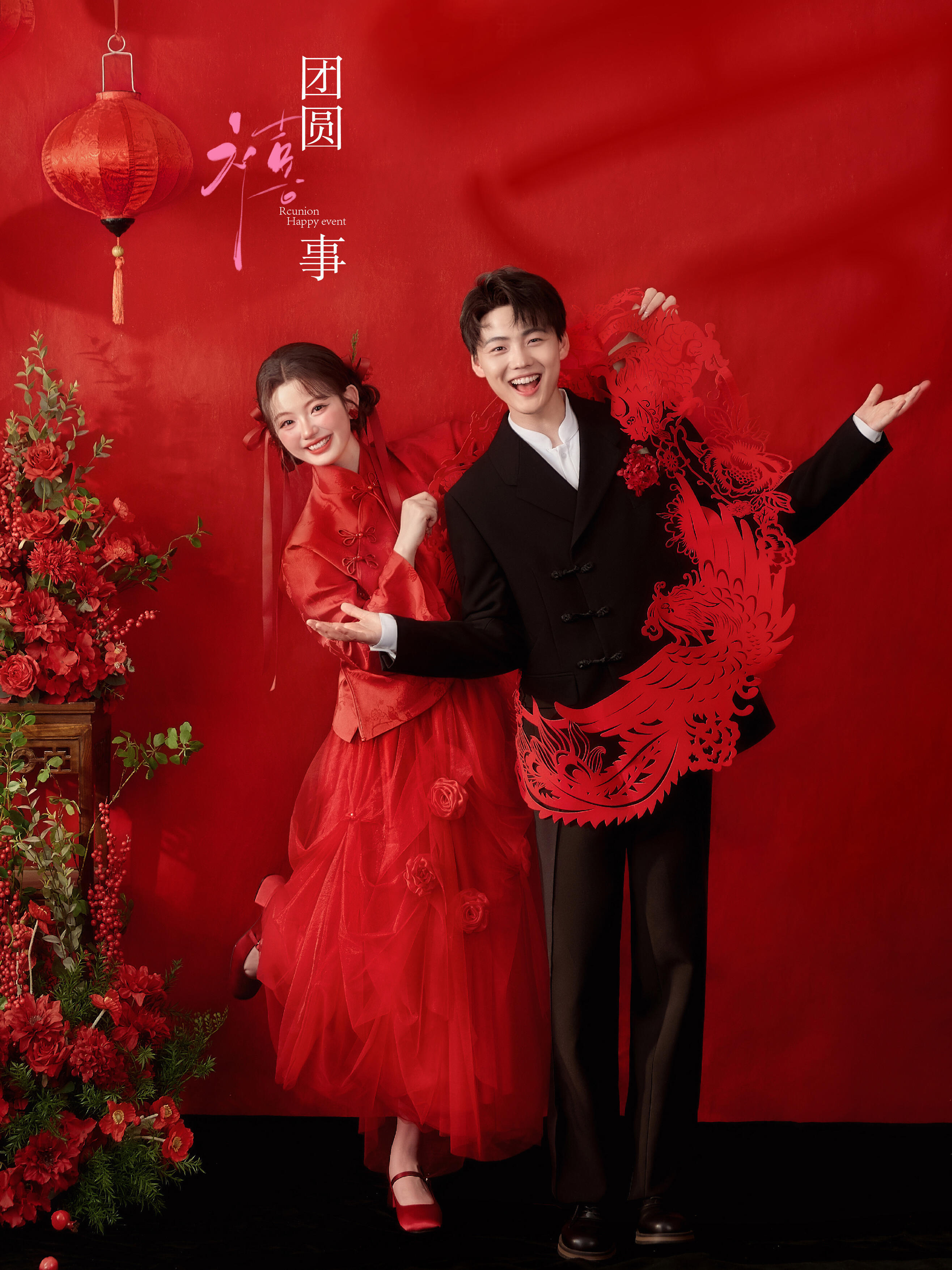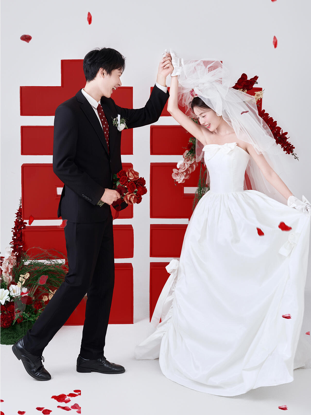 • 谁懂啊!大红色囍字背景一摆 氛围感拉满✨ 白纱的纯粹和囍字的热烈碰撞 既有年轻人喜欢的浪漫 又戳中长辈的心#浪漫光影婚纱照