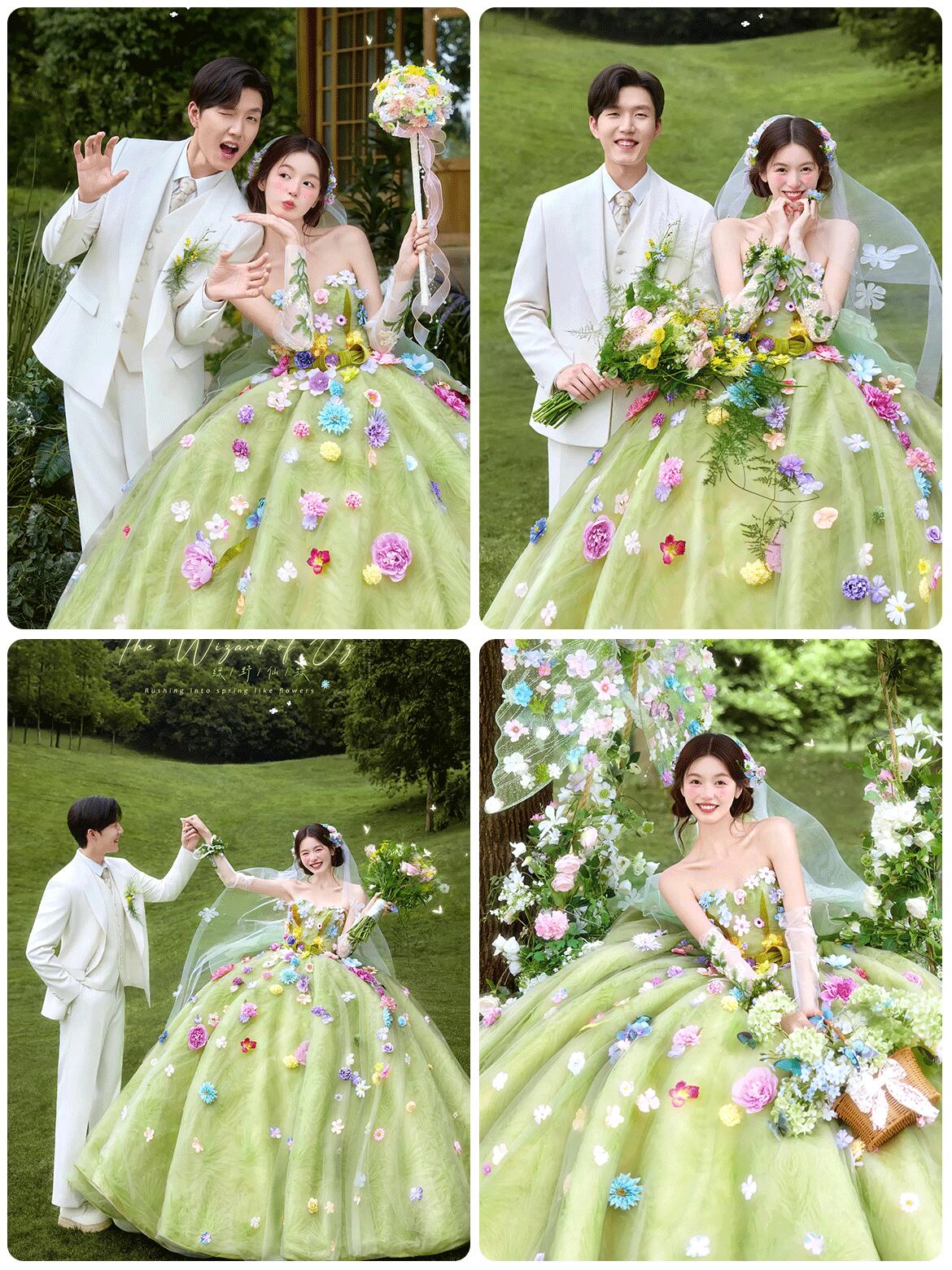 • #淮安备婚攻略 ⑧组少女感婚纱照室内&室外 小清新🍃氧气感🍃甜妹风🍃 主打一个年轻范儿 · 💓8组少女感婚纱照风格 有全网爆火的绿色公主裙 也有百搭简约的清新主纱 也有中式审美拉满的汉服 👉生命力、年轻感、氛围感... 00后新娘喜欢的婚纱照风格都在这