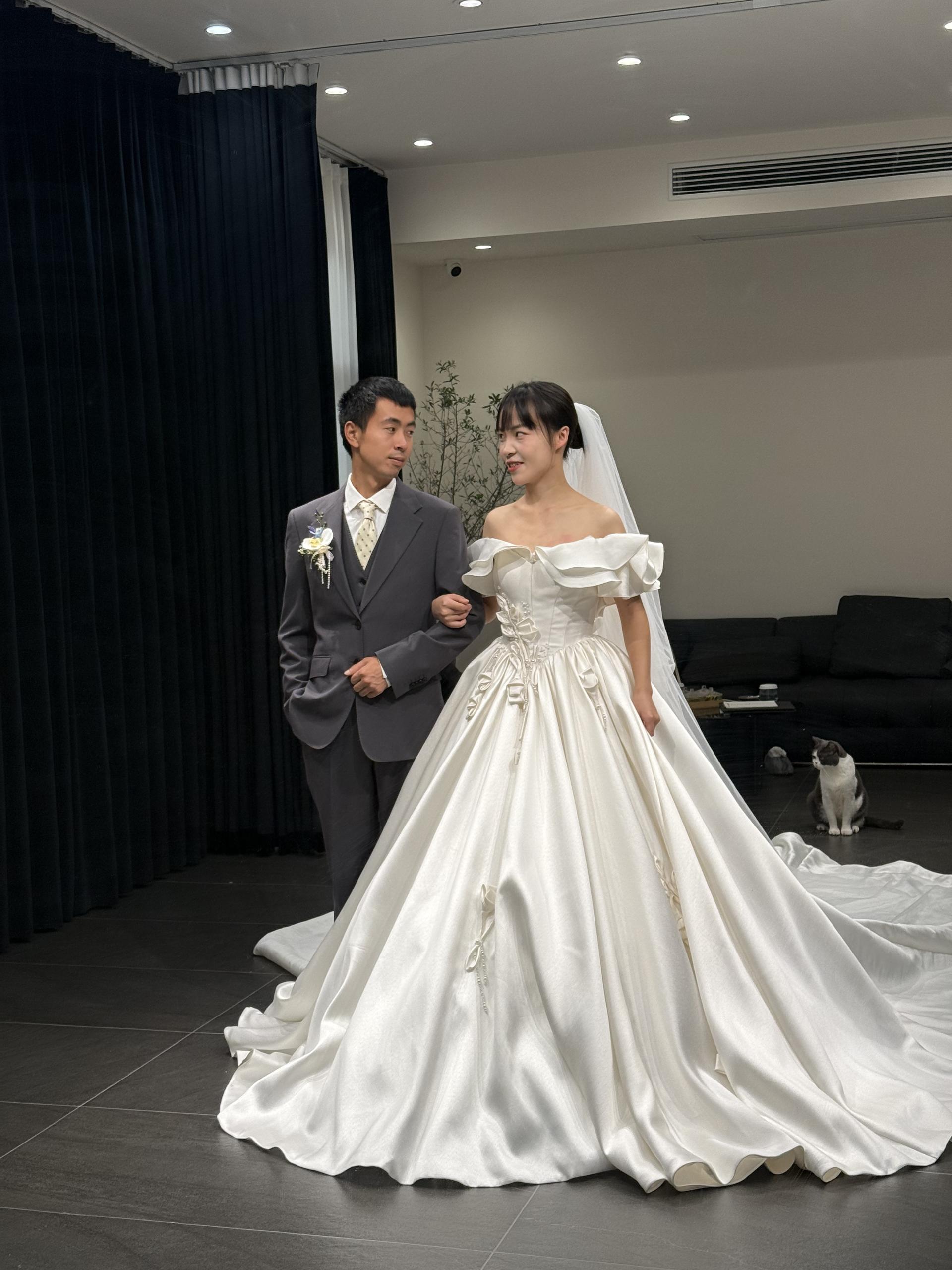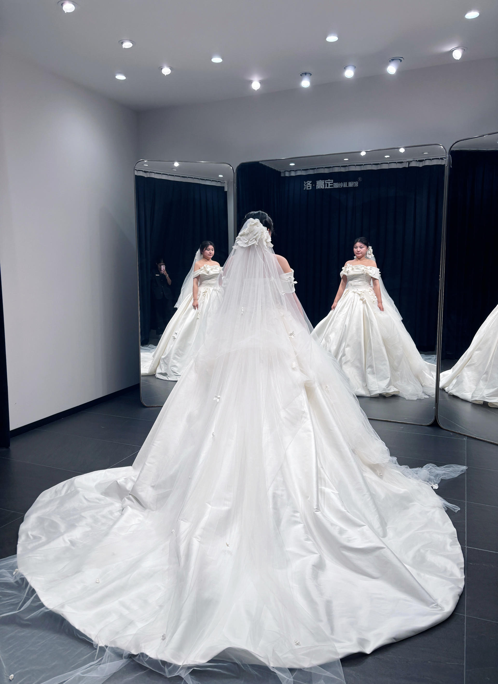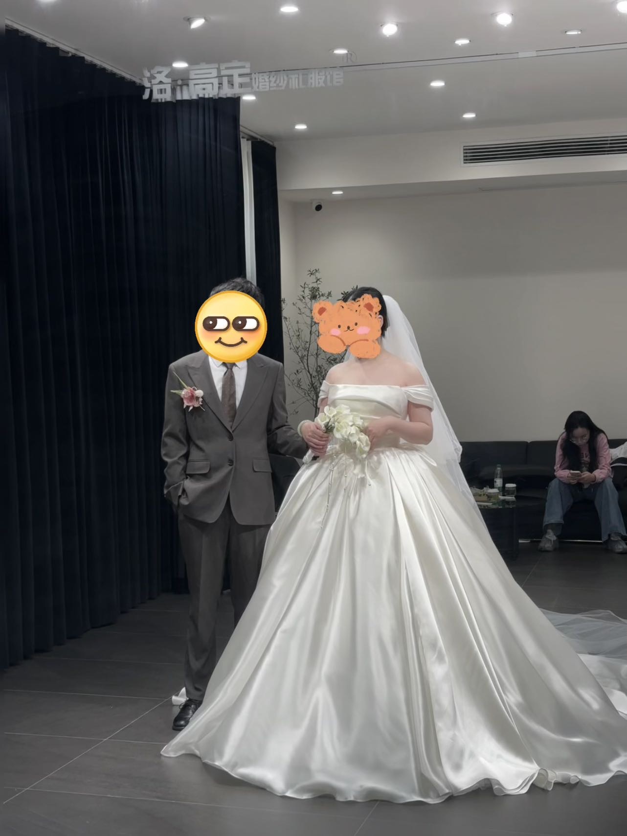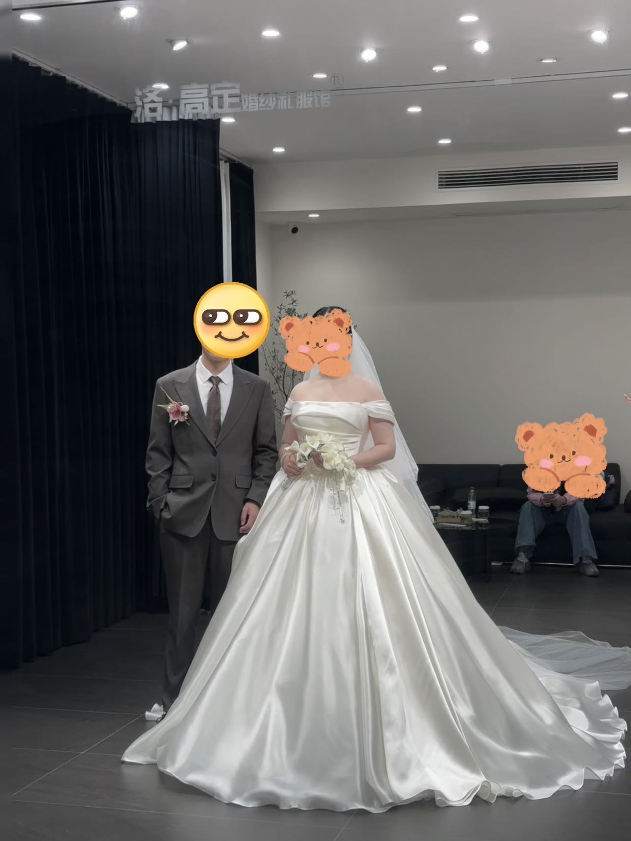 • 在洛·高定婚纱礼服馆里找到属于我的婚礼模样👰‍♀️ 在这家婚纱造型馆的试纱试妆体验,完全超出了我的期待! 关于婚纱:这款抹胸主纱太绝了!缎面的质感高级又细腻,上身的褶皱设计很显气质,大裙摆蓬度刚好,行走间自带公主气场,而且版型特别显瘦,把身材曲线衬得恰到好处。礼服师很有耐心,帮我搭配了头纱和手捧花,整个造型一出来,我瞬间就有了要结婚的实感。 关于妆容:化妆师的技术真的很在线!妆容是那种清透又精致的感觉,放大了我的优点,又很自然,不会有厚重的妆感。发型搭配的白色花饰和头纱,和婚纱风格特别搭,温柔又浪漫。 从进店的贴心接待,到试纱时的专业建议,再到试妆时的细致服务,强烈推荐给正在备婚的姐妹们,来这里试一次,你会和我一样,对自己的婚礼充满期待!