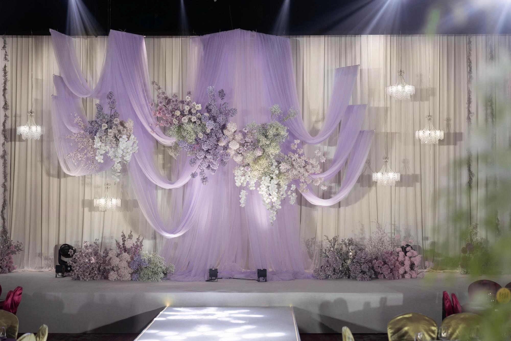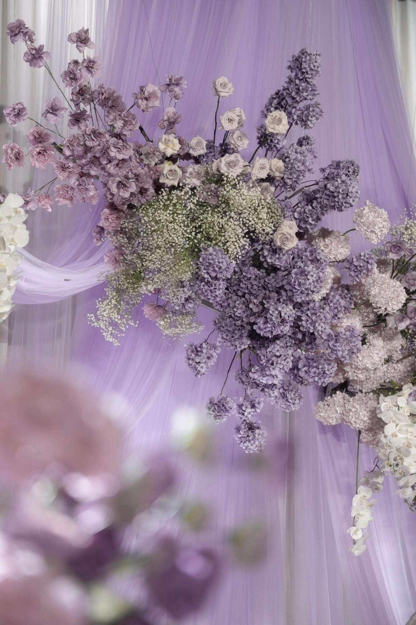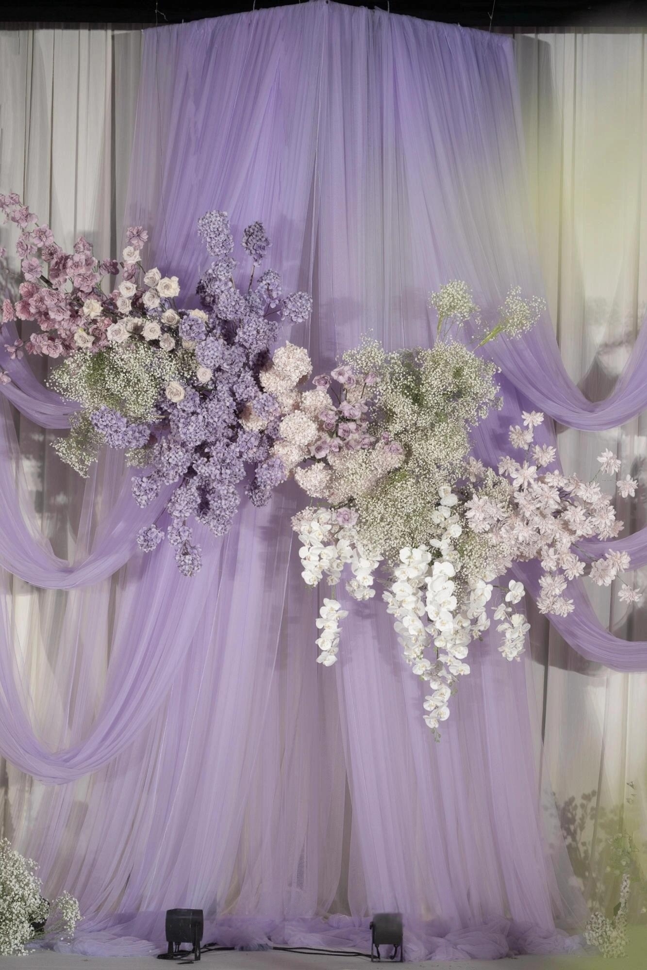 • 以"翠绿为底,素白点睛"的配色哲学构建视觉基调,通过深浅不一的绿植层次与白色花艺的穿插,模拟森林生态系统的呼吸感。主舞台采用(方形)纯白KT板背景与(圆形)翠绿色系的组合,加之形成纵向空间延伸,配合绿白花艺点缀变化,打造"会生长的婚礼场景",揭示青春生机之寓意。