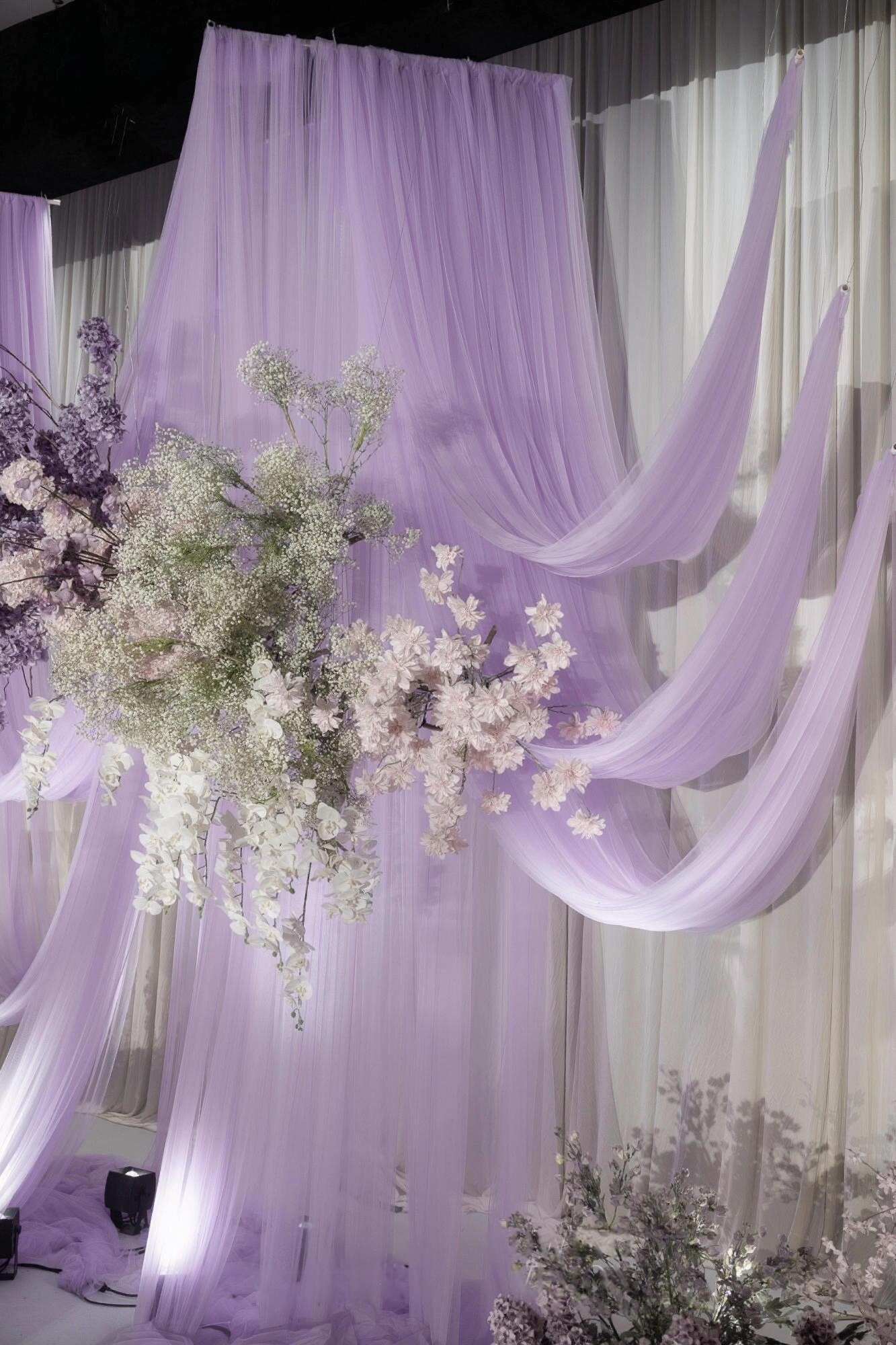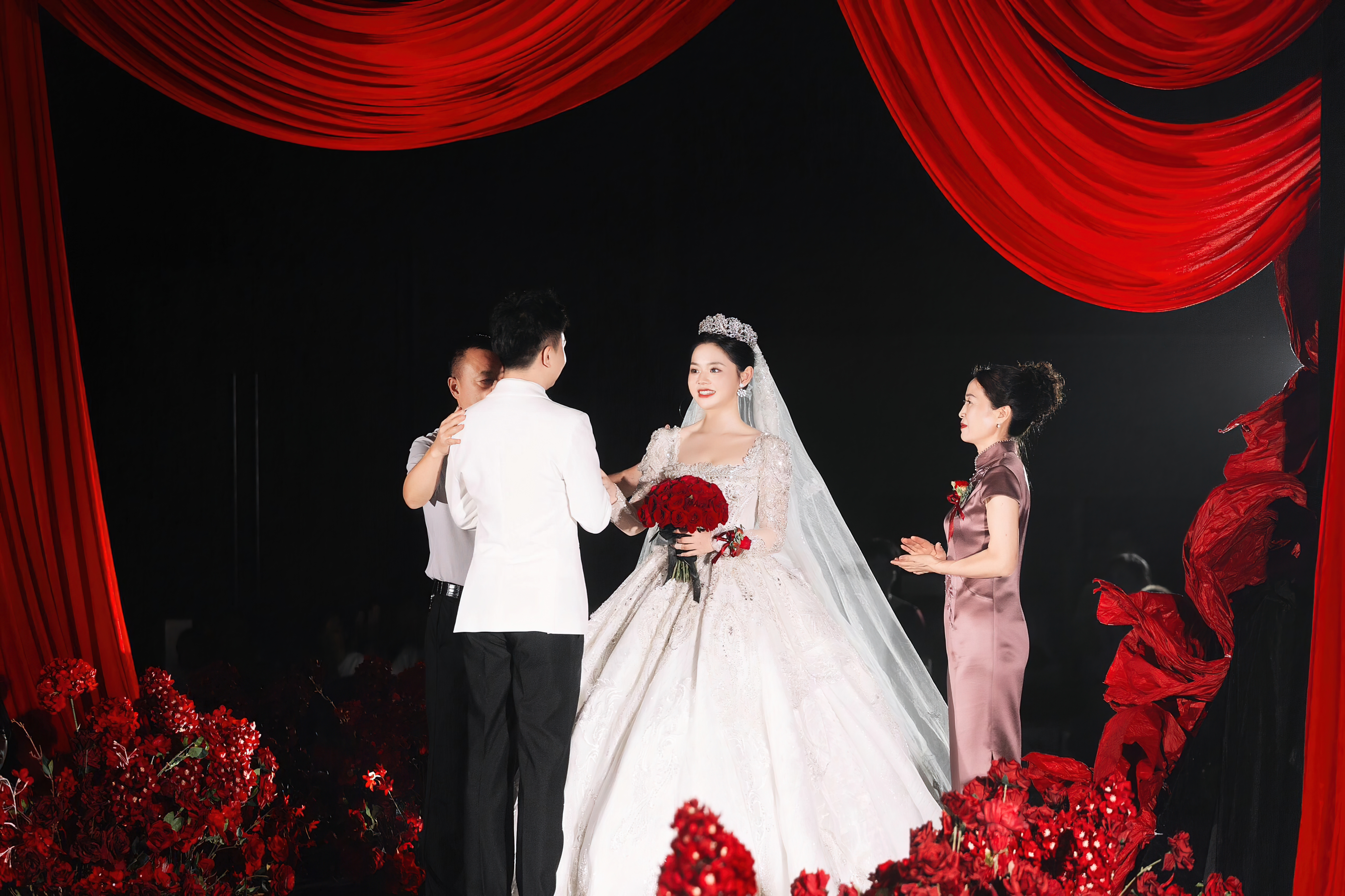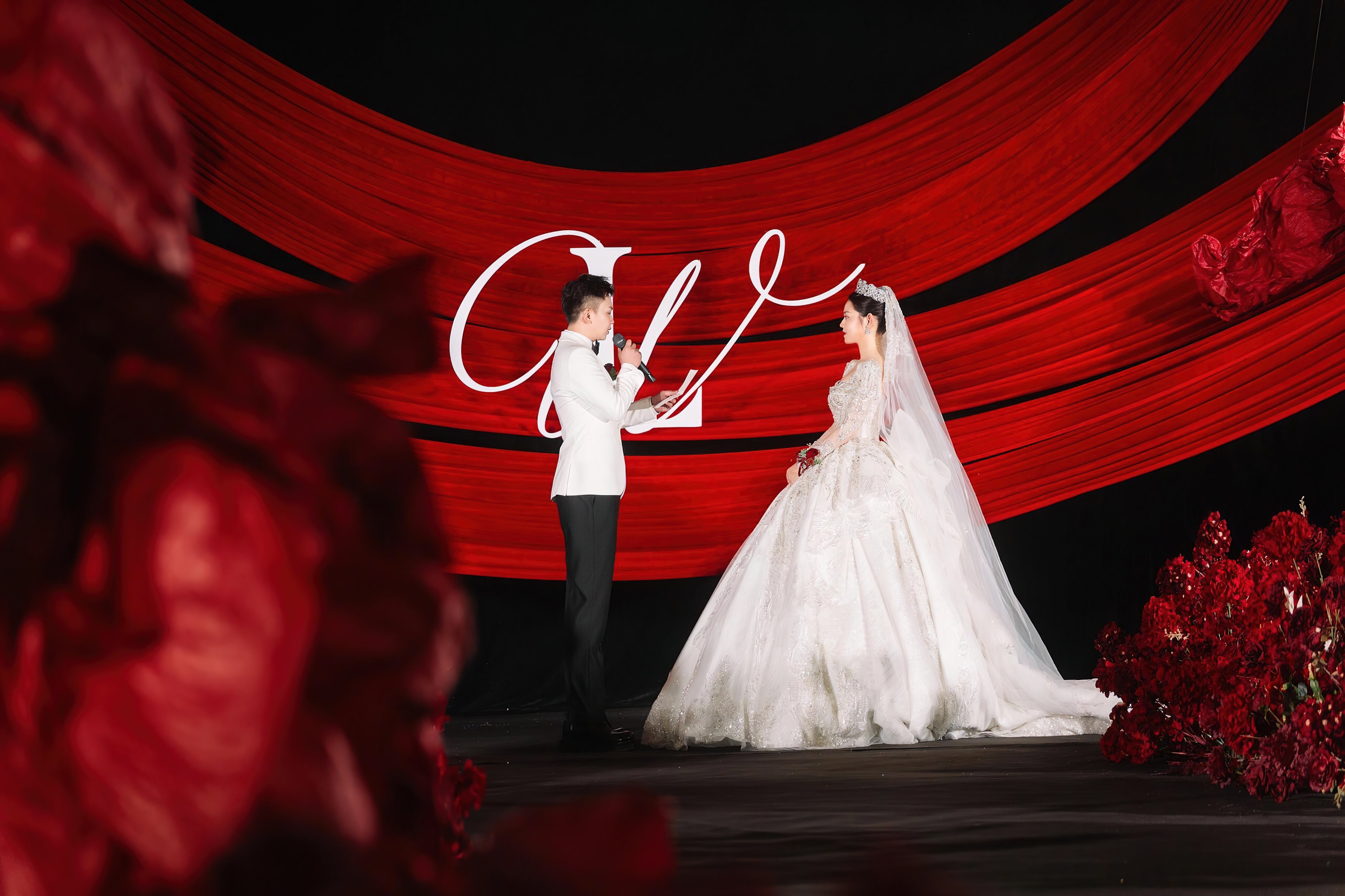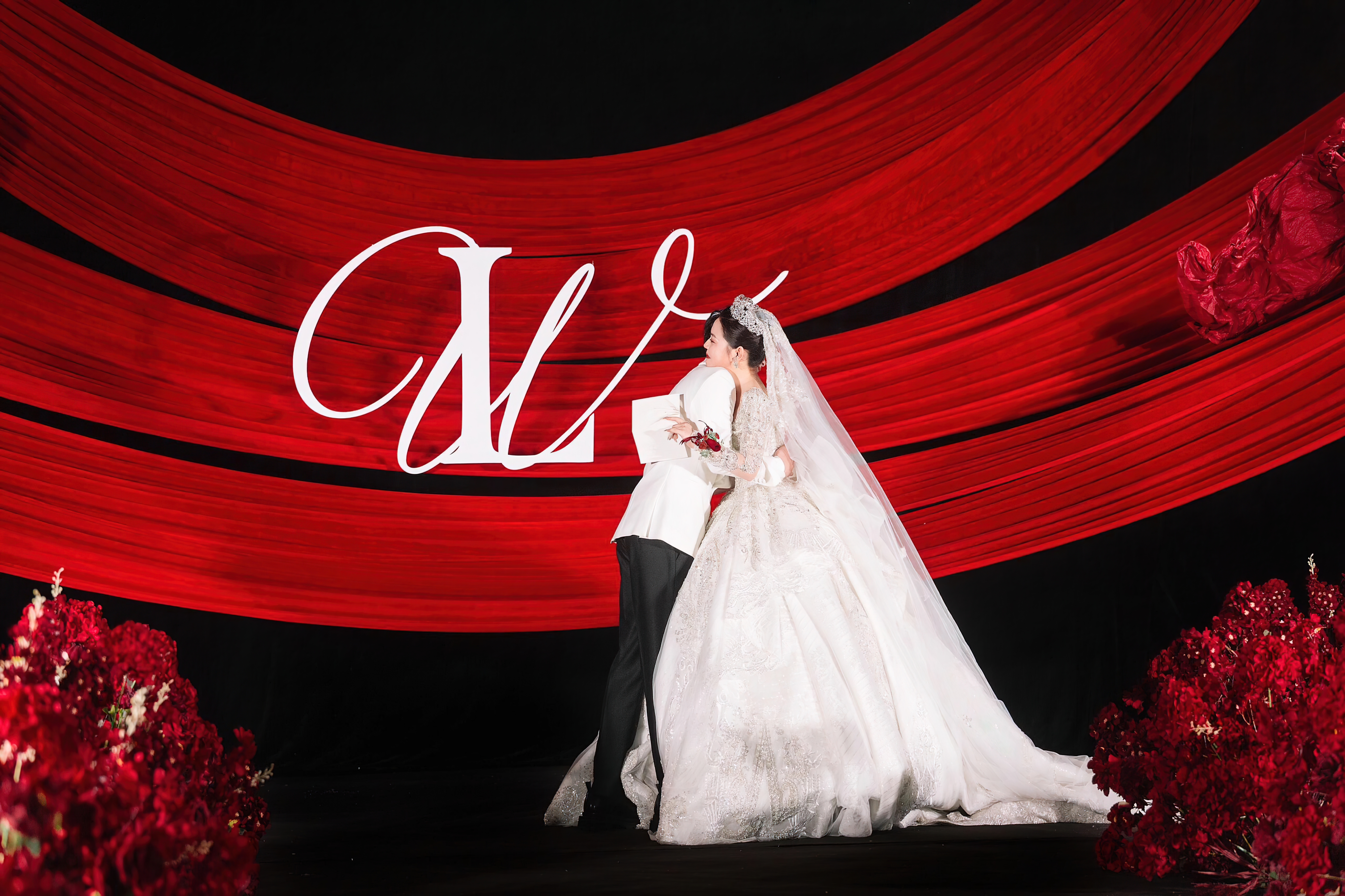 • 以"翠绿为底,素白点睛"的配色哲学构建视觉基调,通过深浅不一的绿植层次与白色花艺的穿插,模拟森林生态系统的呼吸感。主舞台采用(方形)纯白KT板背景与(圆形)翠绿色系的组合,加之形成纵向空间延伸,配合绿白花艺点缀变化,打造"会生长的婚礼场景",揭示青春生机之寓意。