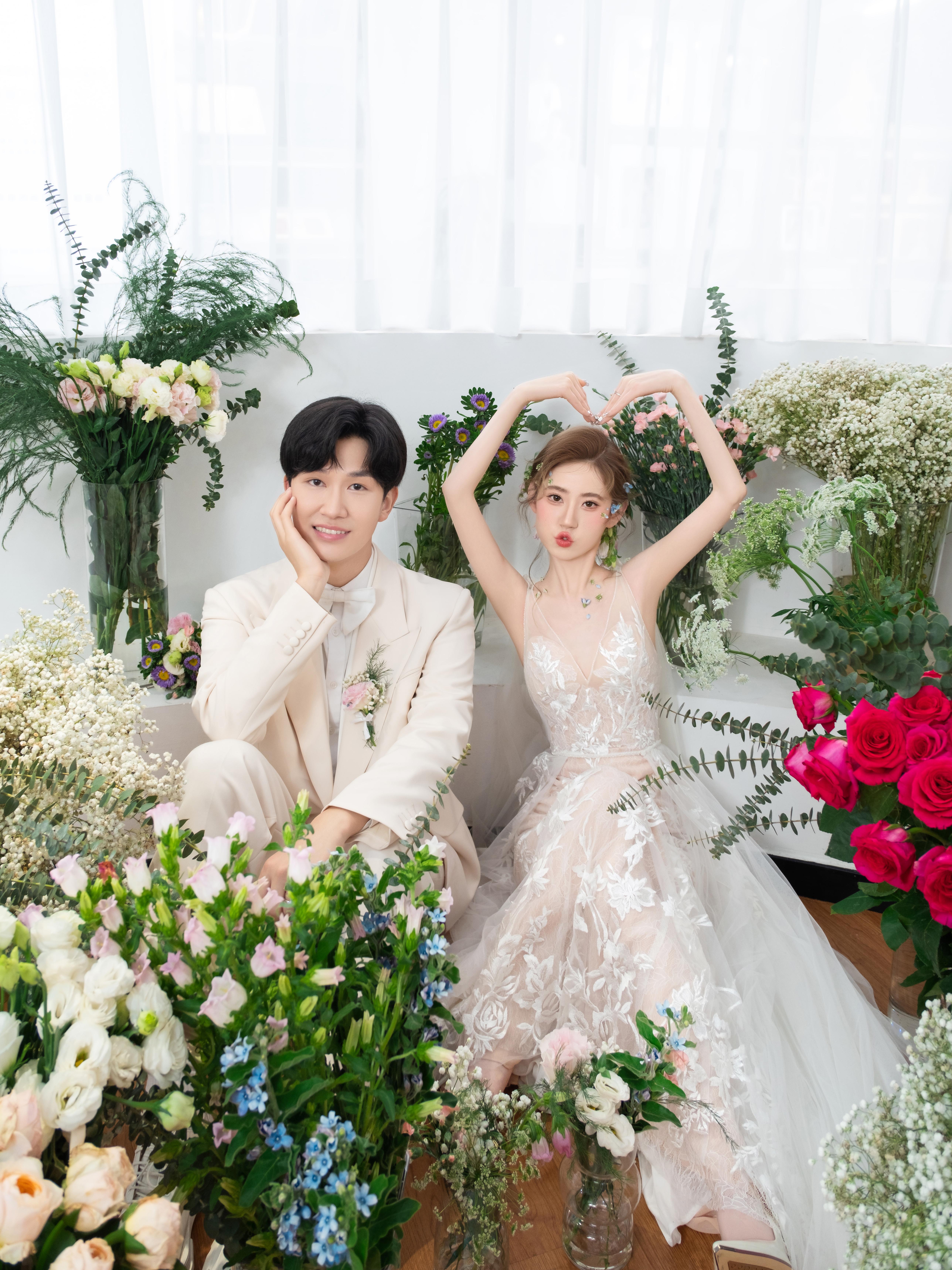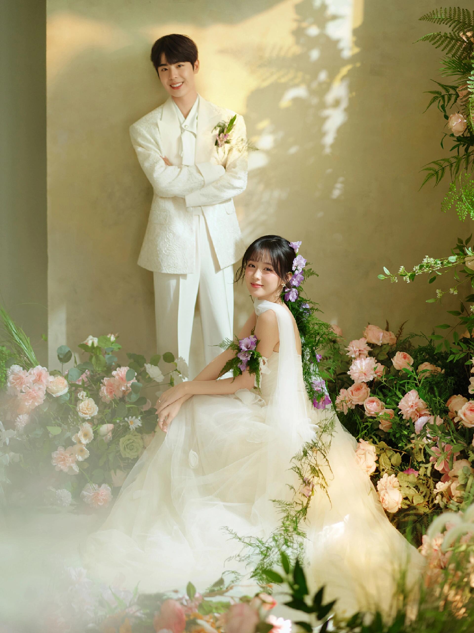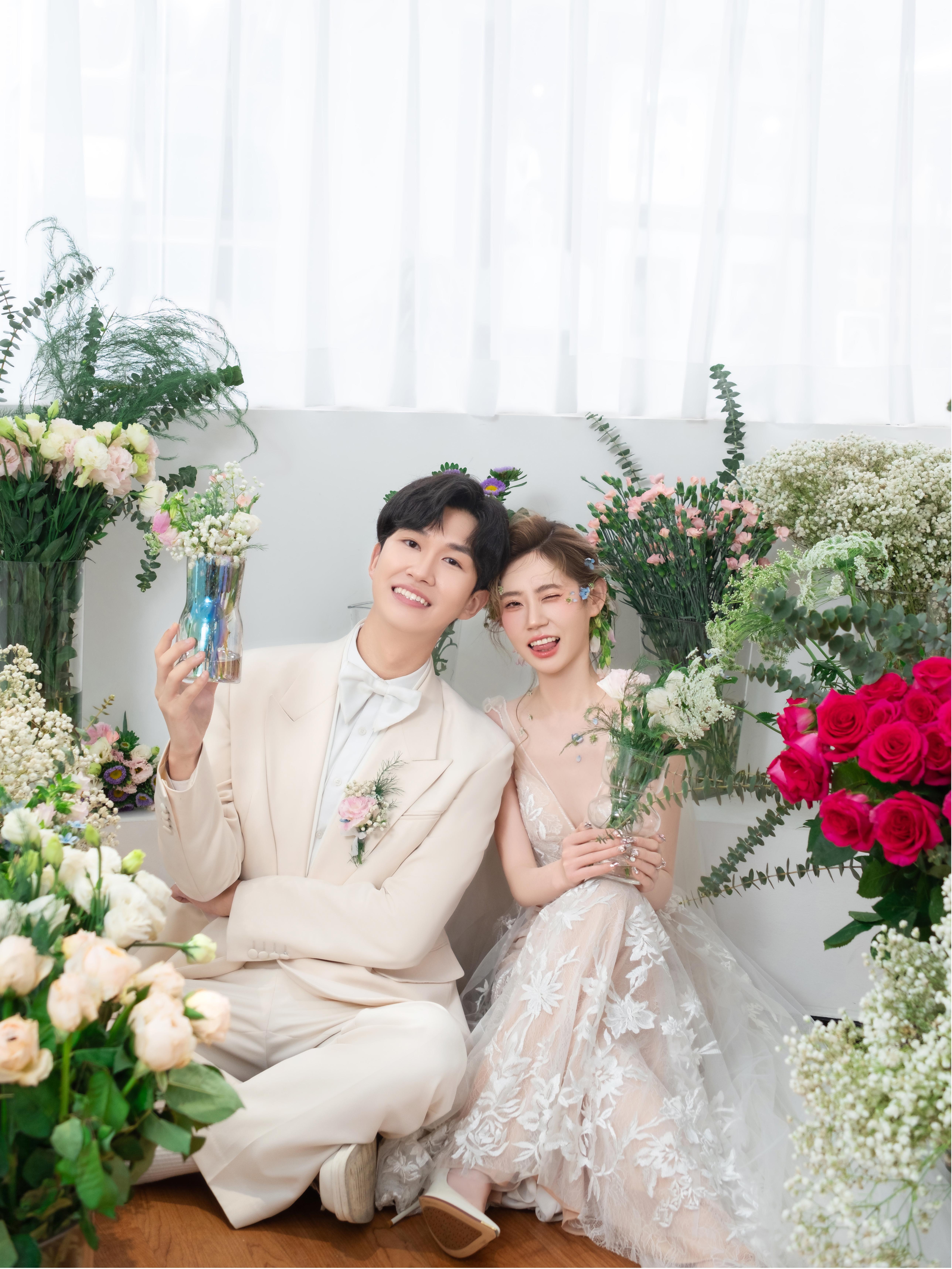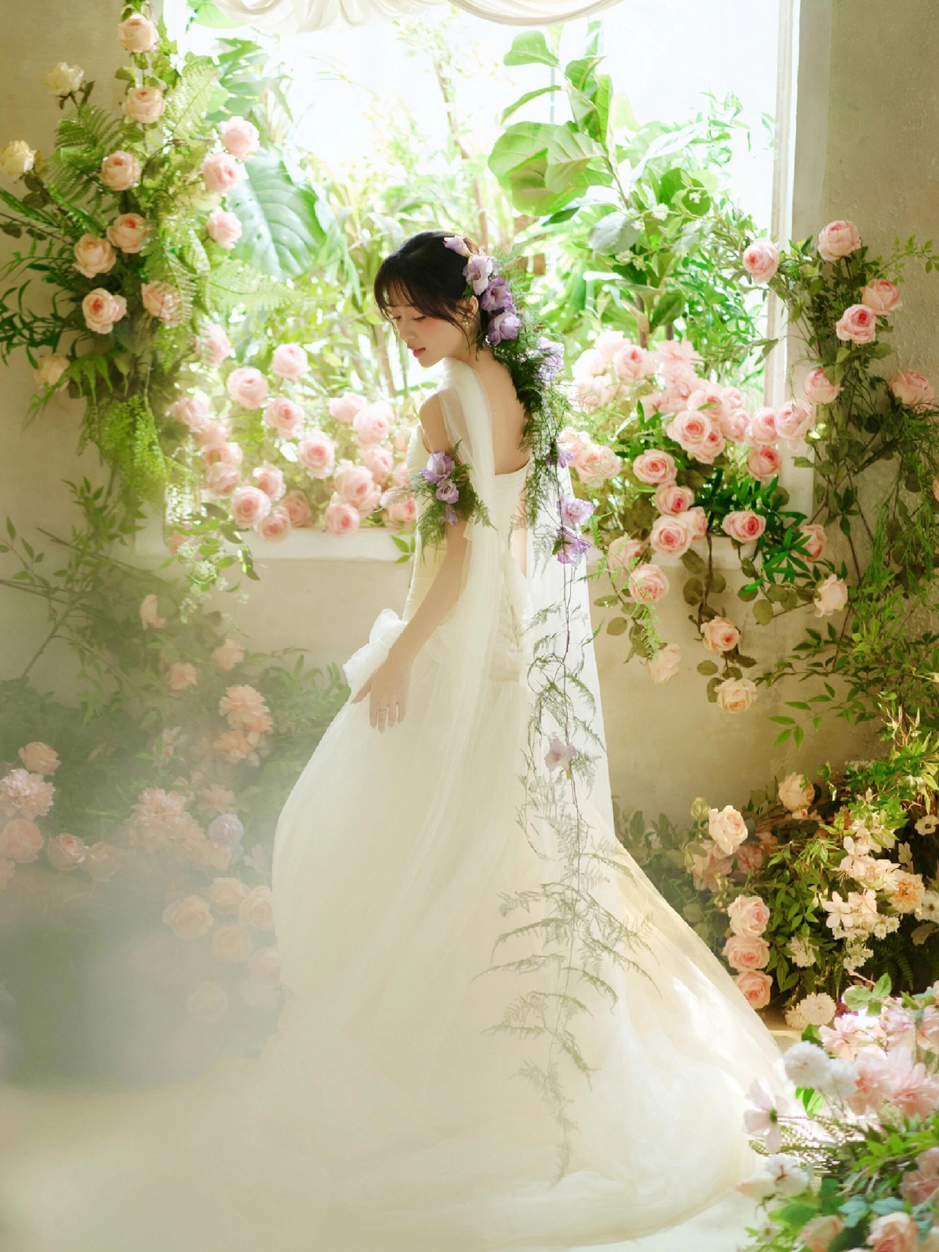 • 💍想象一下,被花儿簇拥的梦幻空间 每一帧都是爱情电影的画面!🎬 👗👰‍♀️ 轻盈蕾丝婚纱,搭配森系手捧花,仙系女神范儿十足! 花房秘境,朦胧光影,氛围感直接拉满💖#韩式花房婚纱照