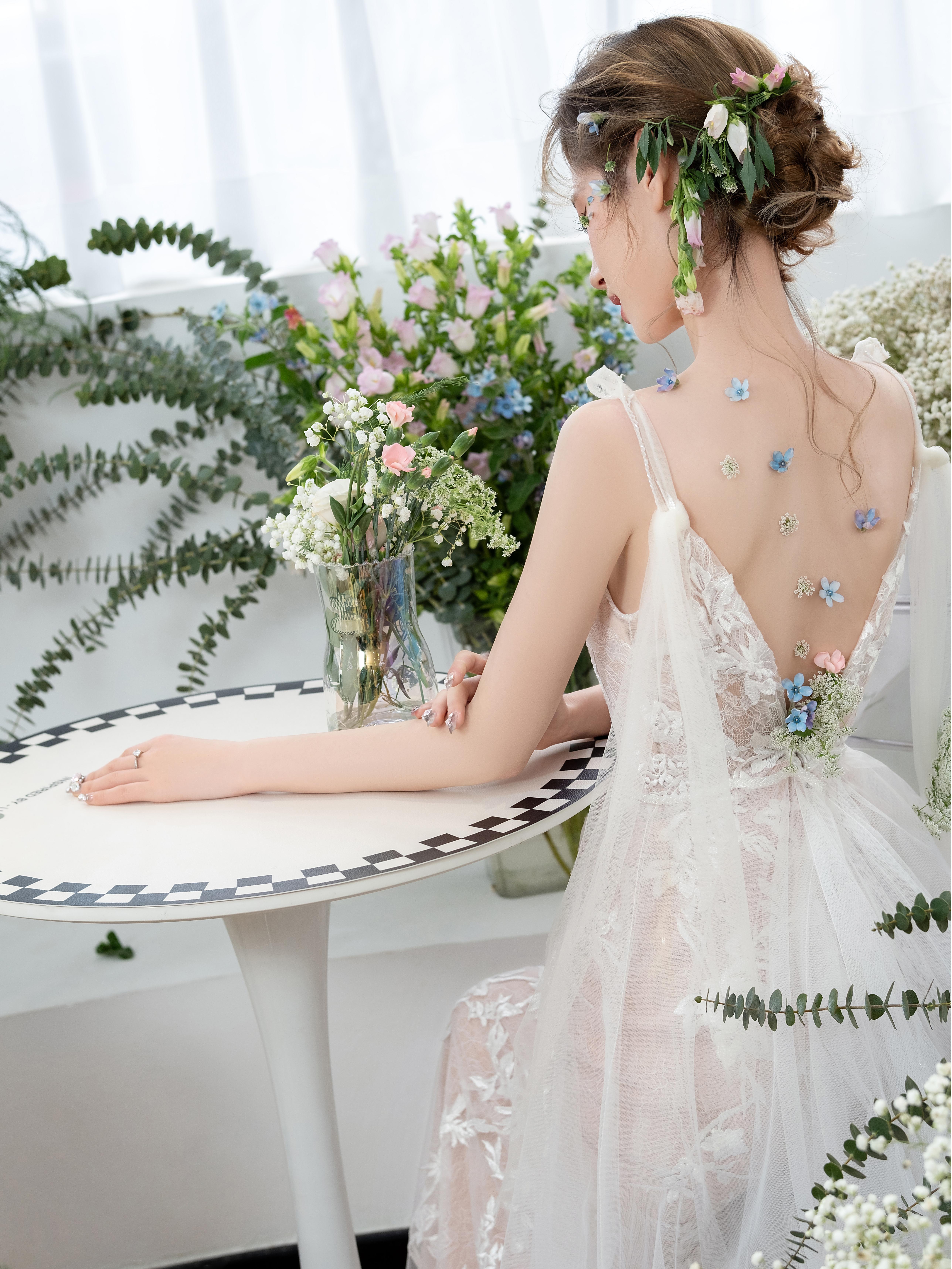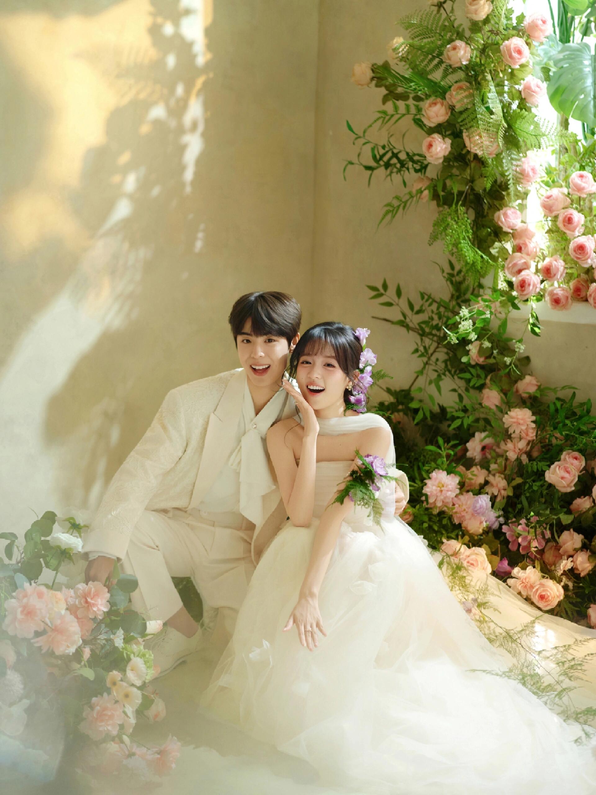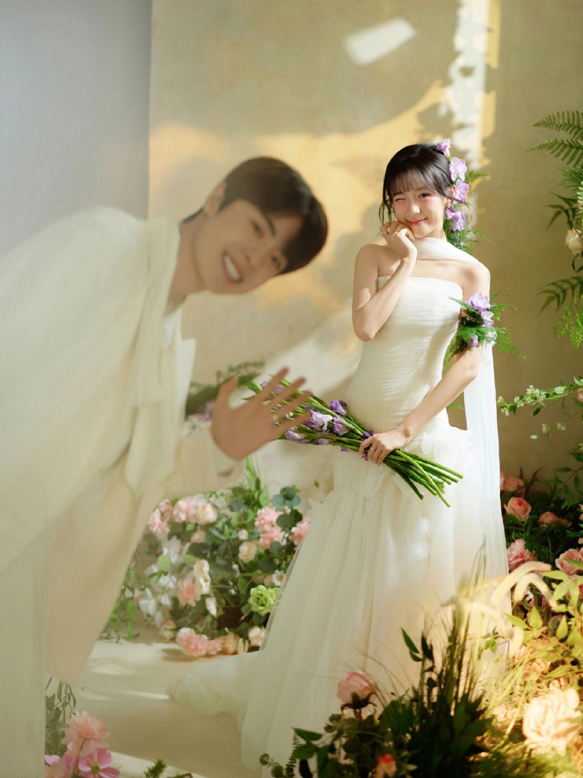 • 💍想象一下,被花儿簇拥的梦幻空间 每一帧都是爱情电影的画面!🎬 👗👰‍♀️ 轻盈蕾丝婚纱,搭配森系手捧花,仙系女神范儿十足! 花房秘境,朦胧光影,氛围感直接拉满💖#韩式花房婚纱照