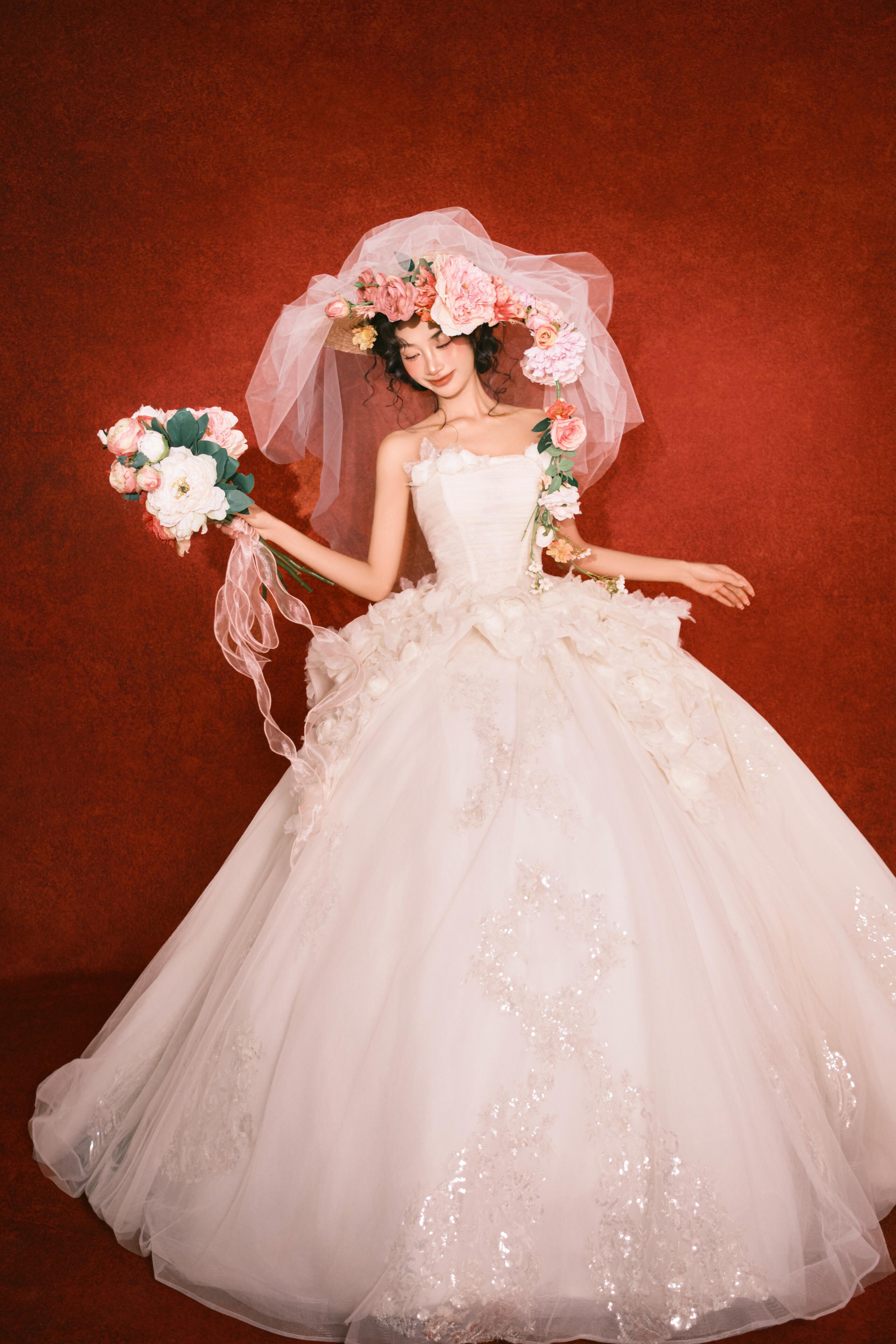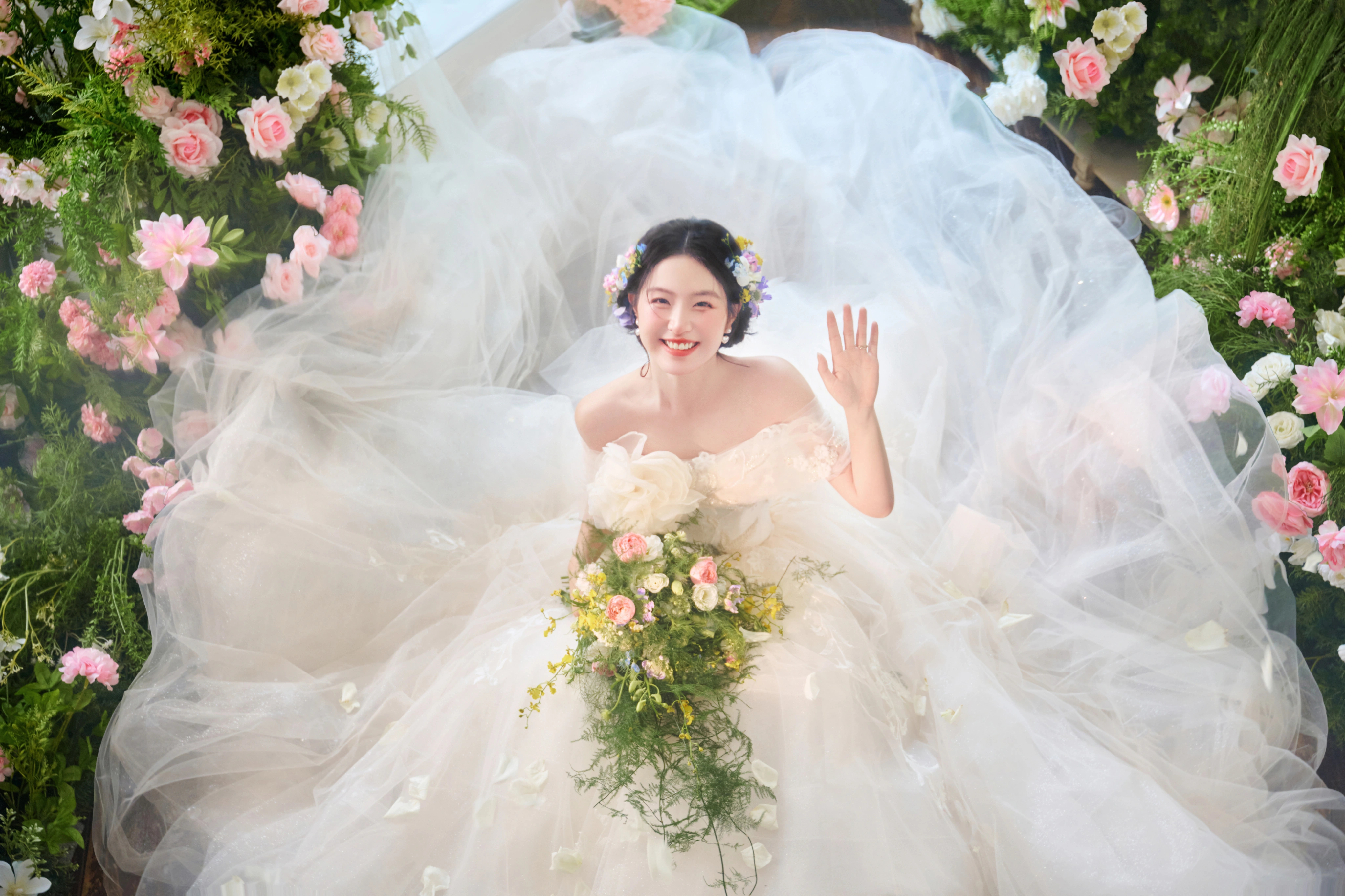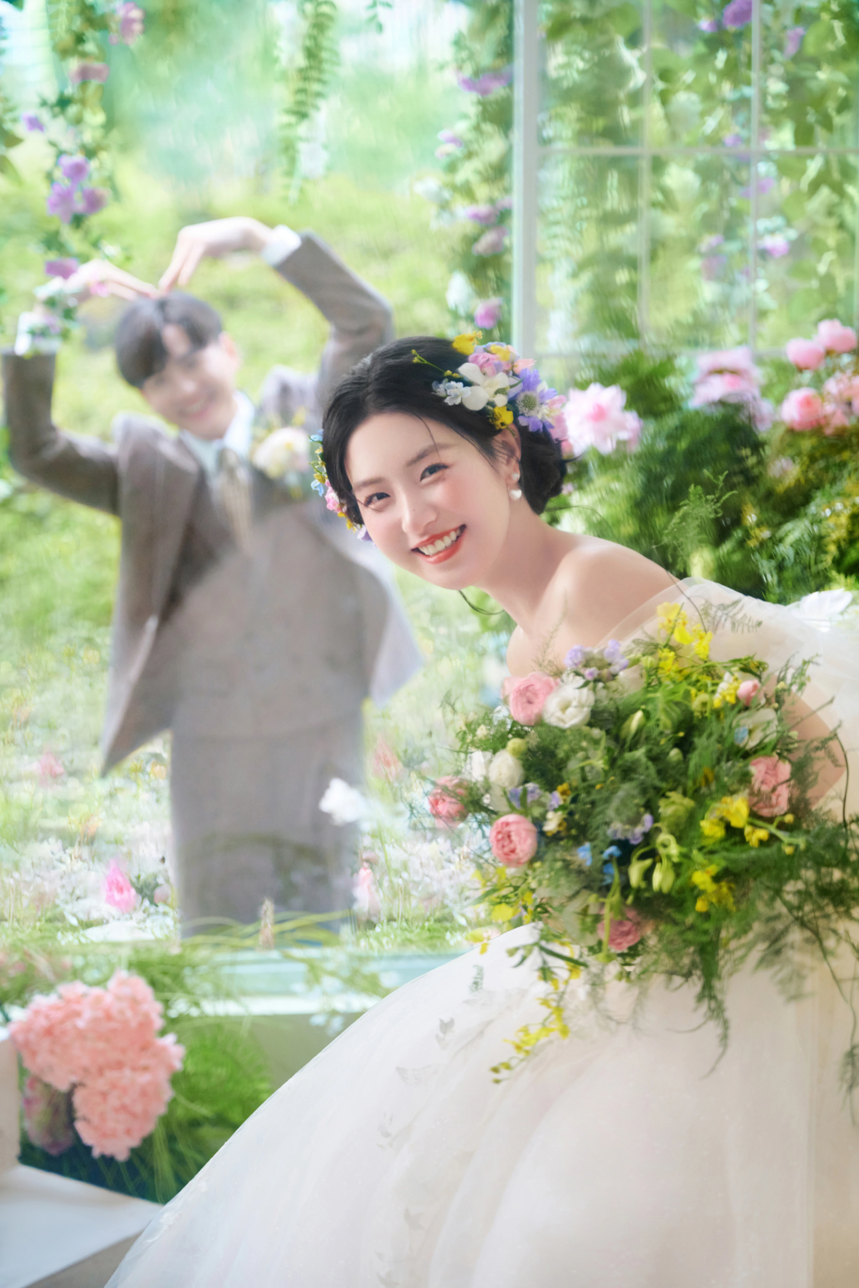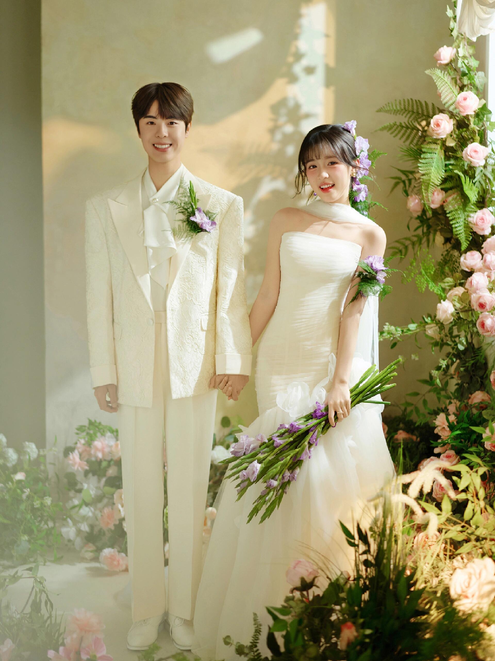 • 💍想象一下,被花儿簇拥的梦幻空间 每一帧都是爱情电影的画面!🎬 👗👰‍♀️ 轻盈蕾丝婚纱,搭配森系手捧花,仙系女神范儿十足! 花房秘境,朦胧光影,氛围感直接拉满💖#韩式花房婚纱照