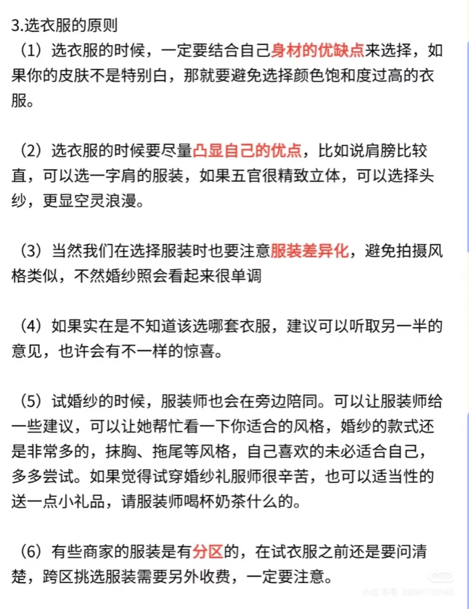 • 拍婚纱试纱注意事项 为了确保拍摄当天的拍摄效果,在拍婚纱照之前,需要提前试衣服 这个环节是很多准新娘容易忽视的环节!! 结果到了拍摄当天现场试装,就会出现不合身、效果不理想等问题 提前试服装不仅时间充裕,还能慢慢的挑选自己喜欢的服装。如果遇到了服装不合适、也有足够的时间去调整。#婚纱照拍摄注意事项