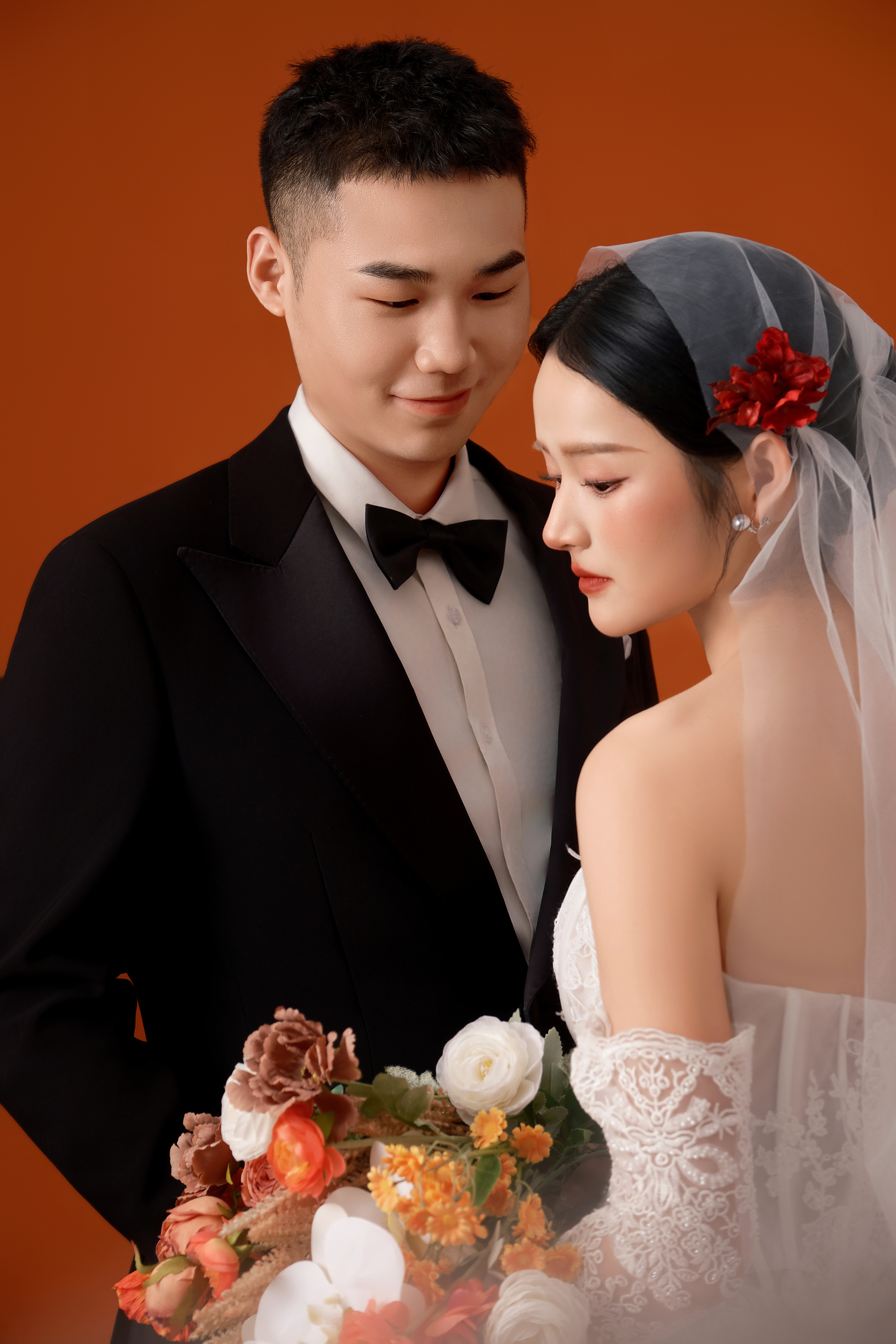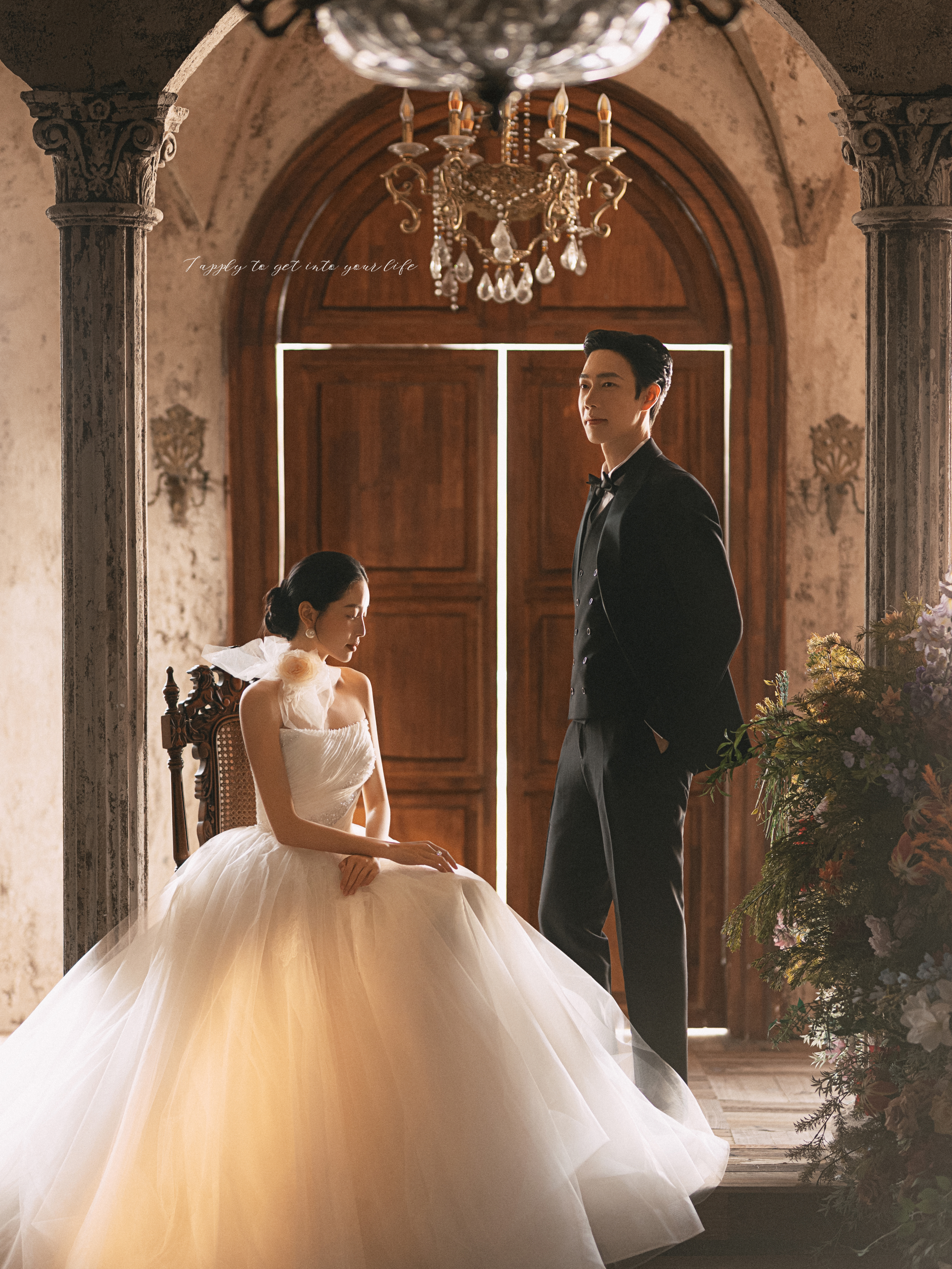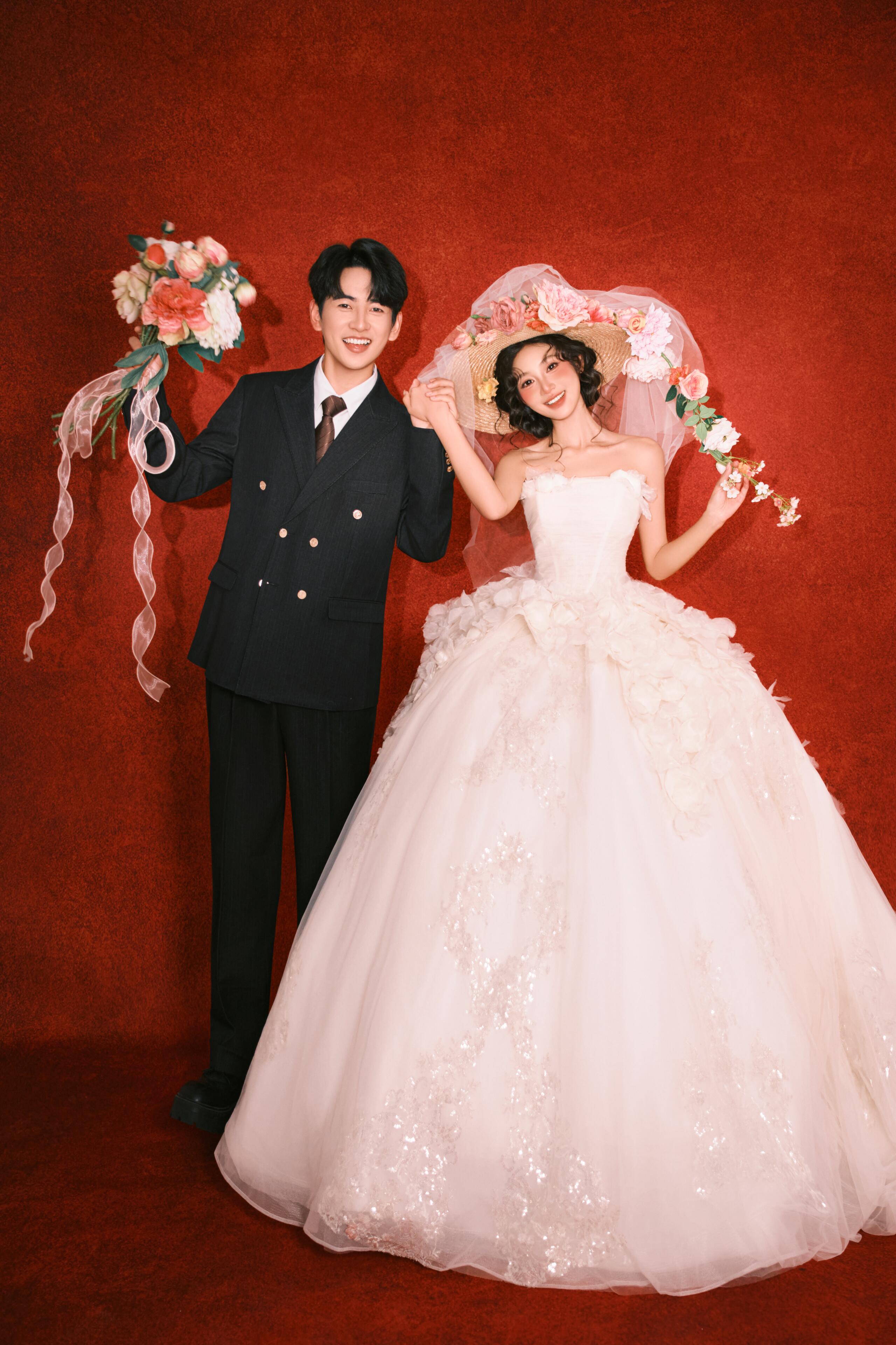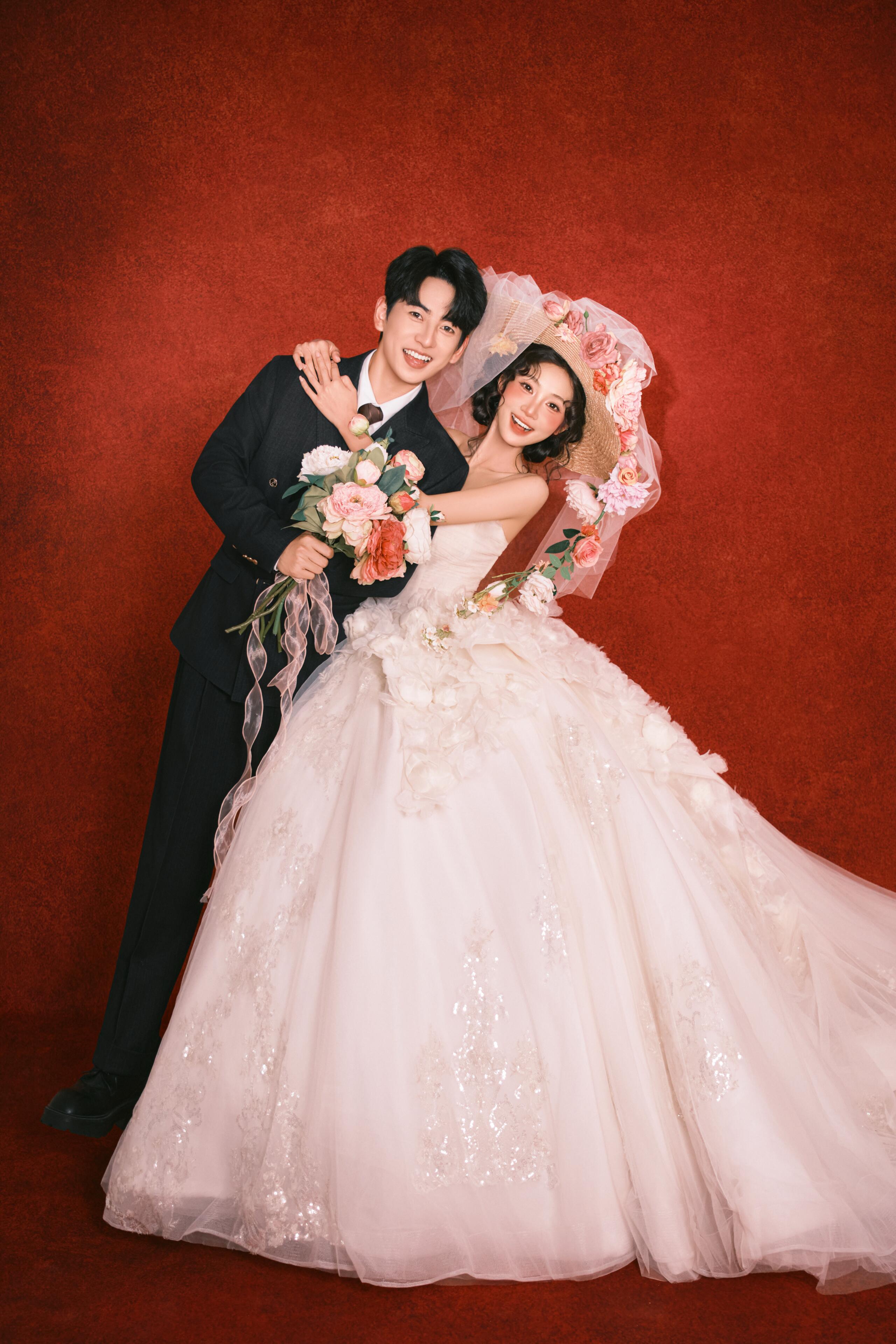 • #韩式花房婚纱照 轻氧森系婚纱照谁拍谁好看👀 花艺混了红玫与白瓣,暗调布景里更显柔媚; 互动是轻靠、浅笑的松弛瞬间,每帧都裹着朦胧柔光 甜得刚好