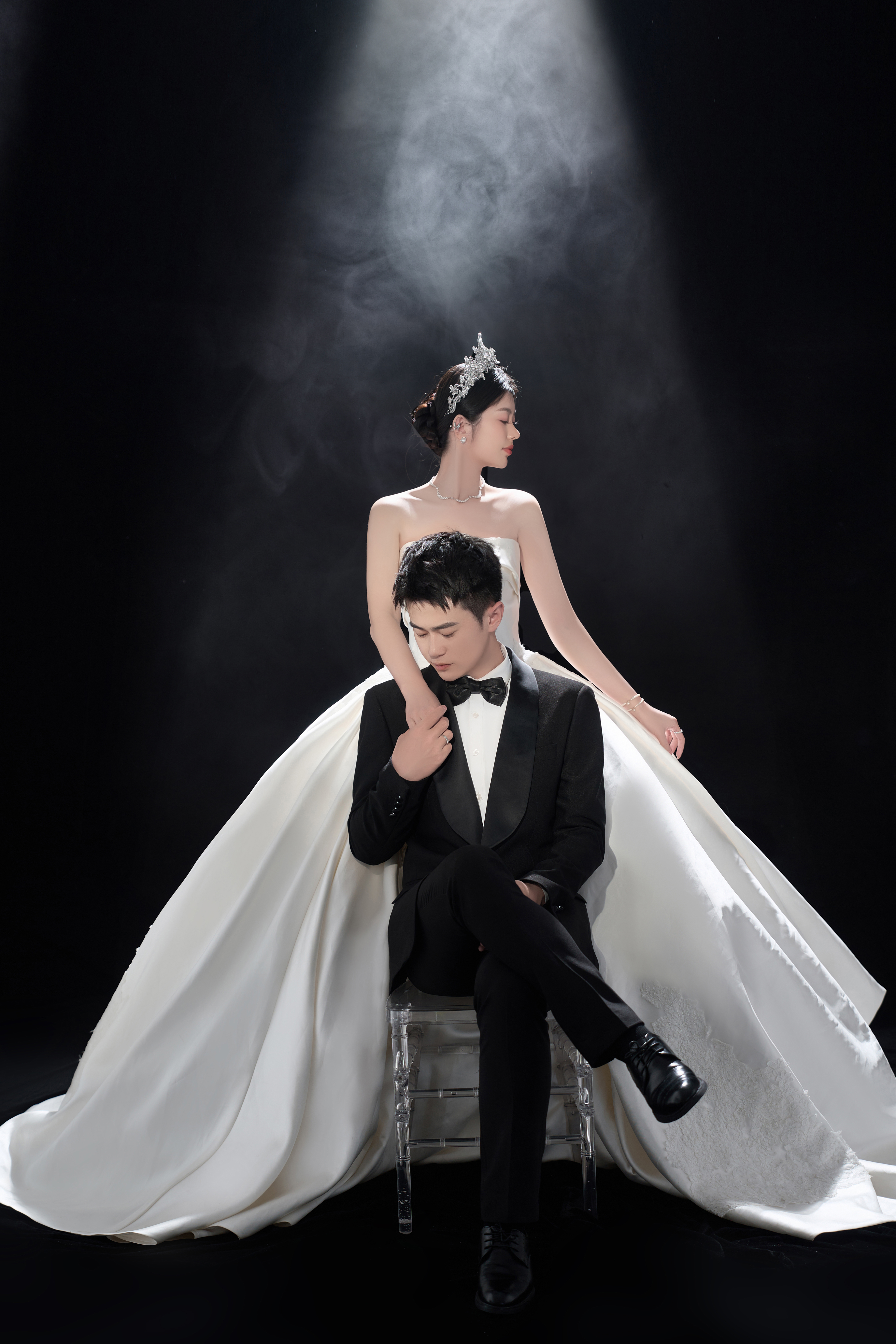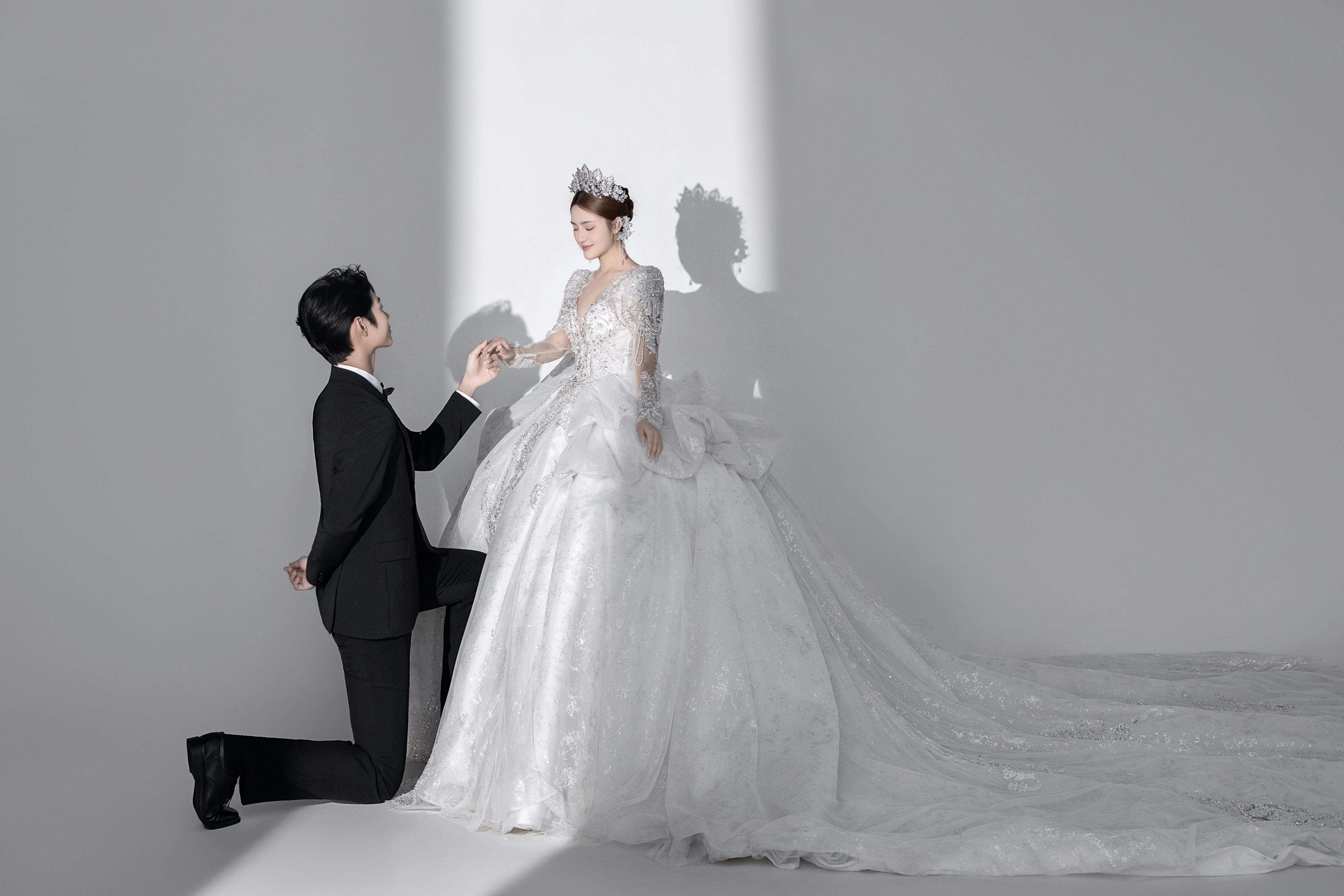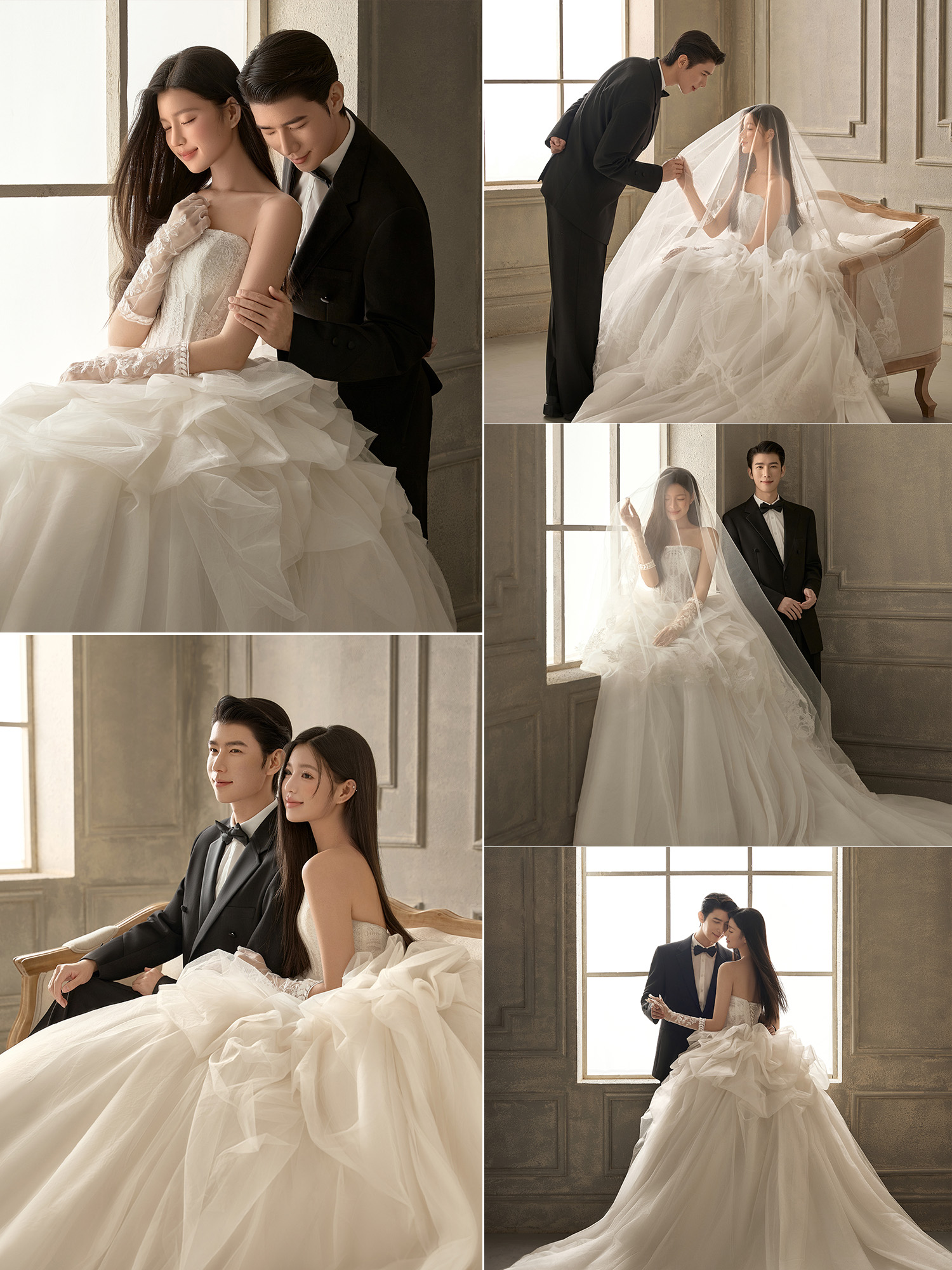 • 干净纯色的背景更加能凸显人物 洁白的婚纱为一生 把浪漫藏匿在镜头里 将美好定格在婚纱照中 ✨ 在极简的空间背景下 两人的情感流露更显细腻 镜头定格下来的每一张照片 都足够纯粹高级且耐看💛#浪漫光影婚纱照