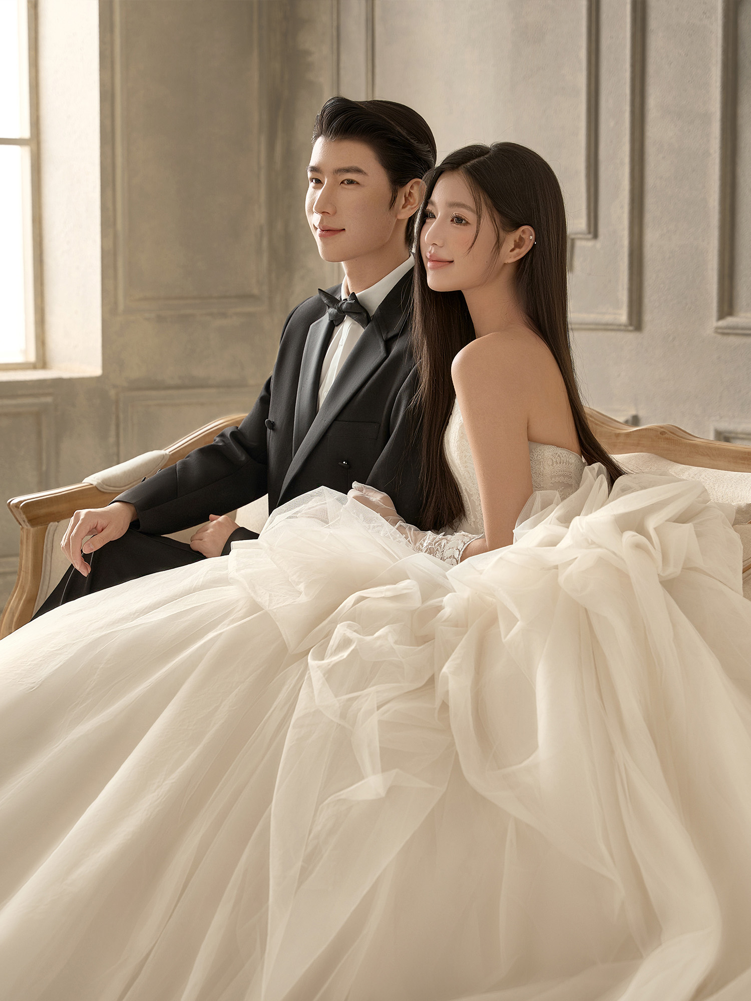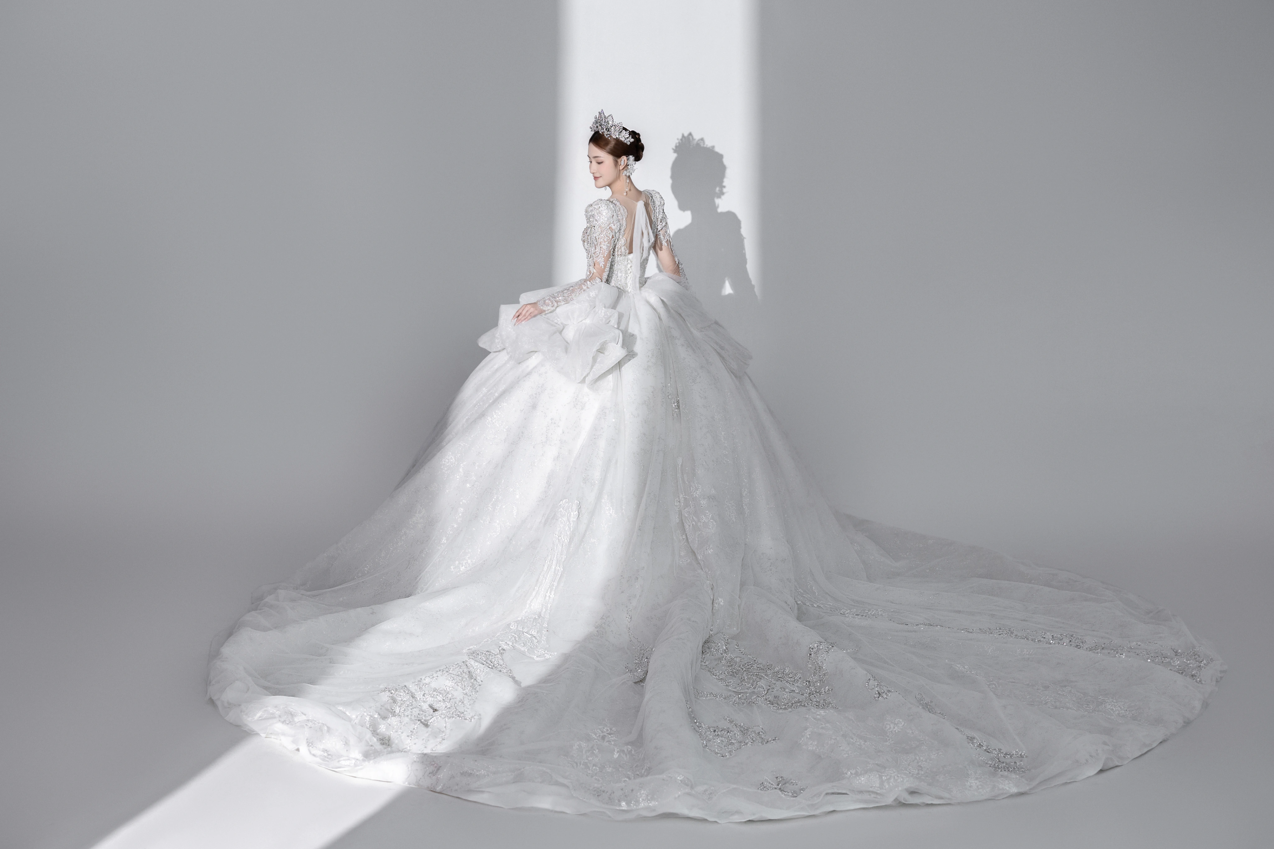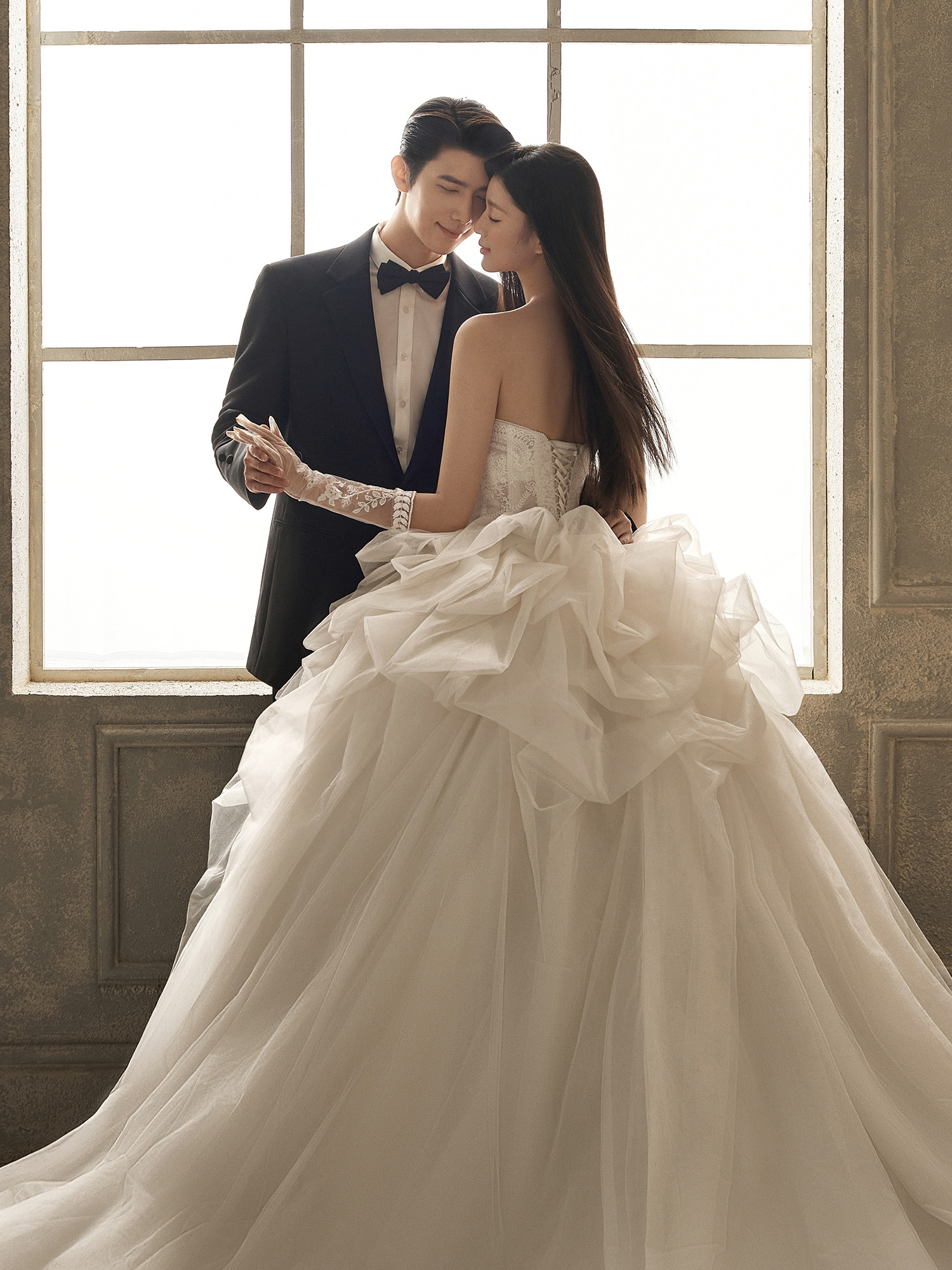 • – 浪漫的极繁风内景婚纱照 繁复但高级的背景 再加上一抹光影 奢华的主纱也为陪衬 这样浪漫的室内光影婚纱照#浪漫光影婚纱照