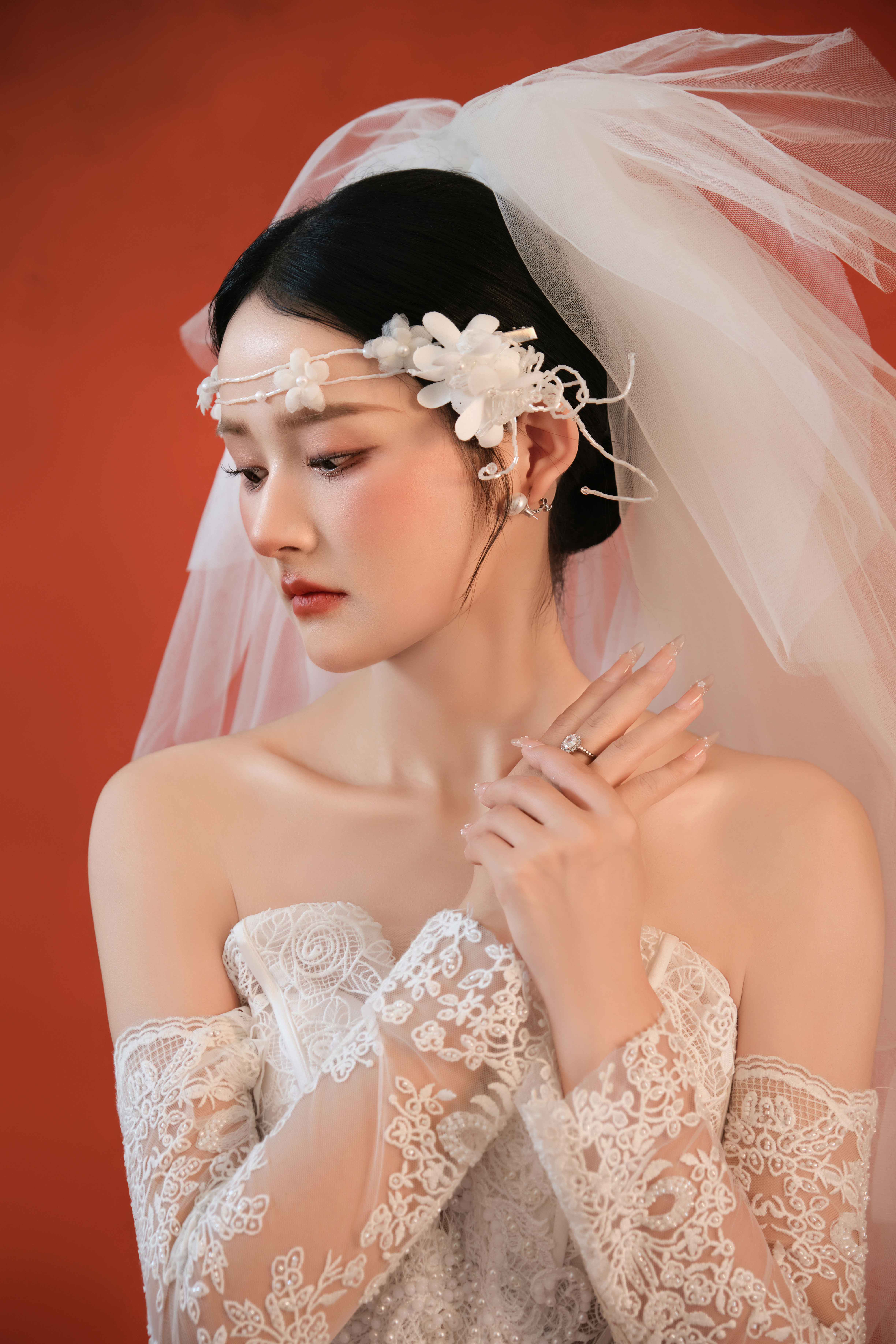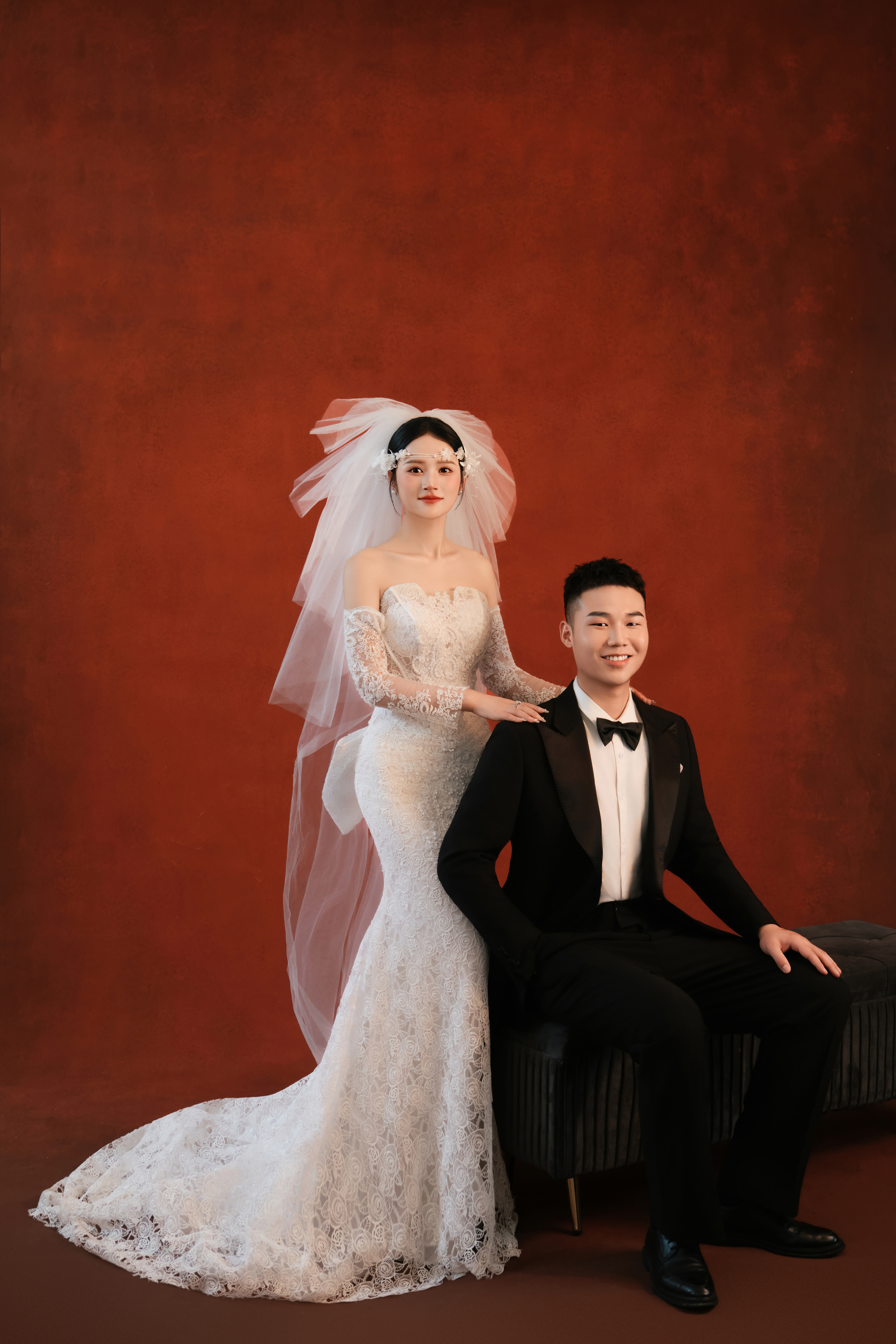 • - 浓郁而克制的肌理感红底背景 复古美学自带油画滤镜❤️ 连呼吸都沉浸在旧时光里 - 复古➕法式➕轻胶片 组合起来就是氛围感的代名词 真是高级又超级出片的风格#复古胶片婚纱照