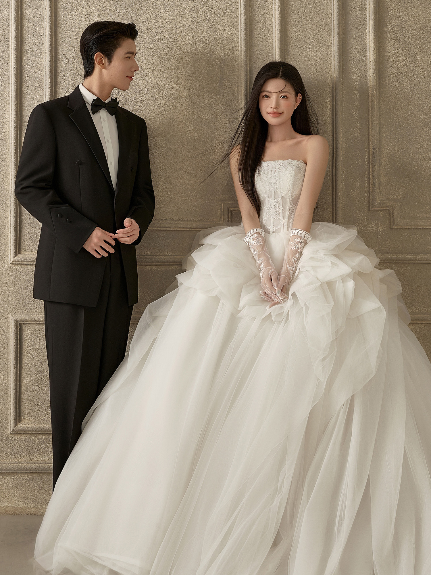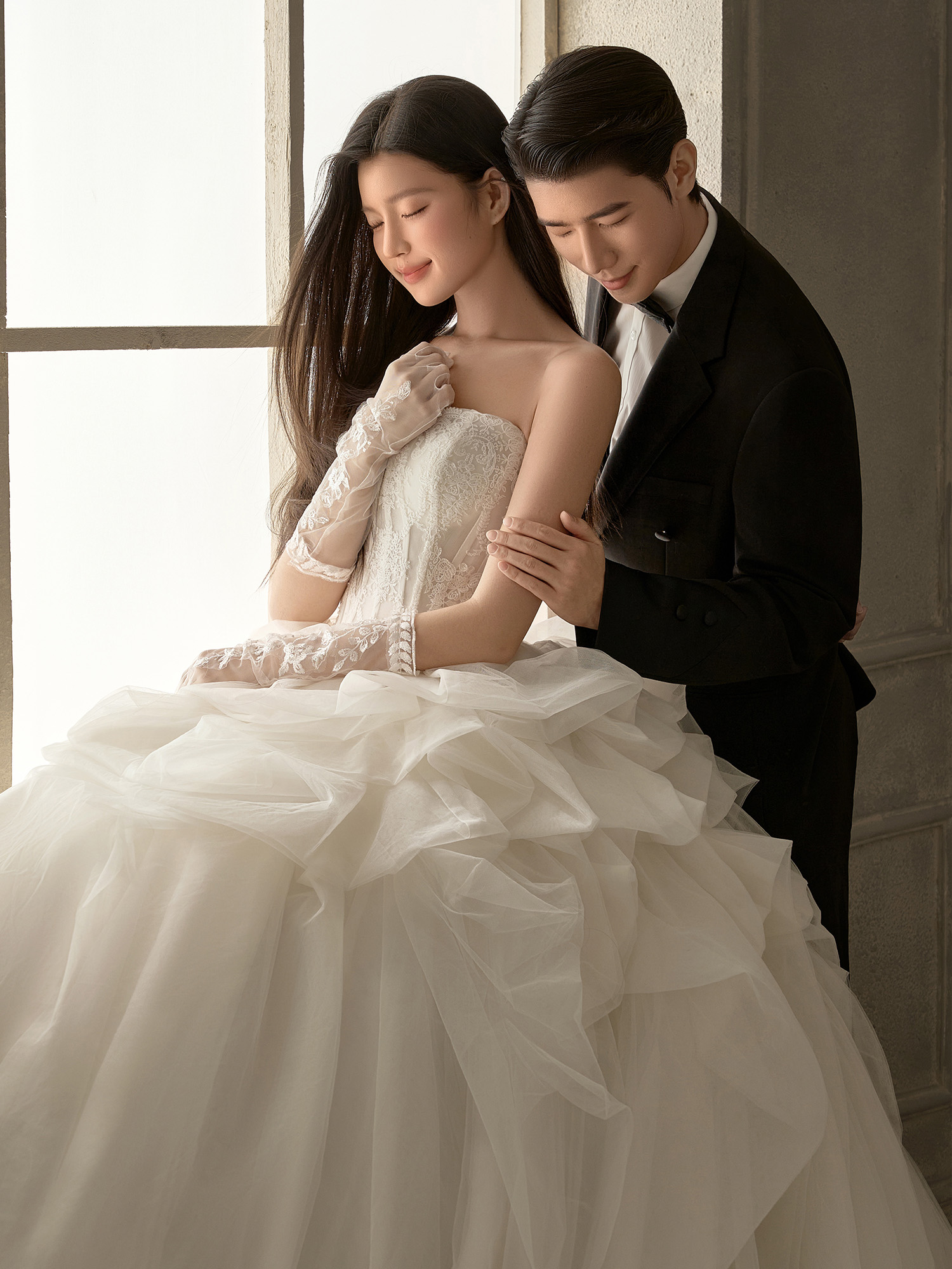 • #浪漫光影婚纱照 - 灰调光影作底色 他牵我手圈成心跳形状 白纱似云絮轻扬✨ 风掠过肩头 爱意在镜头前悄然盛放 · 无需繁复言语 一个眼神、一次相扣 便懂彼此余生的模样~ 快门定格所有温柔都成了具象 「我们」的爱情在这一瞬被时光珍藏📸
