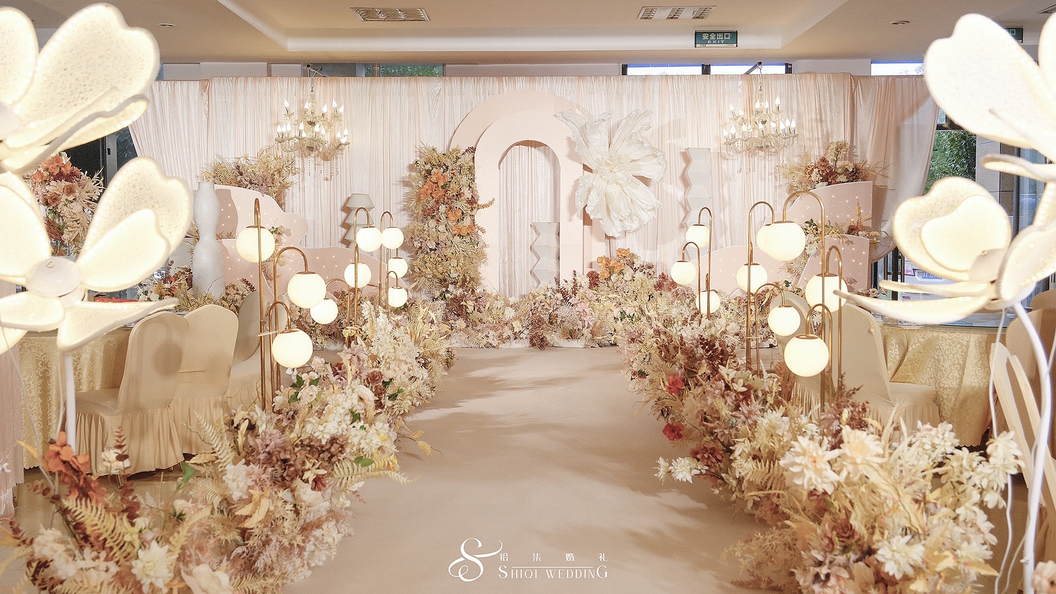 • #氛围感婚礼布置 氛围感小预算香槟色婚礼布置 策划:杭州拾柒婚礼