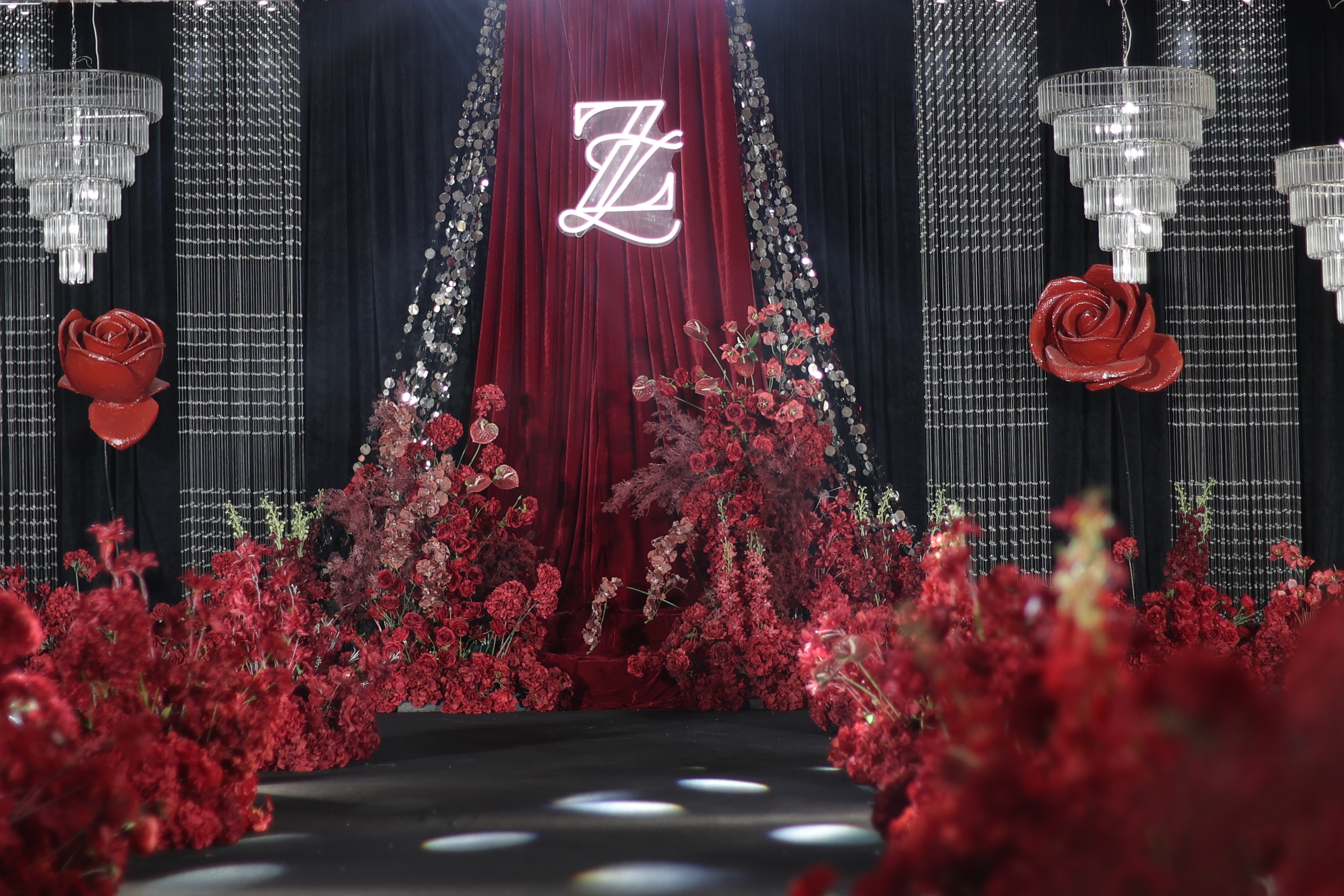 • #氛围感婚礼布置 红色系水晶氛围感婚礼布置
