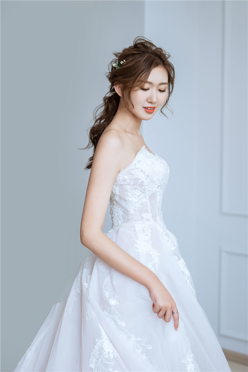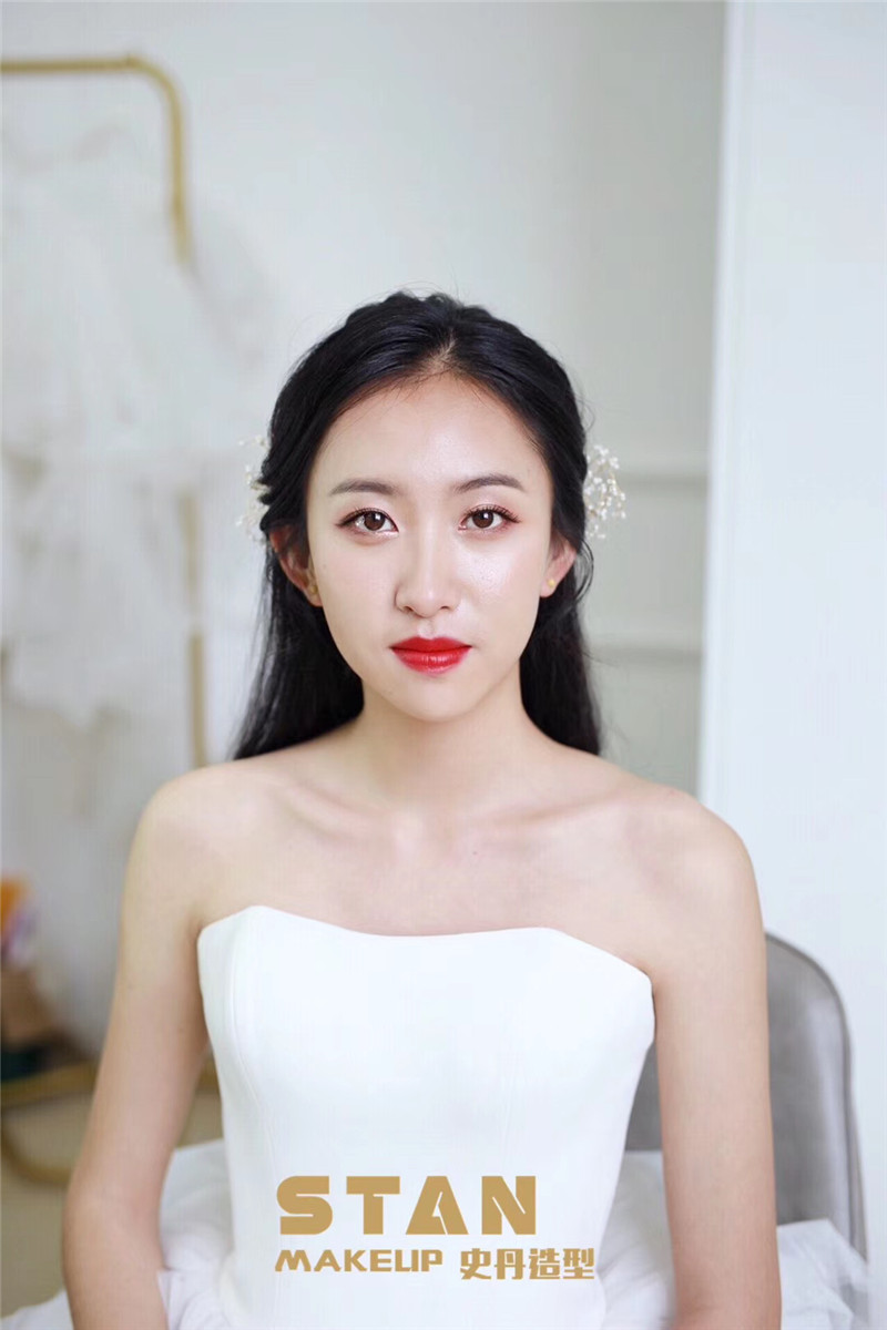• 这次试妆真是超级满意了,化妆老师太细致啦,特别是眼妆看起来眼睛特别大而且有神,在造型方面有时会有点纠结,但化妆老师会给出非常专业的建议。对了还有婚纱特别会推荐,推荐的款上身都好好看,这次纠结病也没犯。总之这次试妆试纱很愉快。