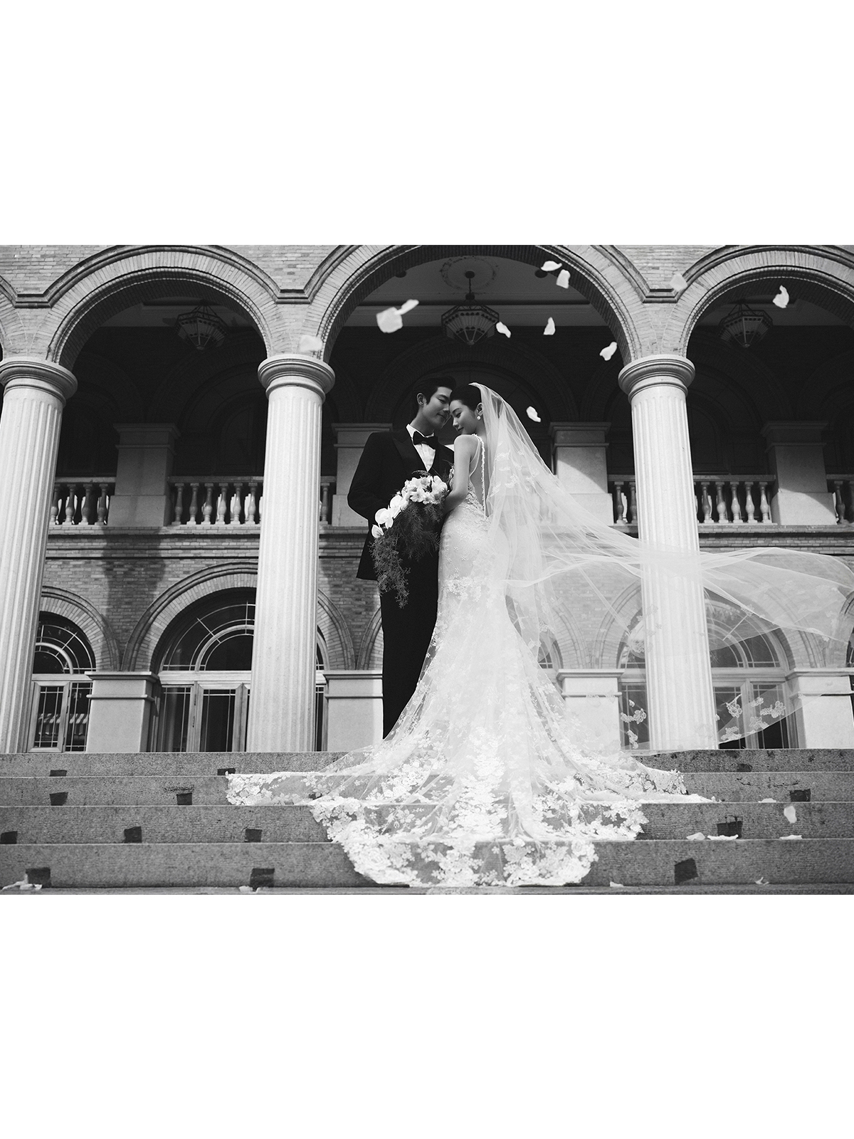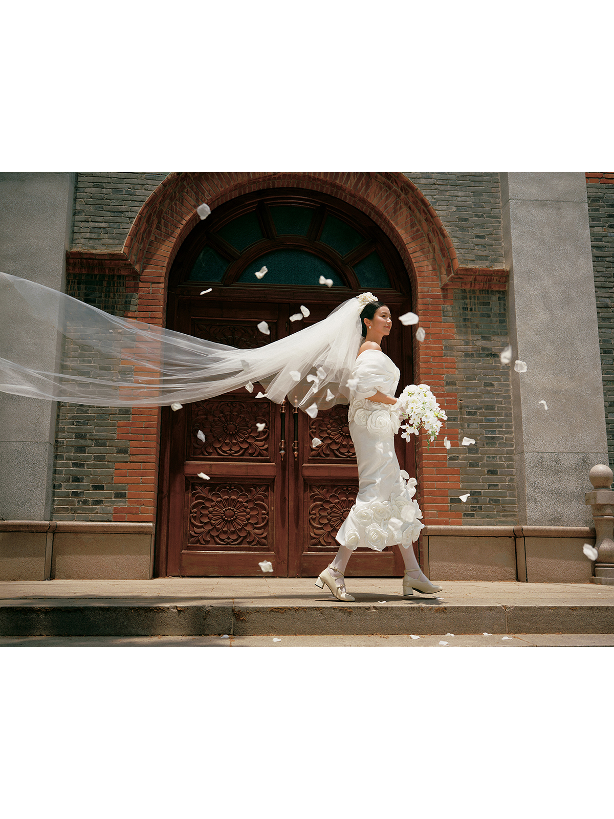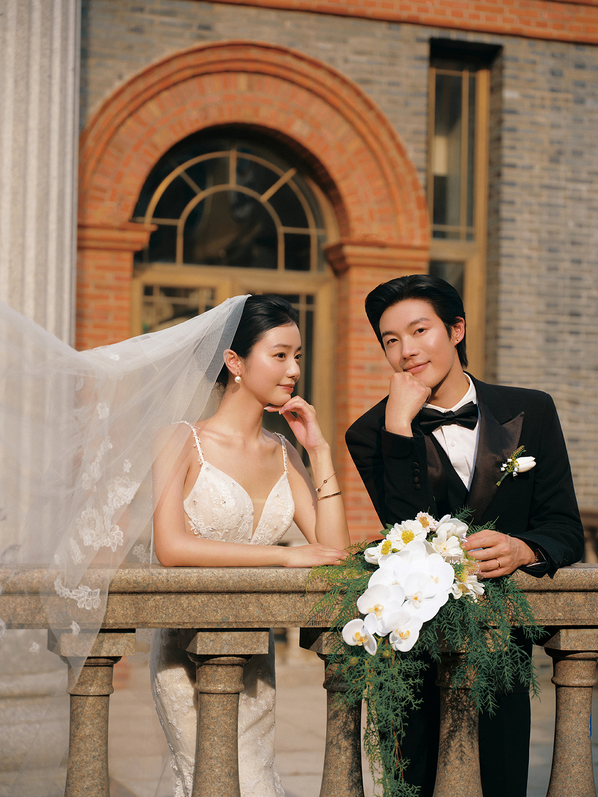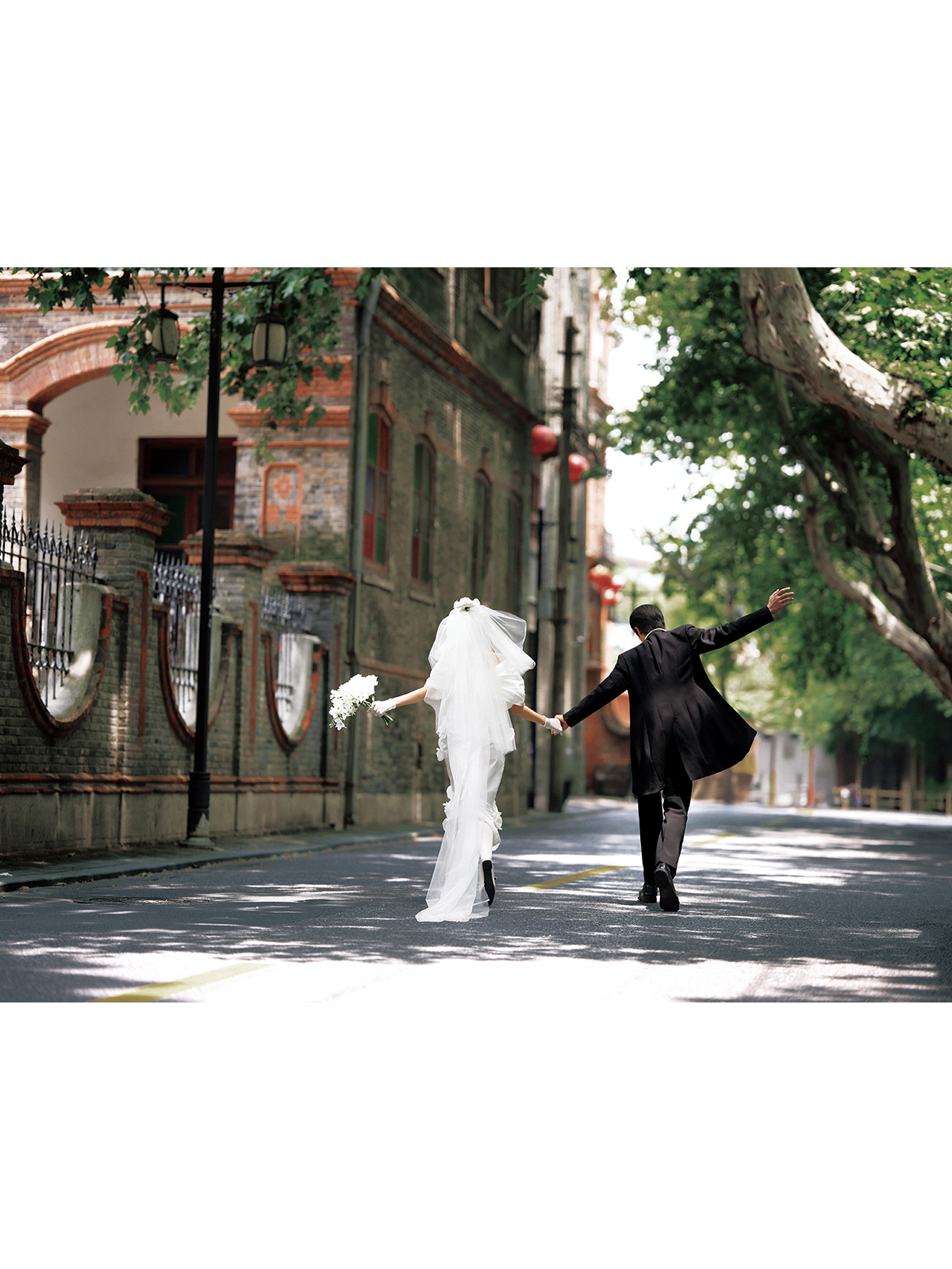 • 风格:复古|电影感|街拍|纪实|民国 - 与爱的人漫步在城市街头 自带一种浪漫主义的色彩和氛围 在民国复古的建筑旁 拍到了理想的街拍婚纱照 白纱上的立体花和手上的花束 风把裙摆吹成蓬松的云 这一刻比任何电影镜头都更让人心动#韩式街拍婚纱照