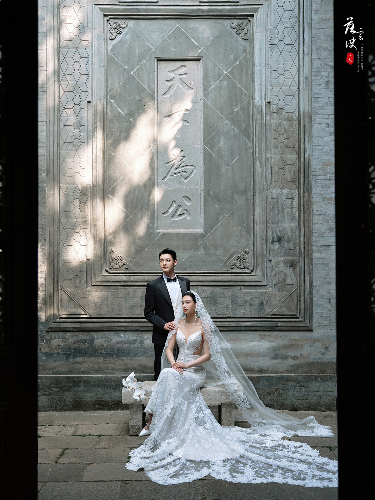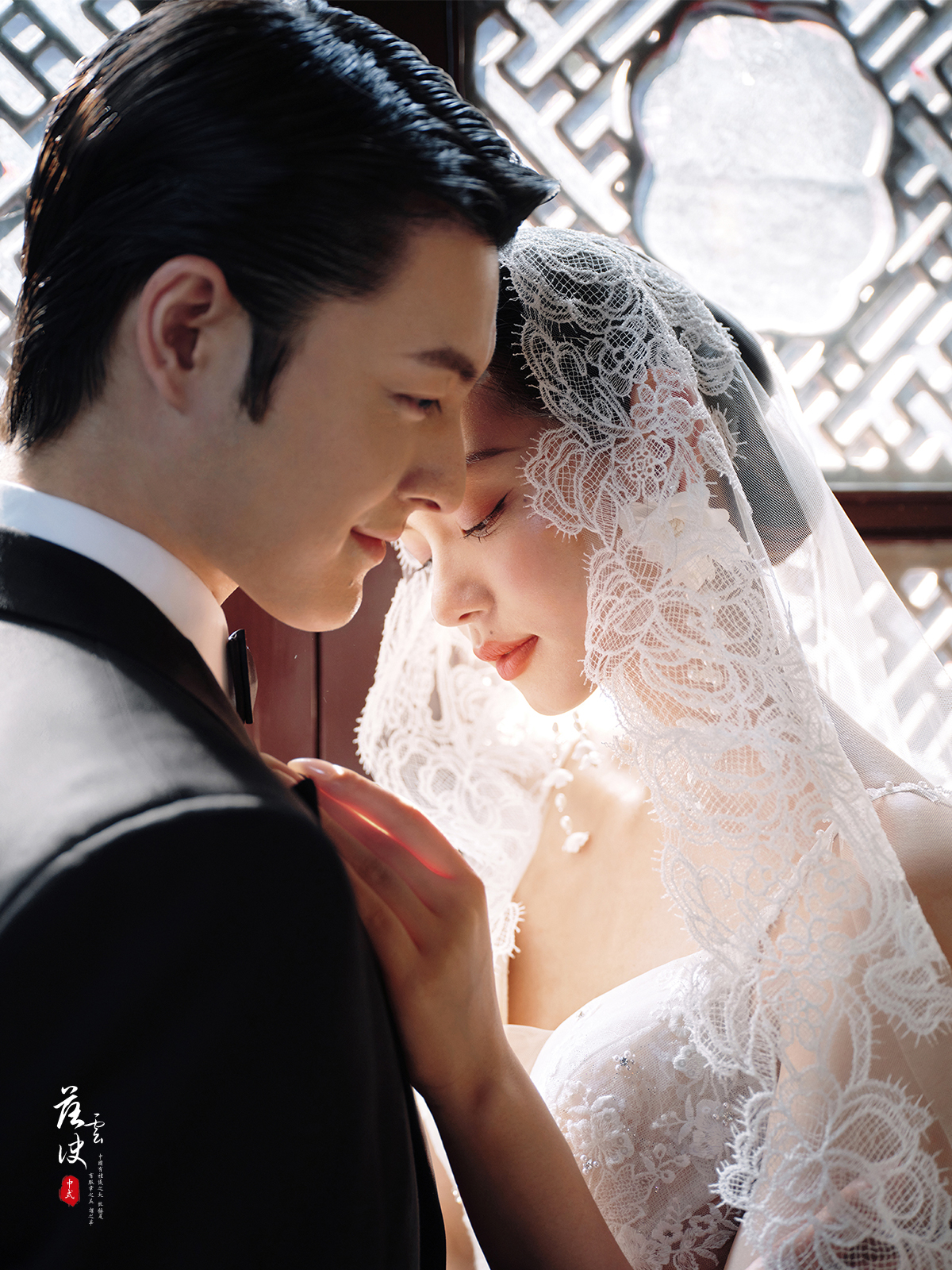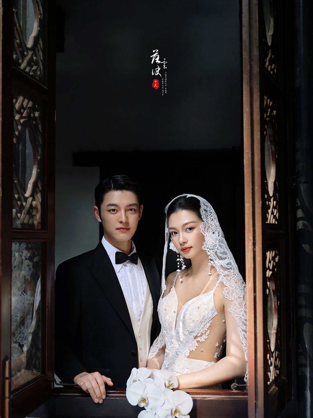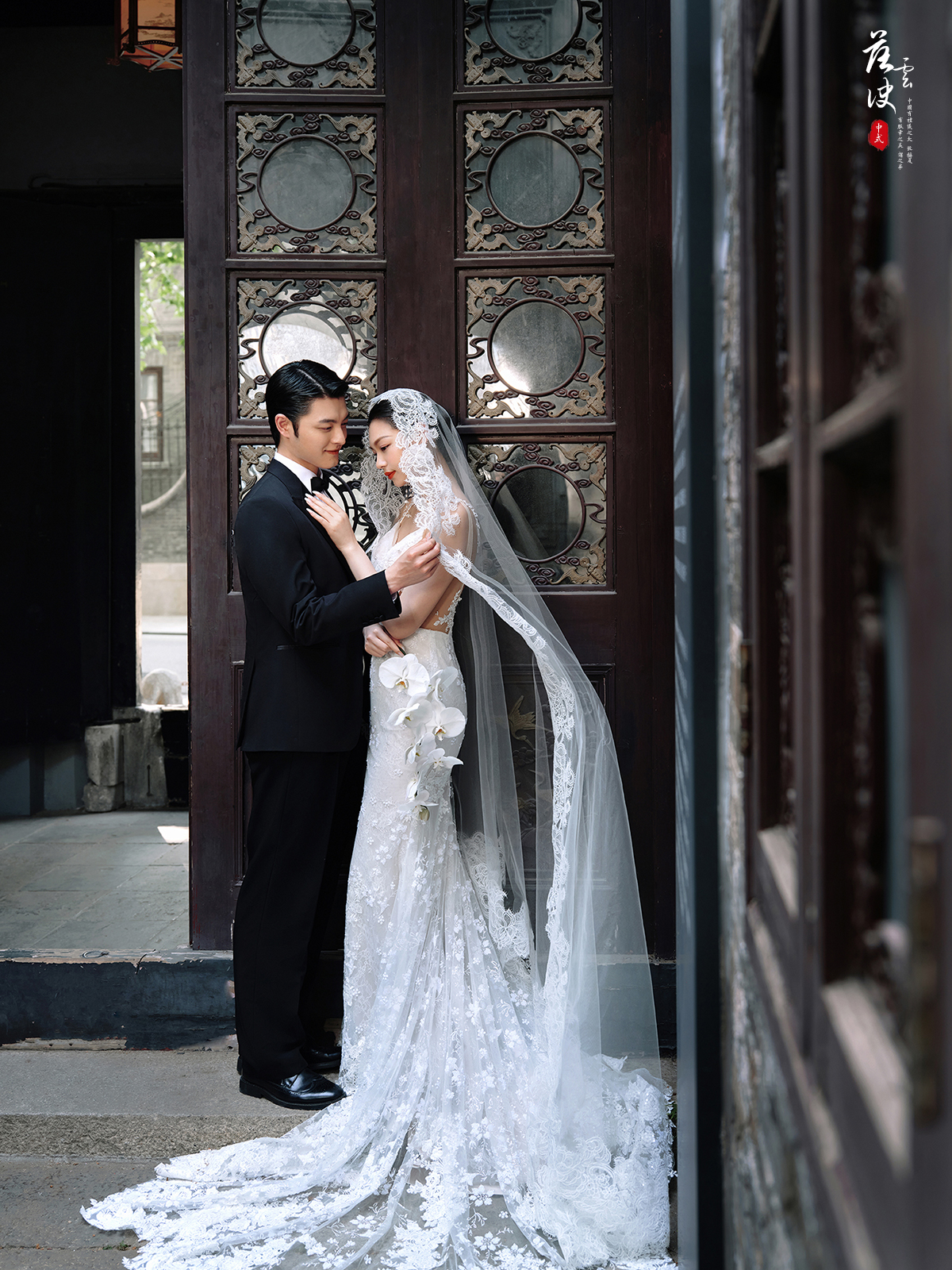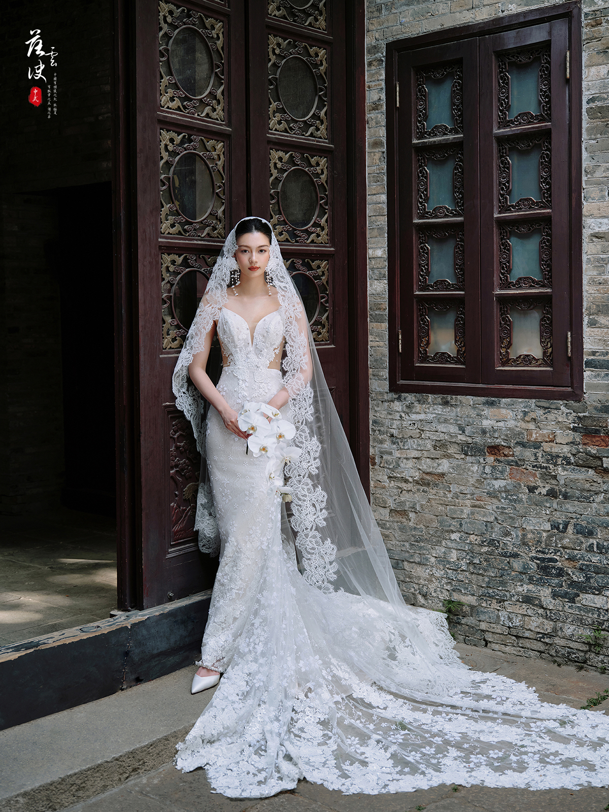 • 风格:中式|复古|园林|电影感|光影 - 中式窗棂的光影,落在鱼尾裙摆上✨ 是旧时光里的温柔,撞上了我们的爱情故事💌 木质雕花的纹路里,藏着岁月的回响 刺绣鱼尾搭配落地长纱 生动摇曳婀娜多姿 中式美学的浪漫在园林里盛开 宛如古典画卷般浪漫