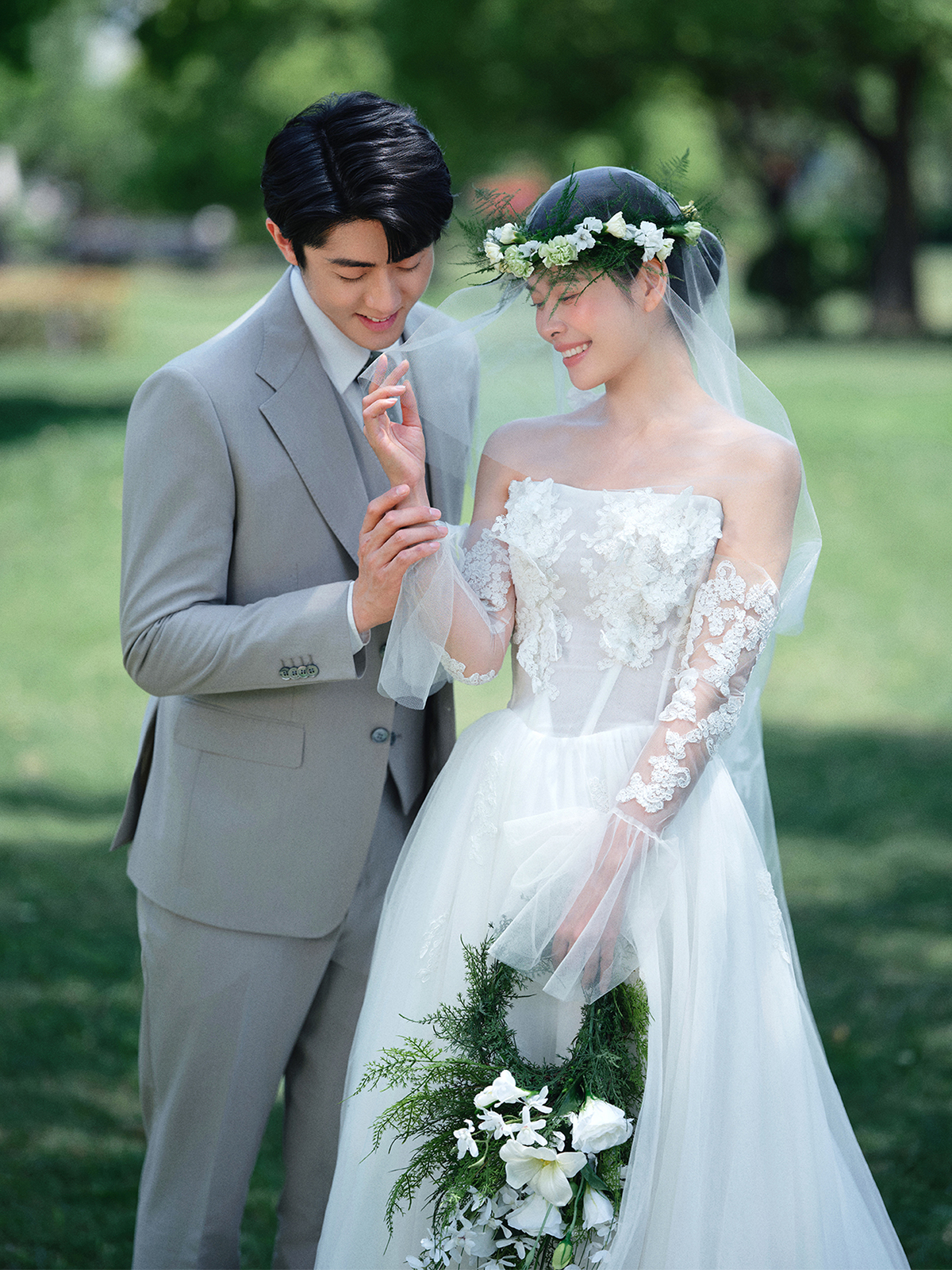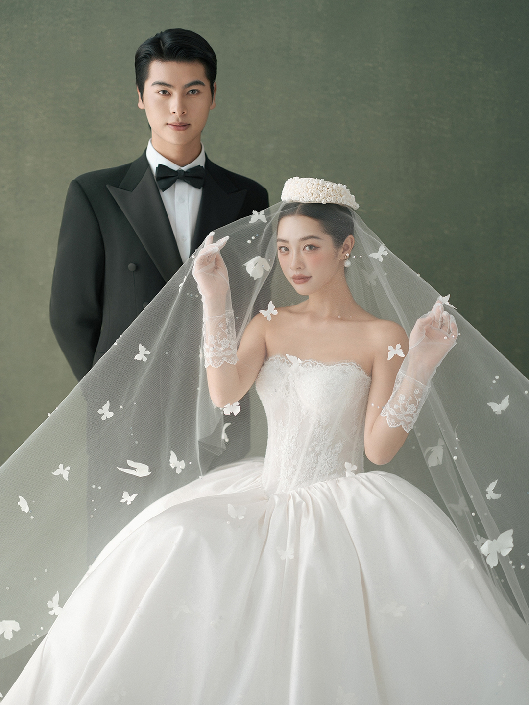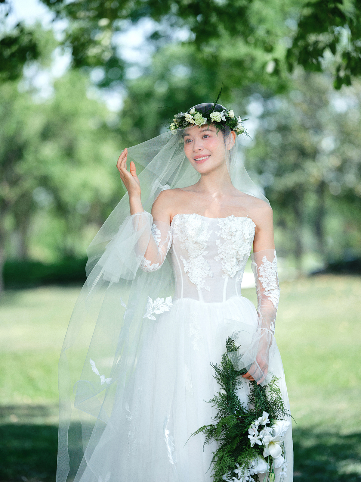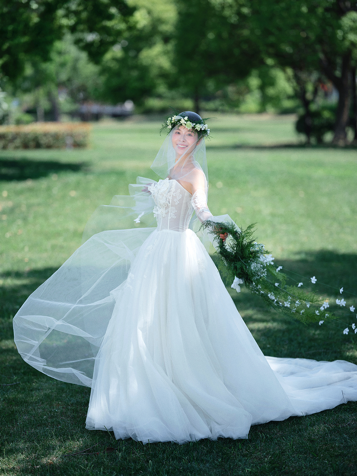 • 风格:森系|草坪|小清新|电影感|纪实 - 白纱裹着阳光,发间别着刚摘的小花 他笑着朝我走过来的时候 像把整个春天的温柔都带来了。 与清新草坪搭配出片率满满 氧气感又充满了少女的轻盈感 牵手转圈圈时,树影在身上晃成碎光的欢喜。 每一帧都是超浪漫的仪式感