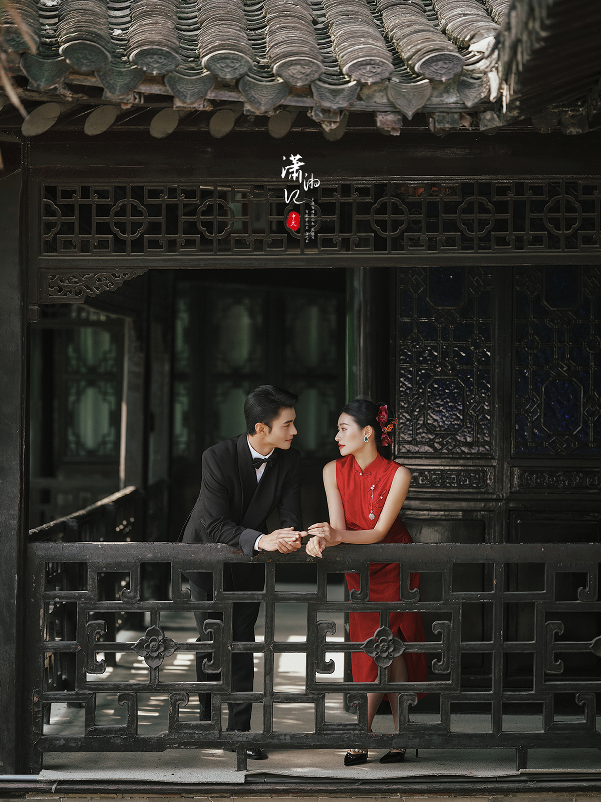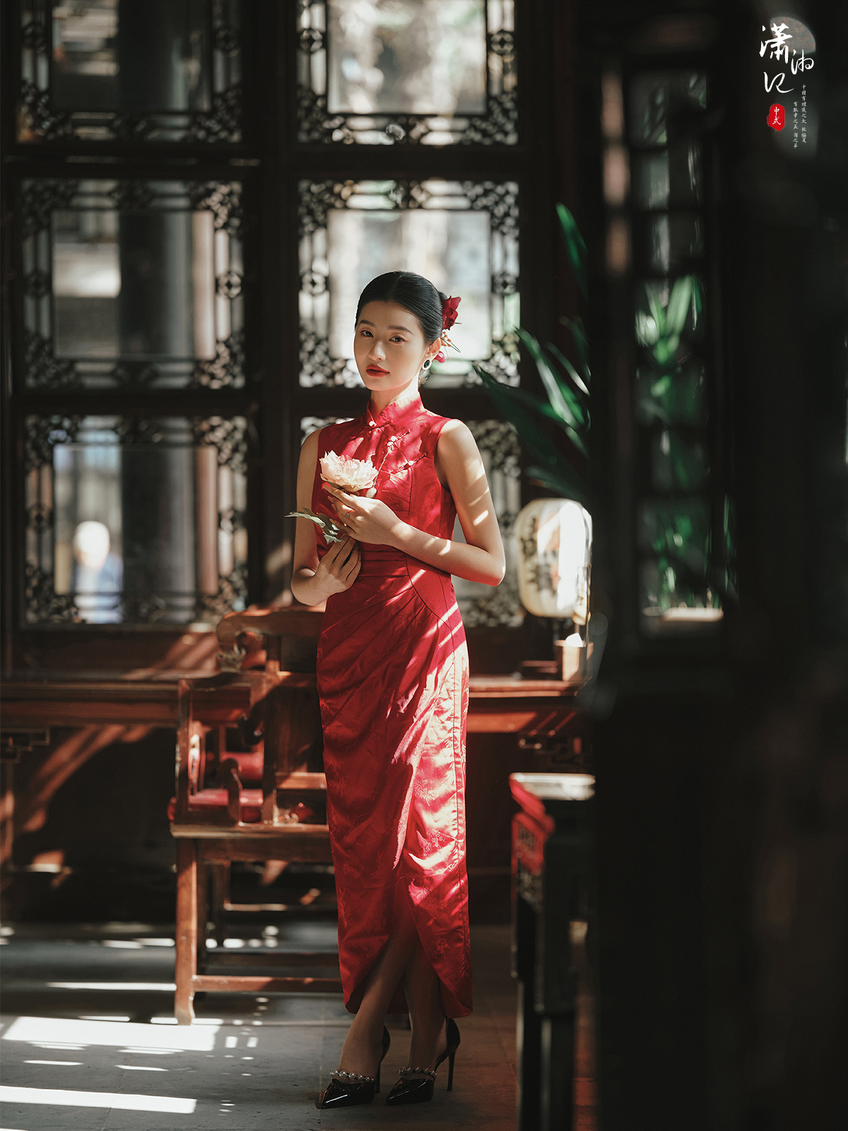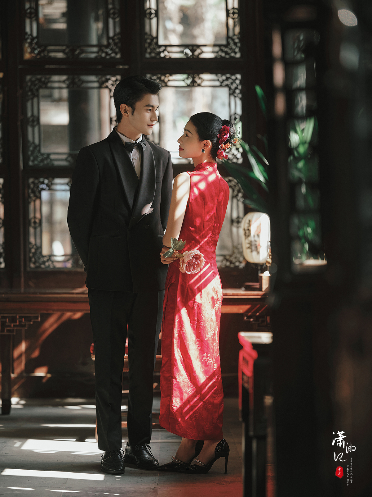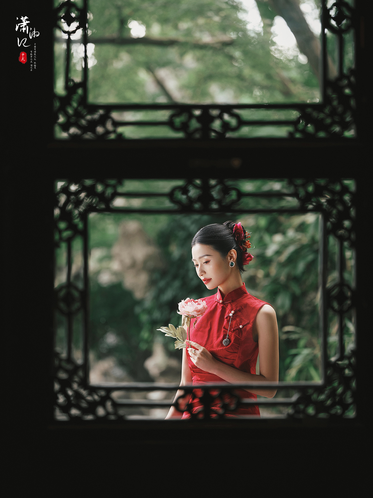 • 风格:中式|复古|园林|旗袍|电影感 - 花窗漏下的不是光影 是旧时光写给我们的情书 身着一袭红缎旗袍 朱樱红唇的端庄雅致 木质回廊的纹路里 都藏着中式园林的诗情画意 透过窗落在裙摆上的碎金 刻画精雕细琢的东方女性魅力#美出圈的新中式婚纱照
