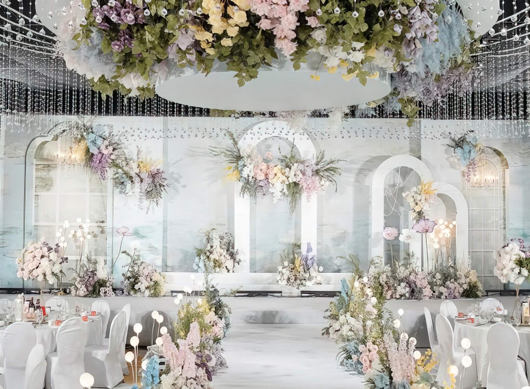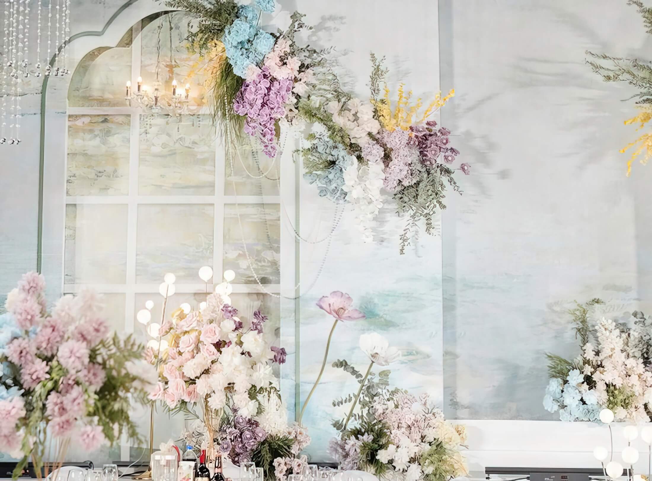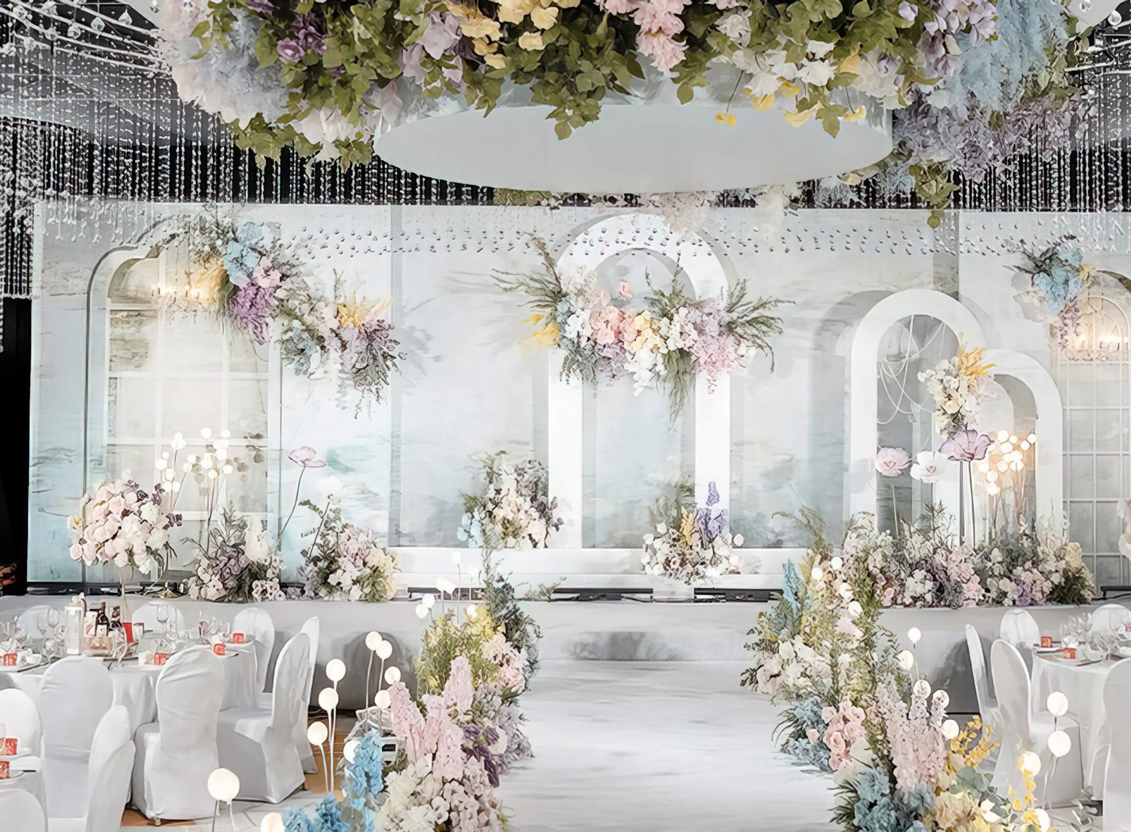• 色系:蓝白色系 风格:清澈、干净、温柔、高级 在花艺的搭配下 整场婚礼颜色更加纯洁通透柔和 自带滤镜的蓝白静谧感 —— 当静谧沉稳的蓝色 遇上纯洁素雅的白色 呈现出一场高级浪漫的蓝白色系婚礼🎎#梦幻公主风婚礼