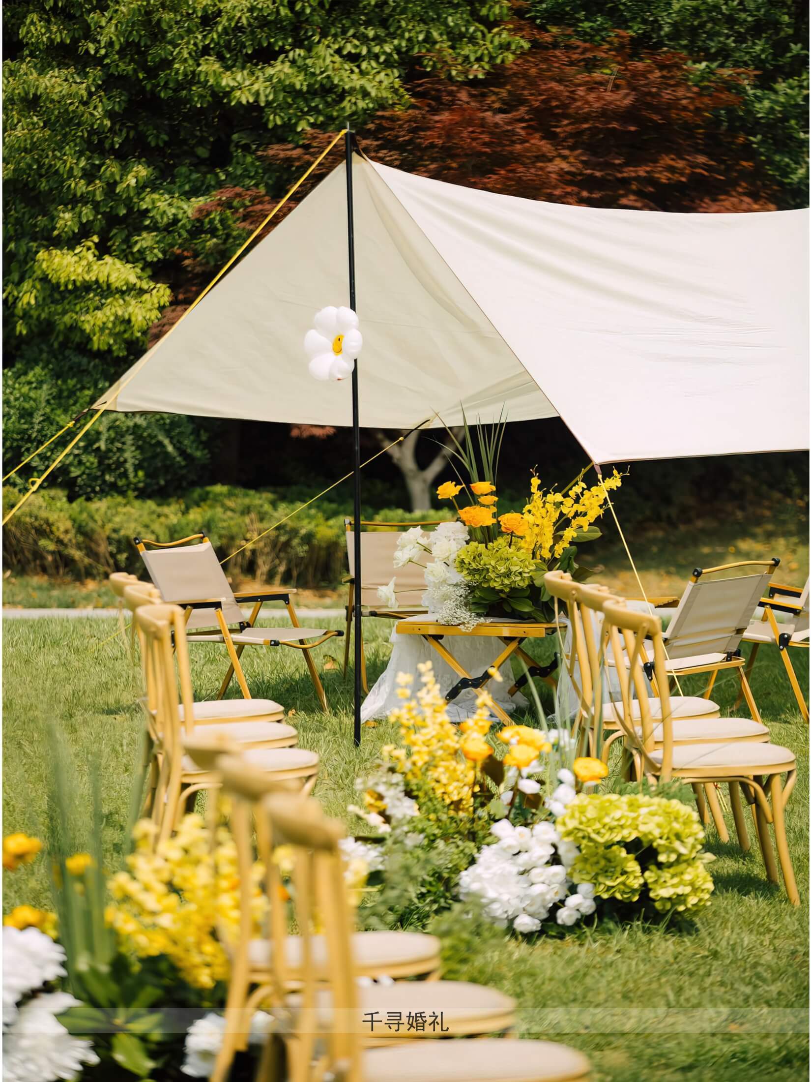 • 阳光是草坪婚礼最美的滤镜, 满屏多巴胺配色像打翻了调色盘, 自然+童话双buff叠满🤩