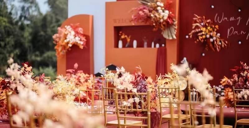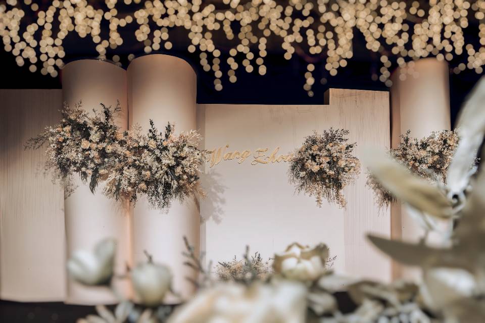 • 沉醉香槟色的温柔旖旎🍾️🍾️🍾️ 于朝暮 在柔软的时间里编织属于我们的梦 结出一粒粒闪耀的珍珠 这是一次打破韩式婚礼常规配色的尝试 告别小清新的白绿配色 以高雅的香槟色给你无限温柔布艺打底,自然展现的布艺褶皱 不仅仅只是遥不可及的优雅,更有人间烟火气的温暖#氛围感婚礼