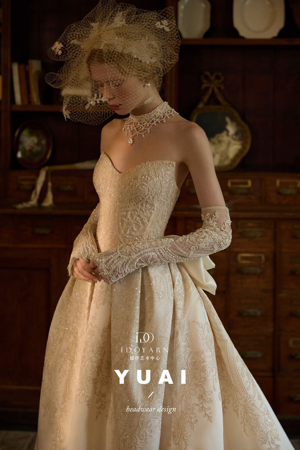 • 谁懂啊!YuAi这抹奶杏色,是法式公主的婚纱本命👑 被YuAi的新婚纱美到失语!这组图往我首页一刷直接挪不开眼✨ 奶杏色缎面裹满细碎的蕾丝刺绣,暖光里像揉了把星光在裙身——抹胸+高领珍珠颈链又纯又欲,长手套的钉珠和头纱网纱的小花纹严丝合缝地呼应,背后那只软乎乎的蝴蝶结,直接把法式复古的甜拽到了极😀致! 谁穿谁是从19世纪油画里走出来的贵族少女吧?YuAi这波“beadwear design”的细节真的杀疯了,每颗钉珠都在说“优雅是刻在骨子里的”💐 #2025婚纱风格大盘点