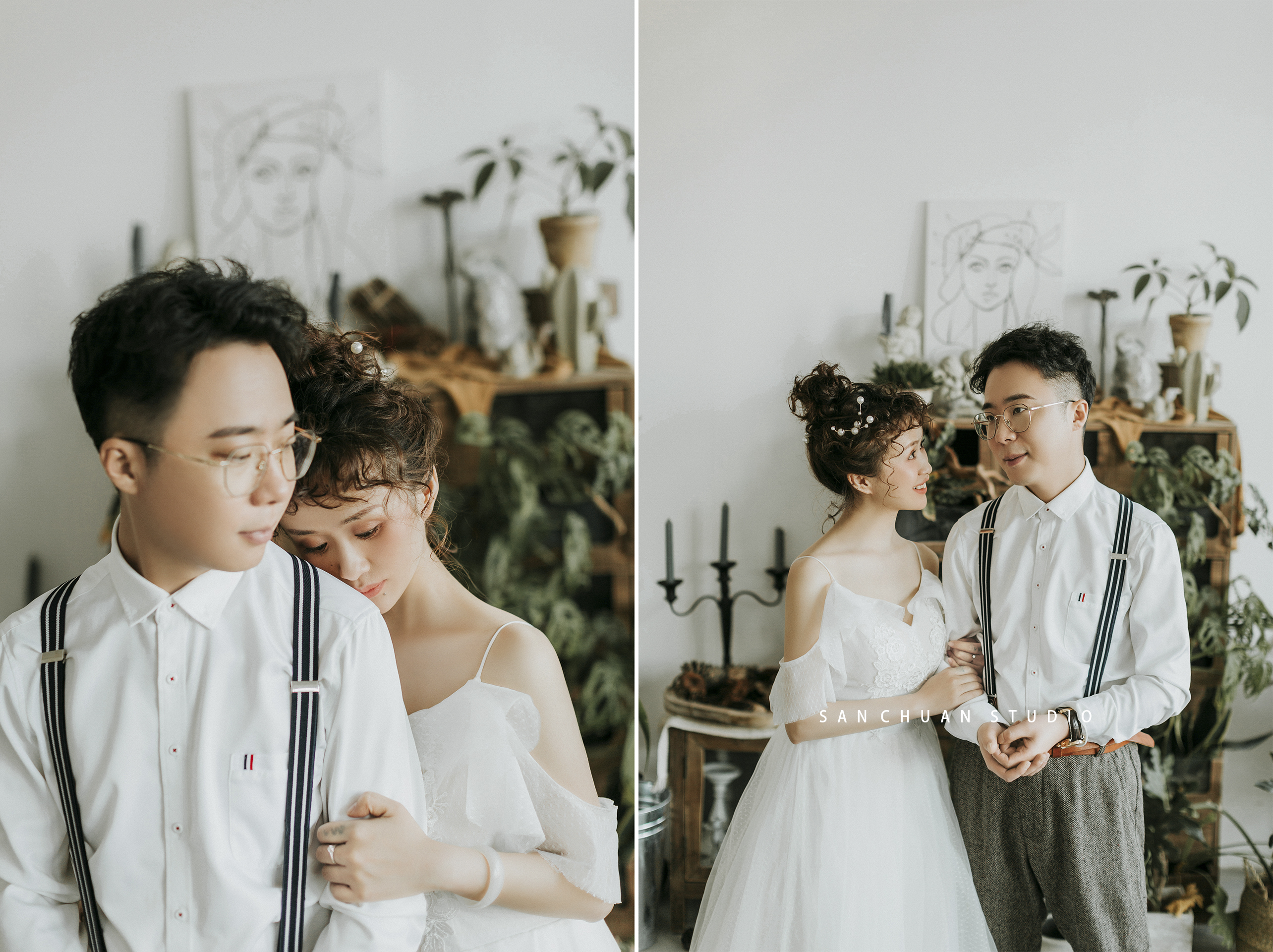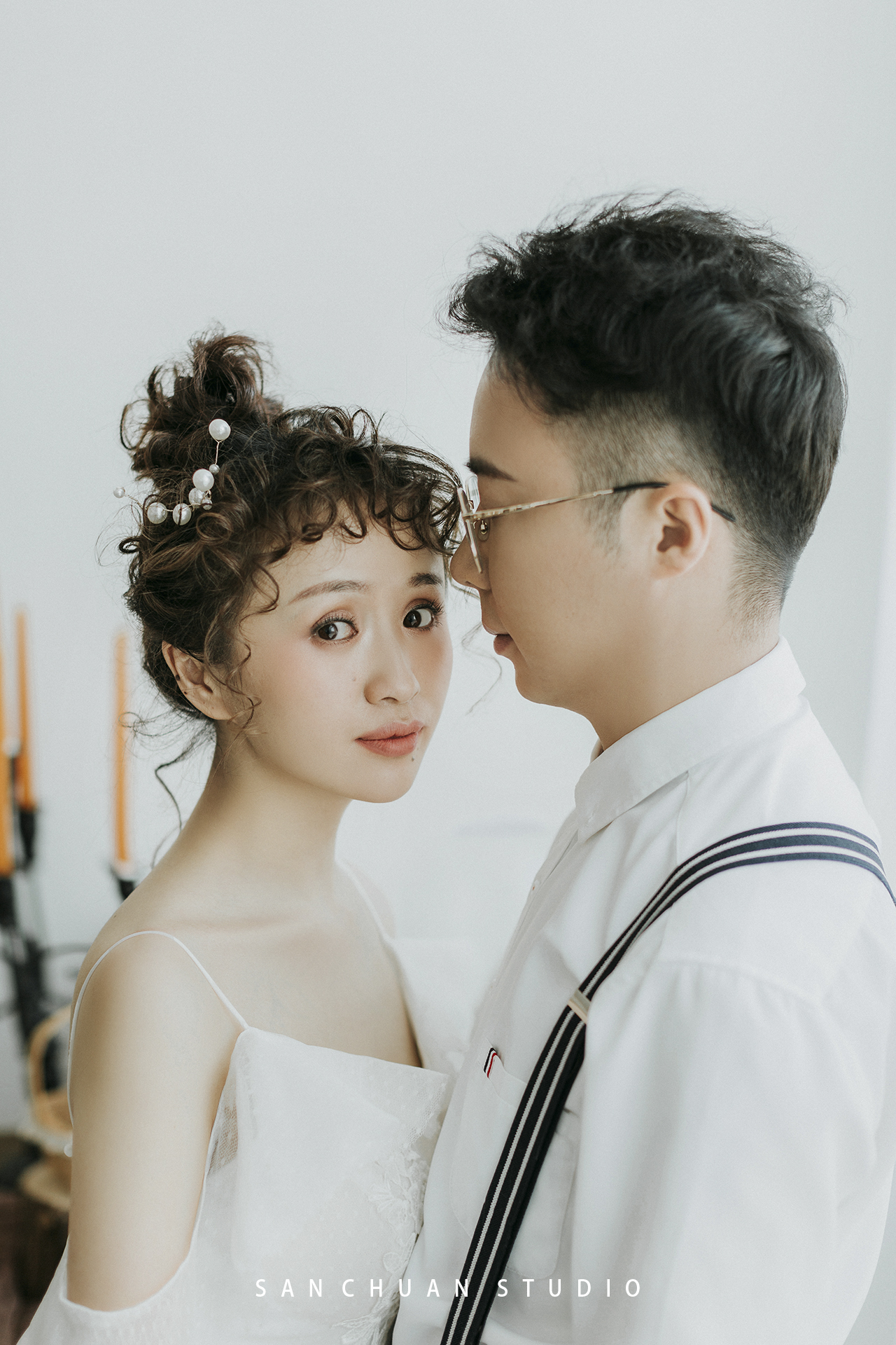 • 拍婚纱照之前记得买这些: ①需要自购的创意道具比如人形公仔、一些有趣的服饰(和服、武侠服饰) ② 情侣套装、轻婚纱 ③ 小白鞋、衬衫 提前准备自己喜欢的小物,婚纱照会加分哦!