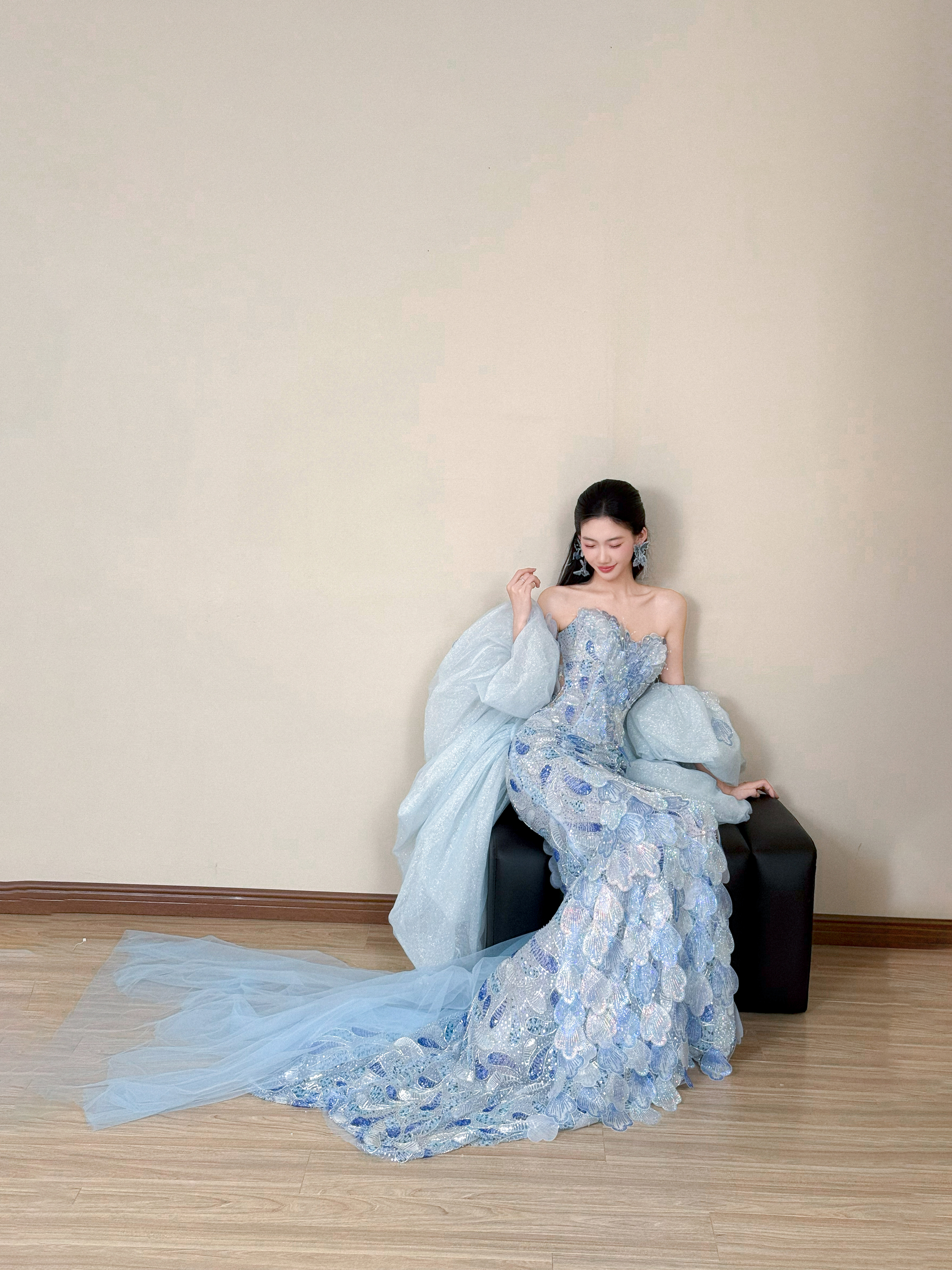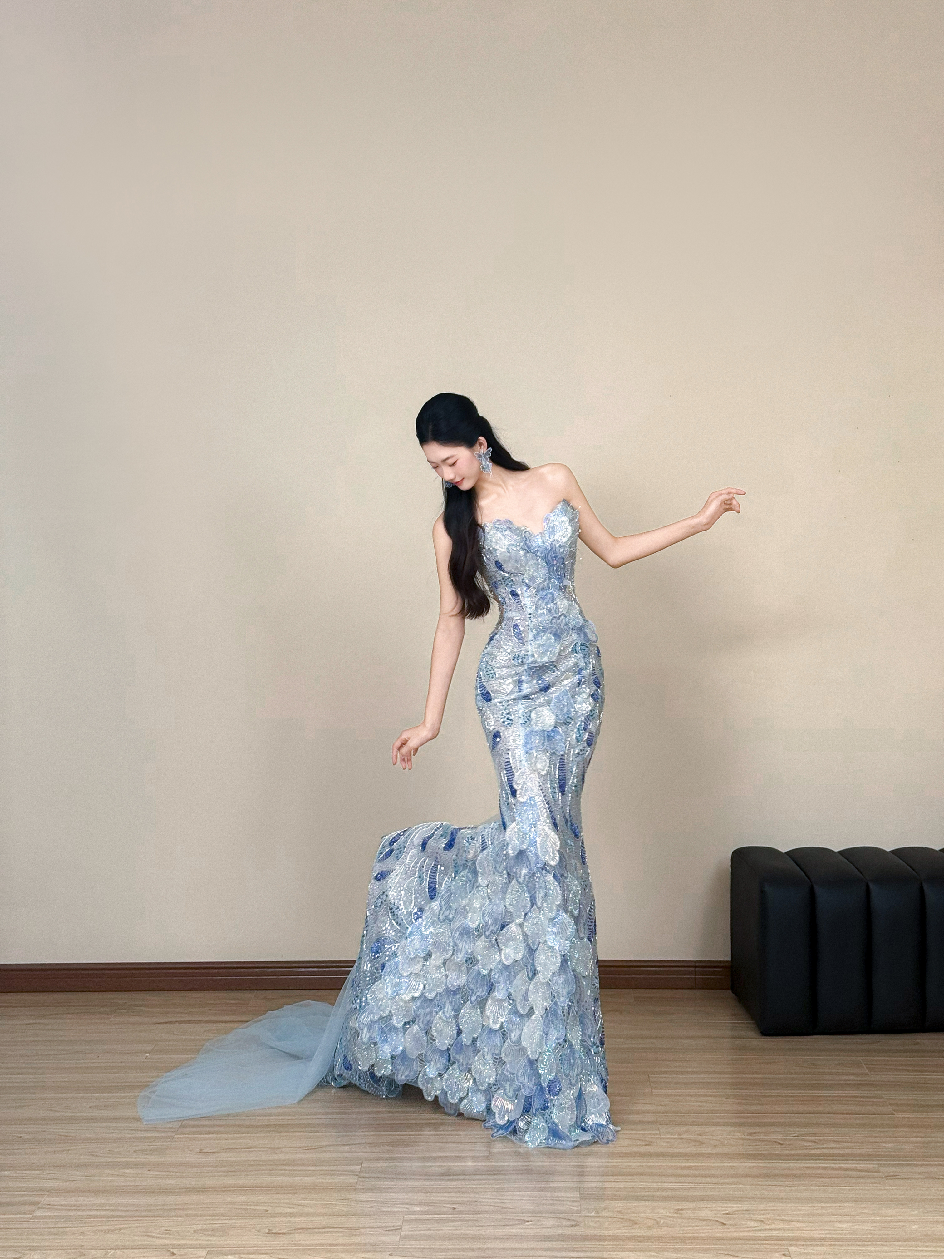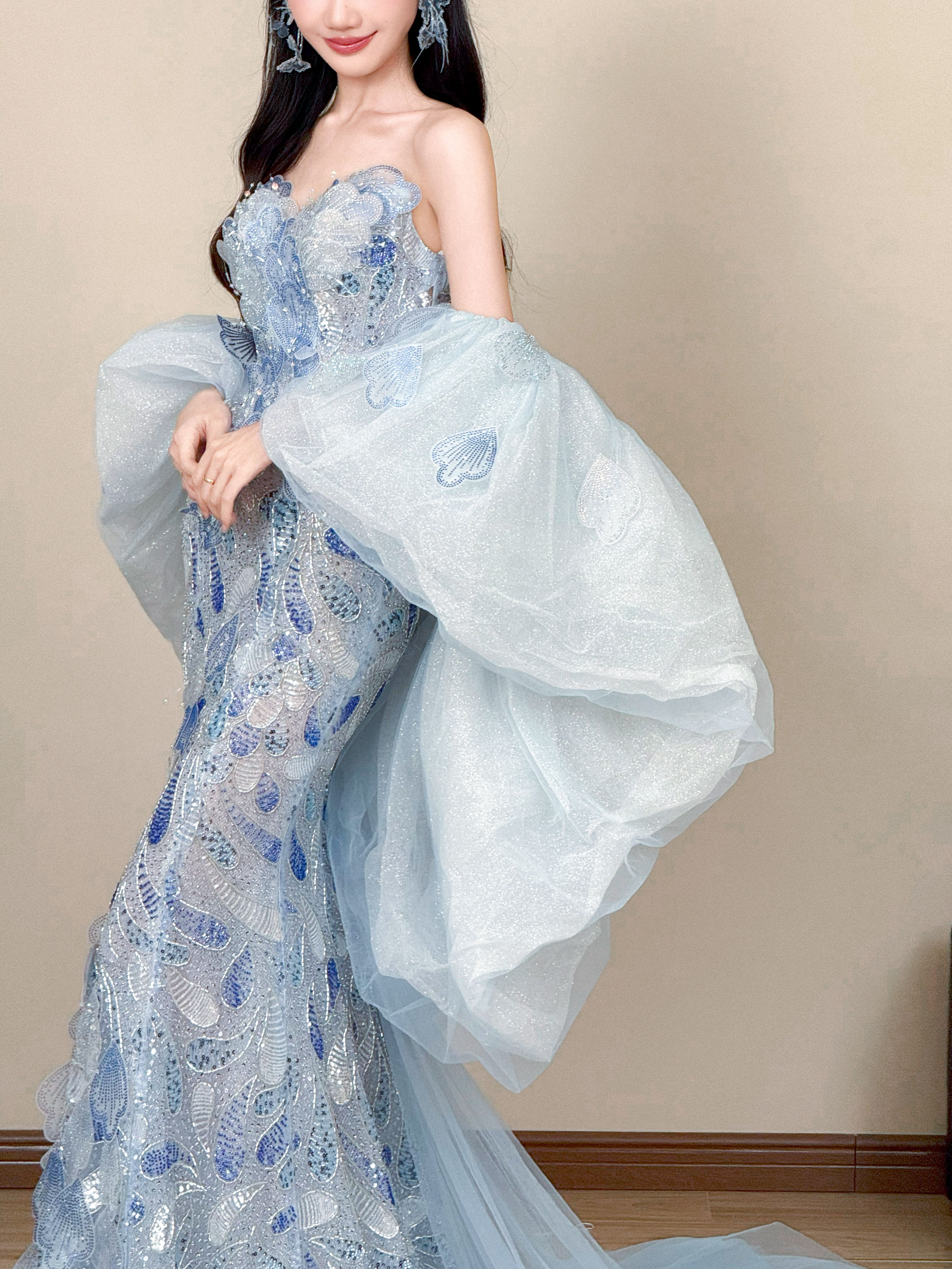 • Kiss March【雾海铃兰】 裙摆像被施了魔法一样 月光下的海浪精灵 一条会魔法的裙子#永远心动的绝美敬酒服