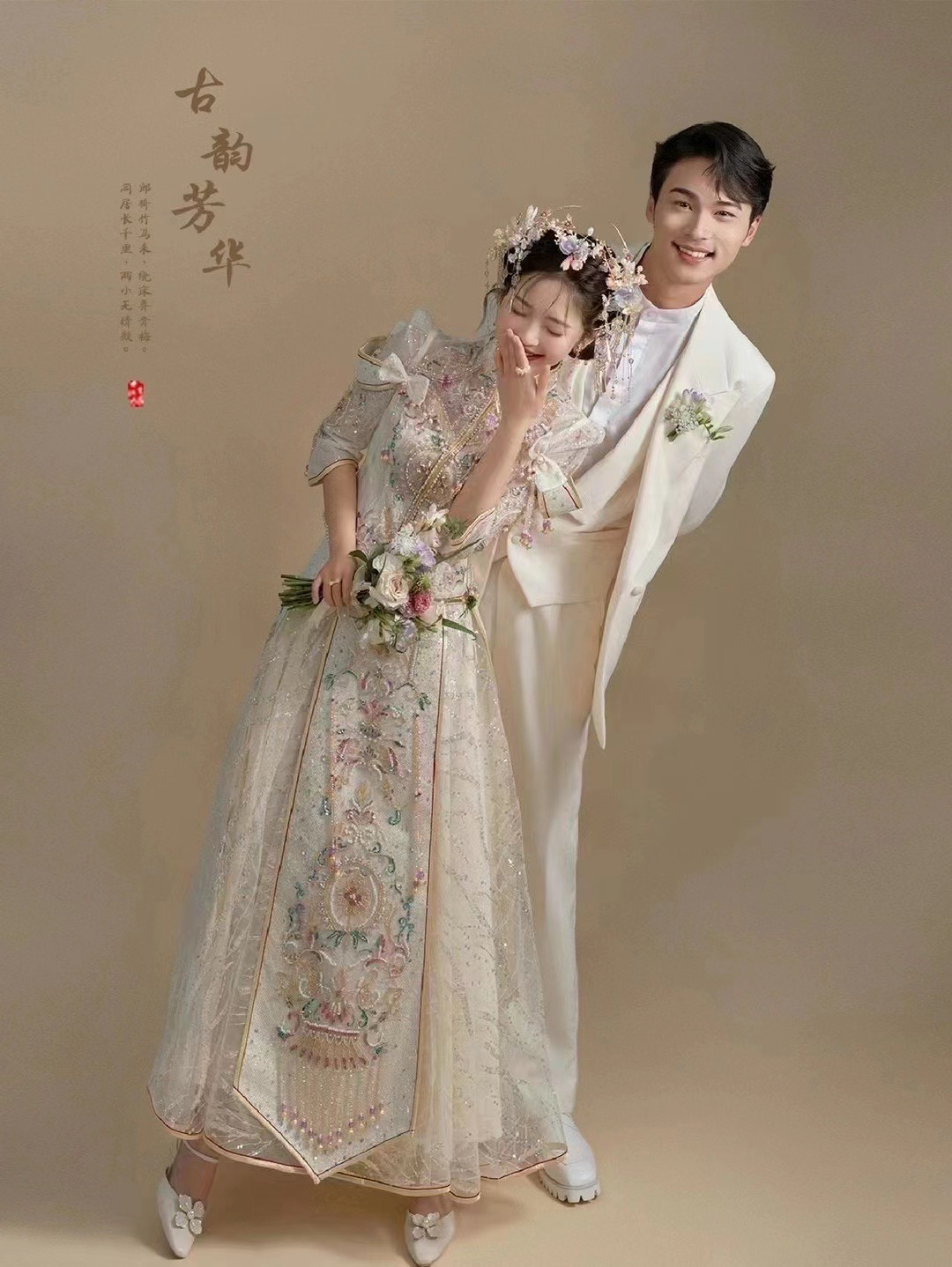 • 新中式马来褂设计,特别的花纹刺绣配合现代化工艺 每一处都是重手工打造 配上中式特有的发簪 清新灵动又不失古典庄重 大气磅礴 富贵荣华#新中式旗袍敬酒服