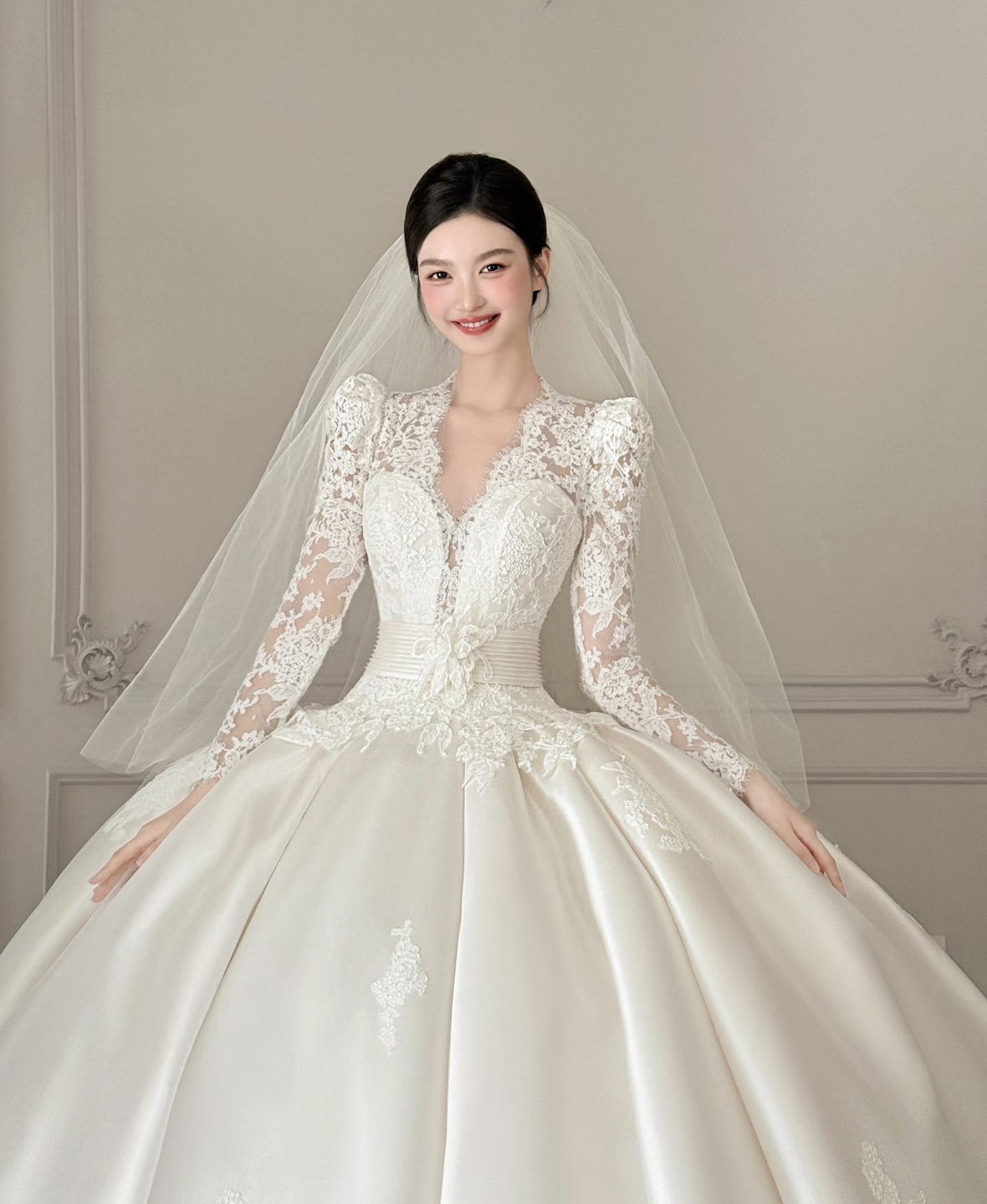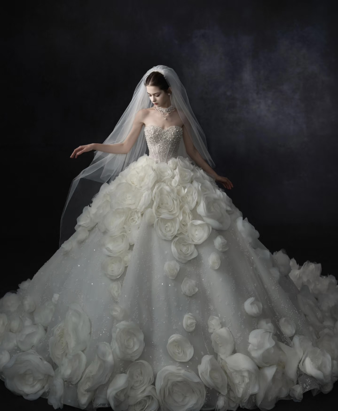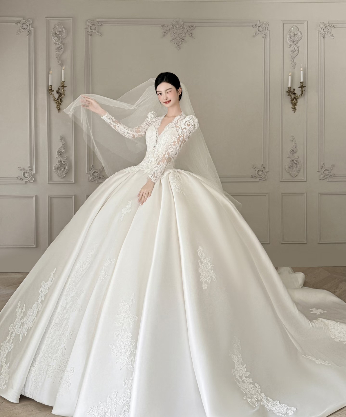 • #一眼心动的公主嫁衣 缎面是一种非常有质感的面料,表面光滑,光泽柔和,给人一种高级、典雅的感觉。就好像是一块细腻的丝绸,摸起来顺滑又舒服。比如像真丝缎,垂坠感特别好,穿在身上自然流畅。