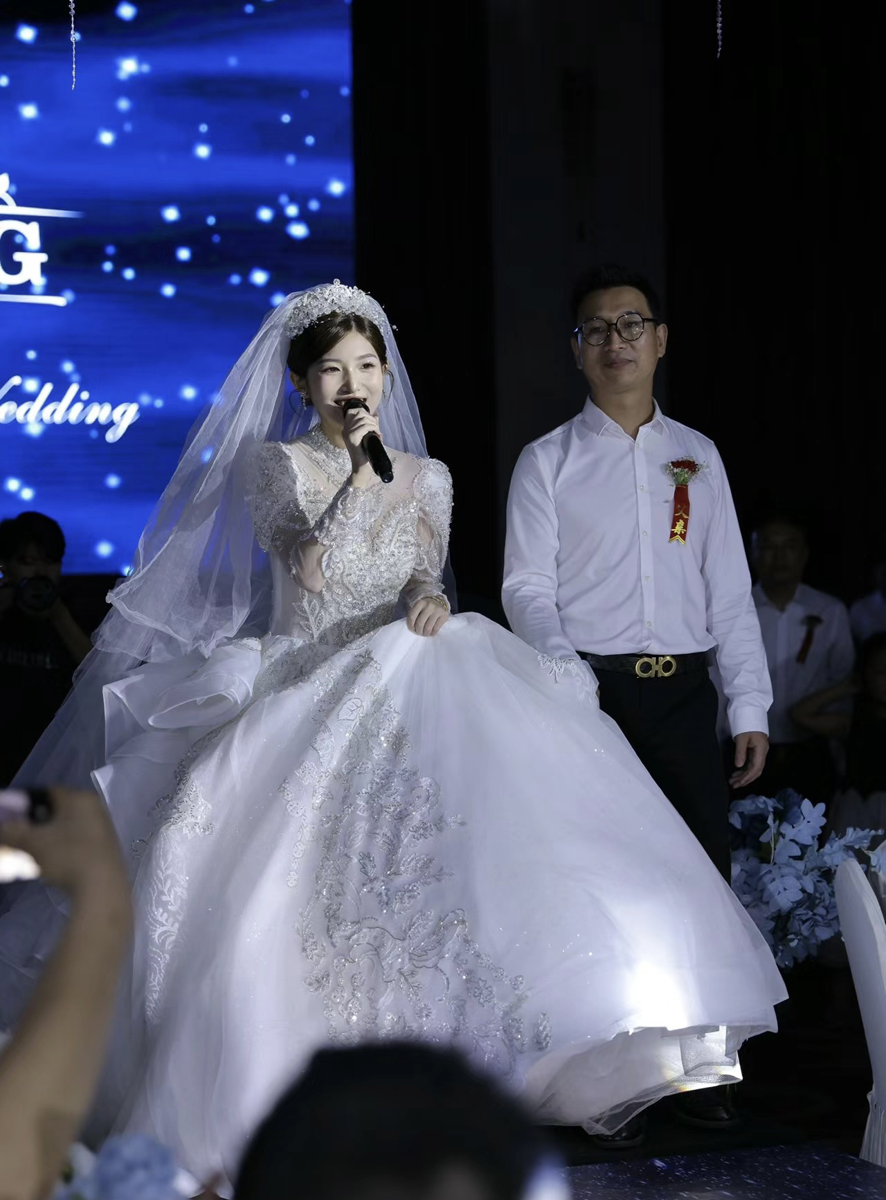• 太完美了,整个流程时间卡的很好,丝毫没有因为化妆换纱耽误时间,婚纱也好好看,站在舞台尽头的时候一堆人围着我拍照,拍的我都不好意思了,老公家亲戚说都没见过这么闪的婚纱,非常长面,感受很完美!确实性价比好,朋友推荐去的[强]