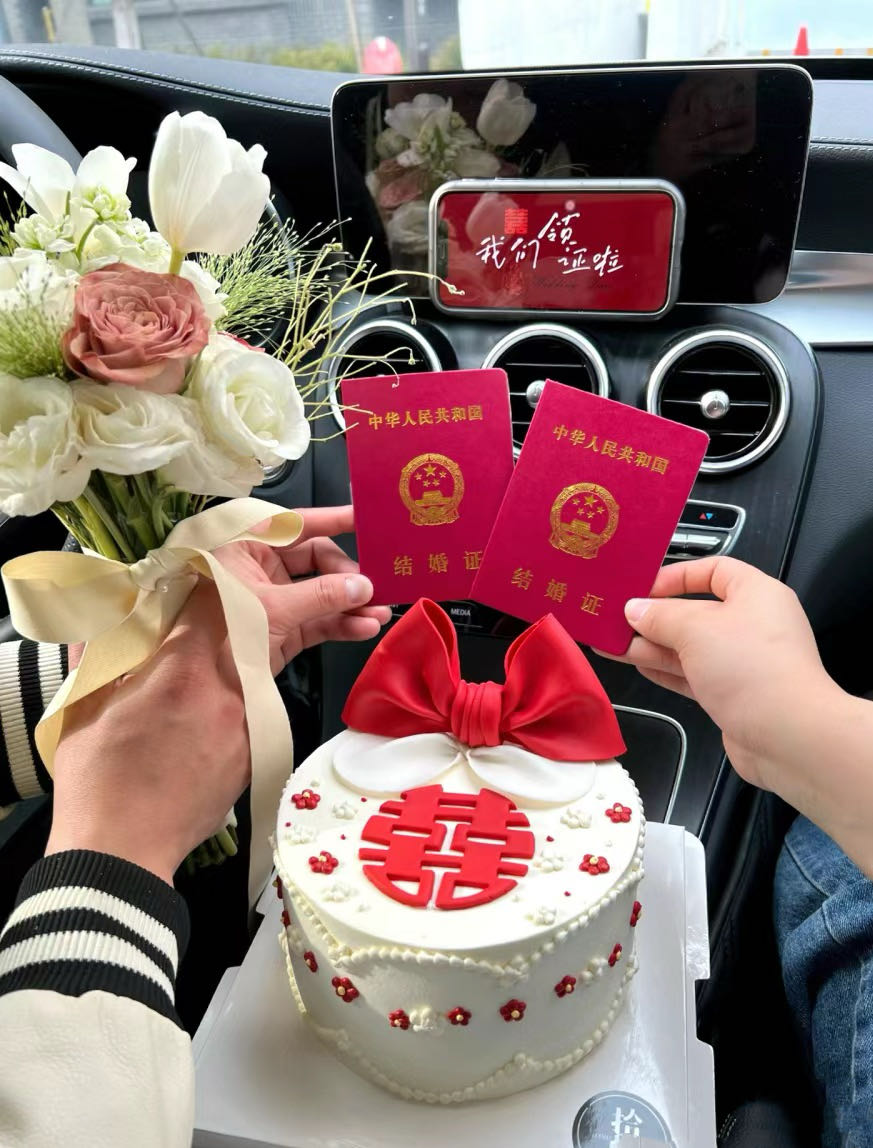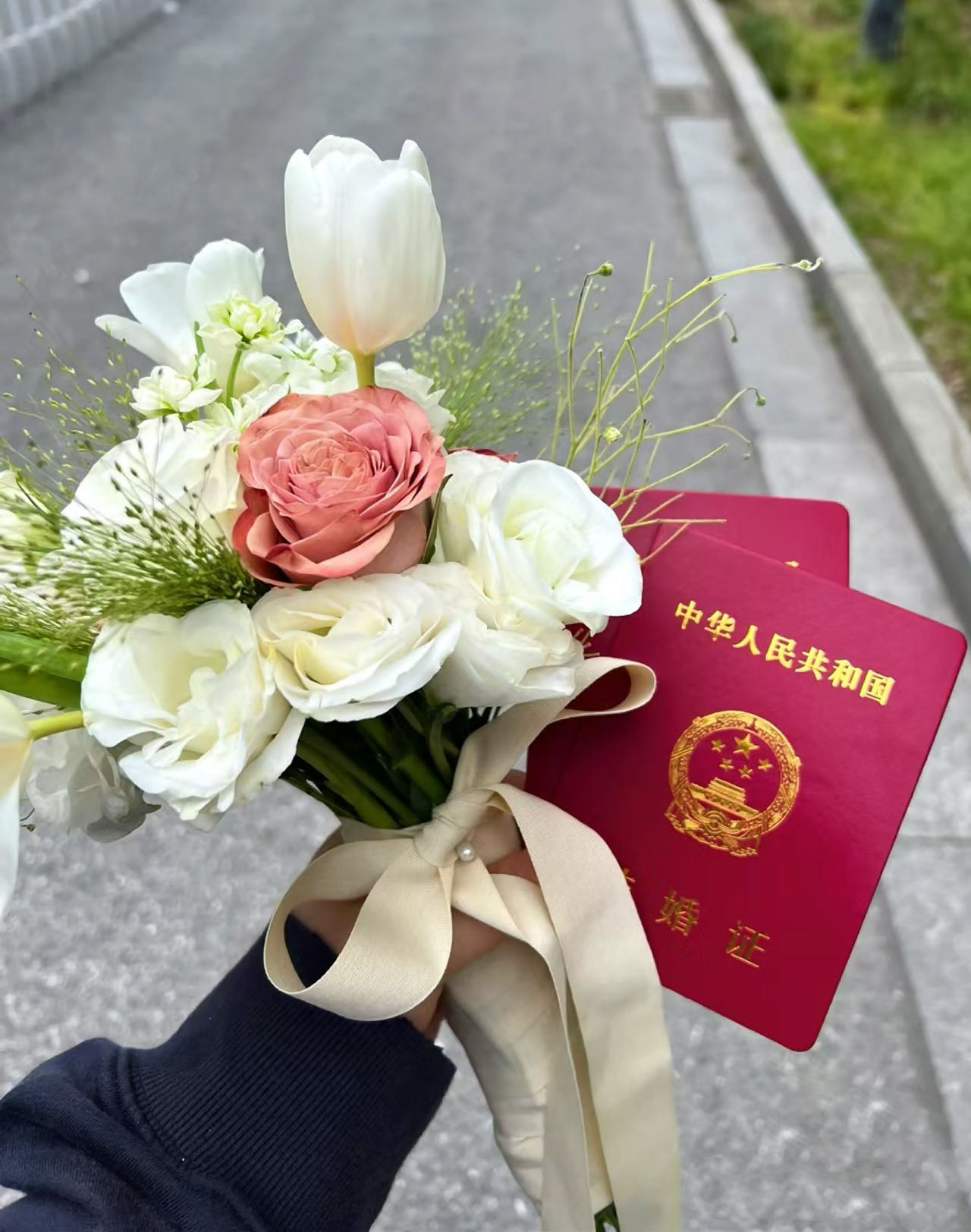• 领证快乐,愿你们的爱情像花儿一样绽放,幸福永久。