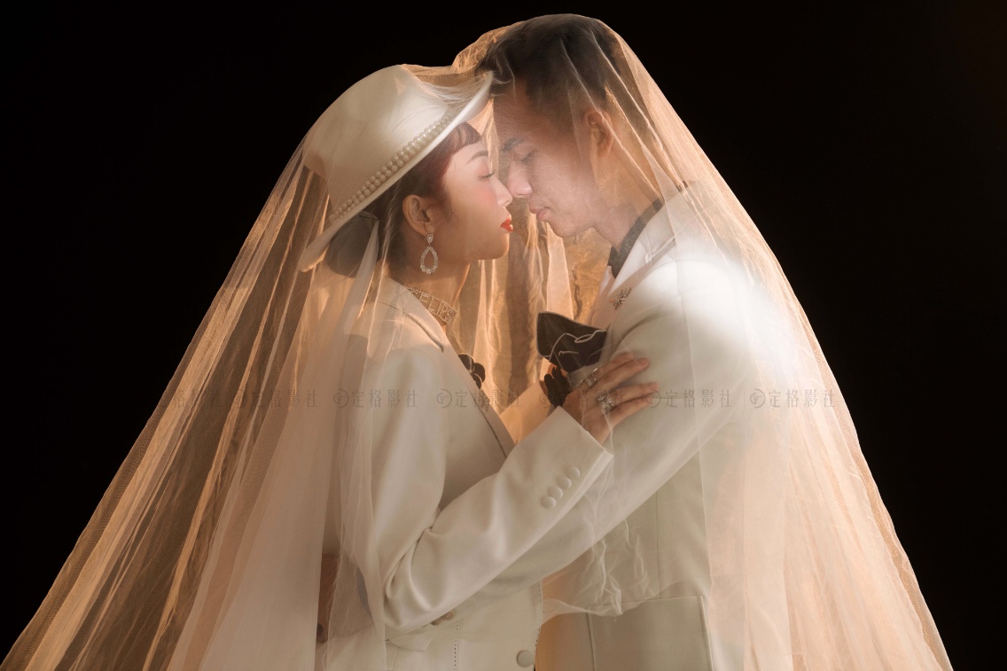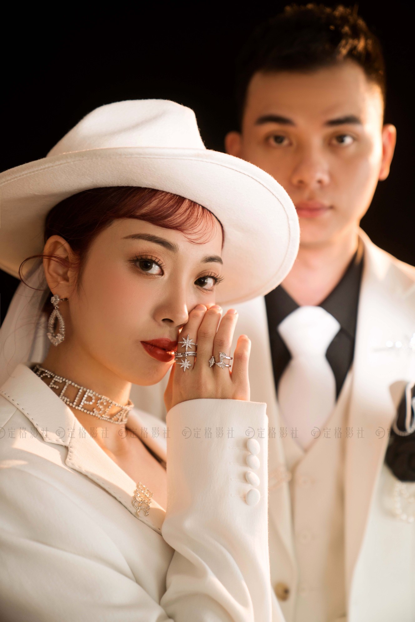 • 法式平沿帽 👒 搭配中性的西装 华丽细节凸显动静之间 高级迷幻光影🌌 交错弥漫着复古的法式格调🎞 浓厚古典而优雅的美感与艺术氛围的婚纱照