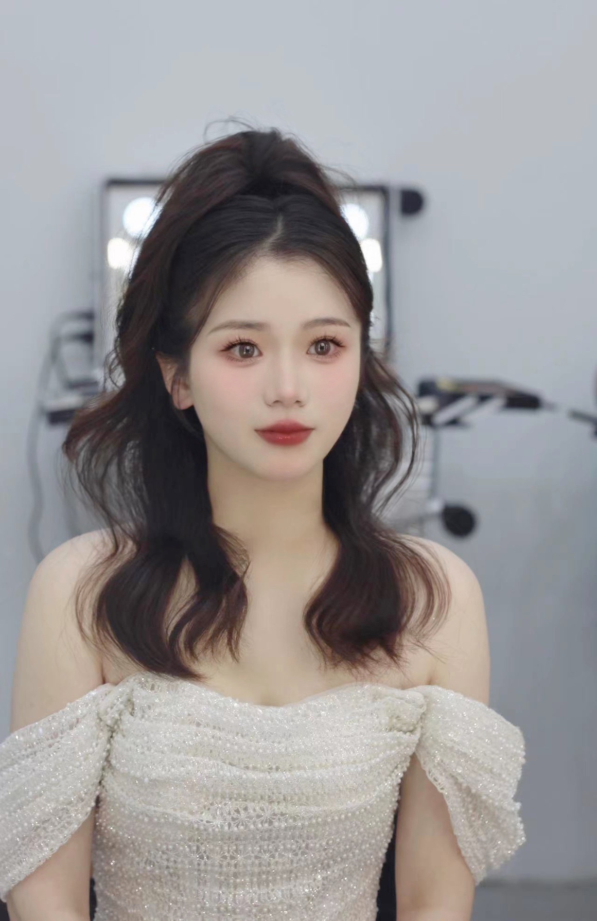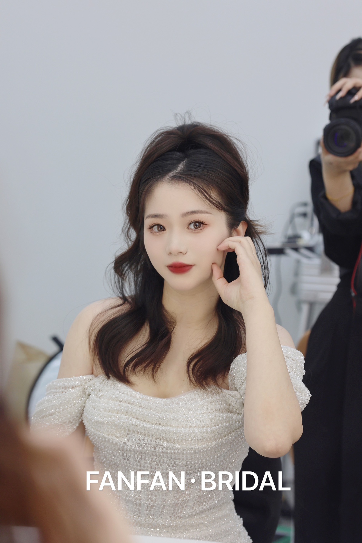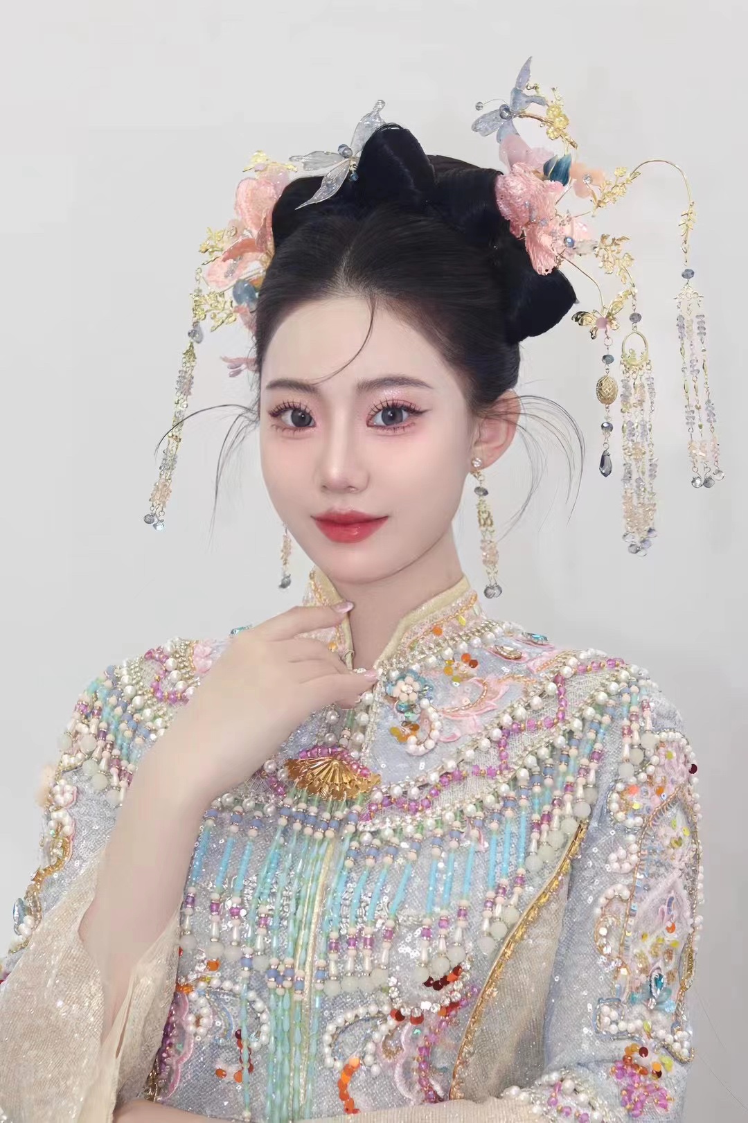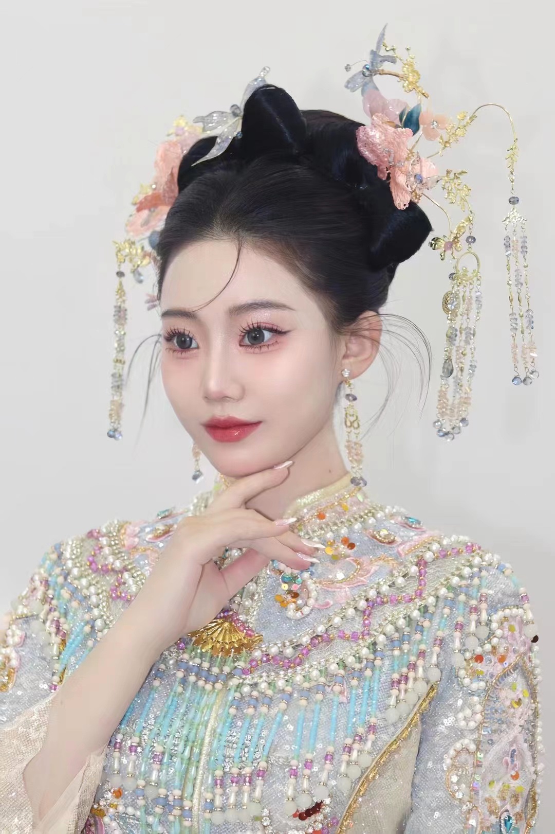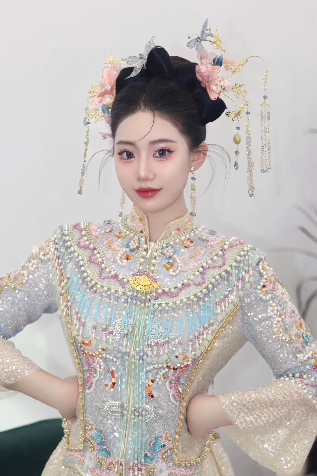• 我要感谢漂亮的化妆师老师! 化妆师老师的化妆技术很棒,尽管化妆时间很长但小姐姐非常的有耐心,每一根头发丝都要搞的好好的几套造型都很漂亮,辛苦啦! 把我的眼妆画的瞬间放大,包括睫毛也是根据每个人的眼型一点一点进行调整,太爱了 他们家衣服也非常漂亮😻