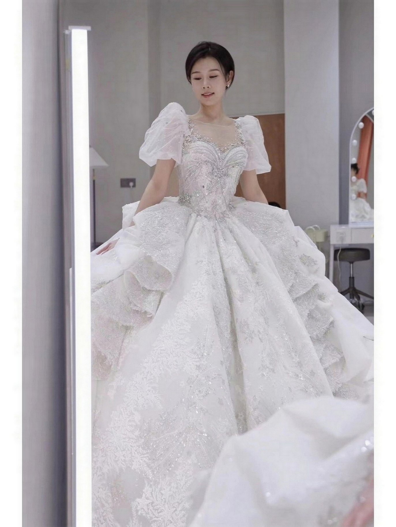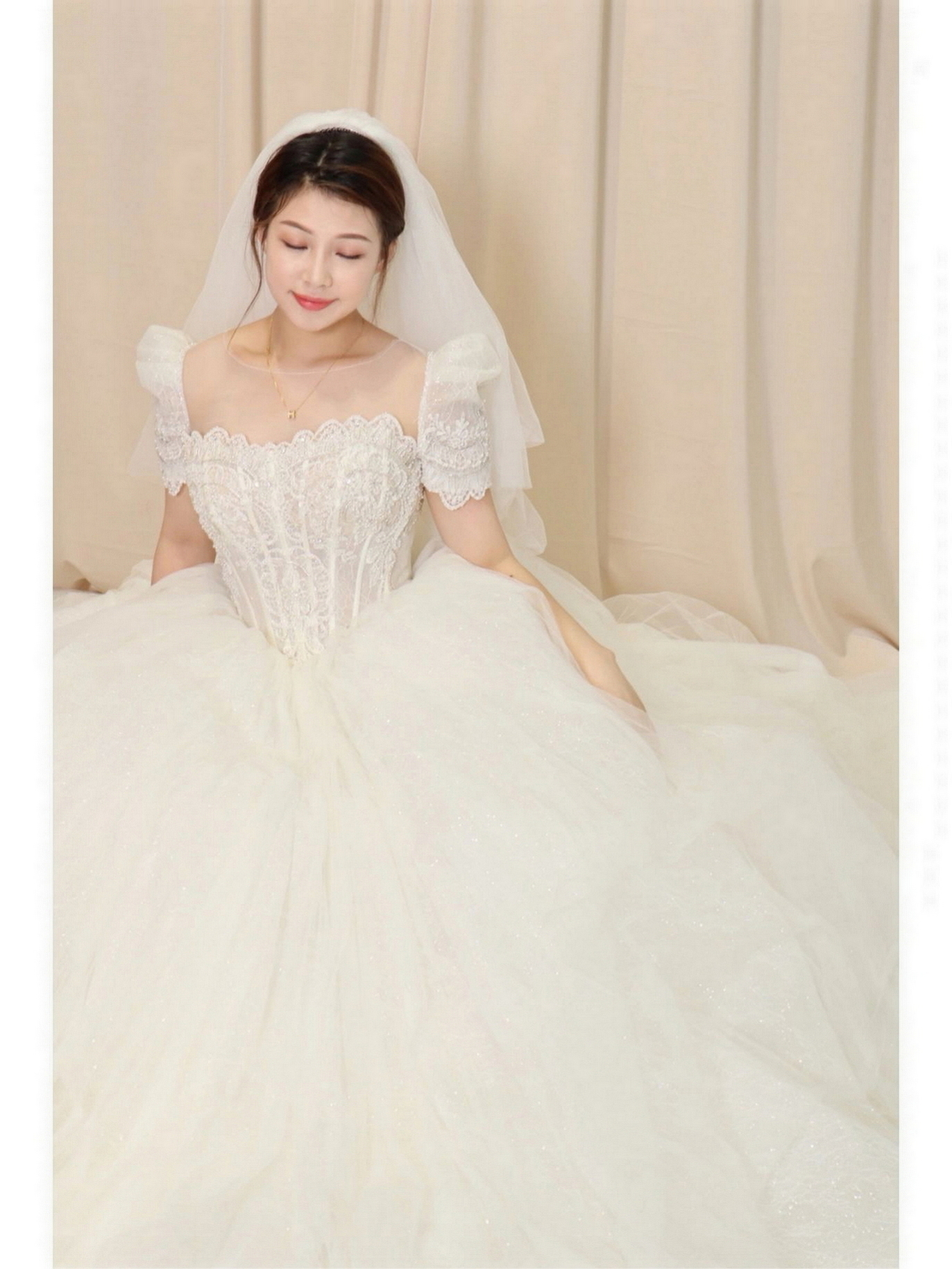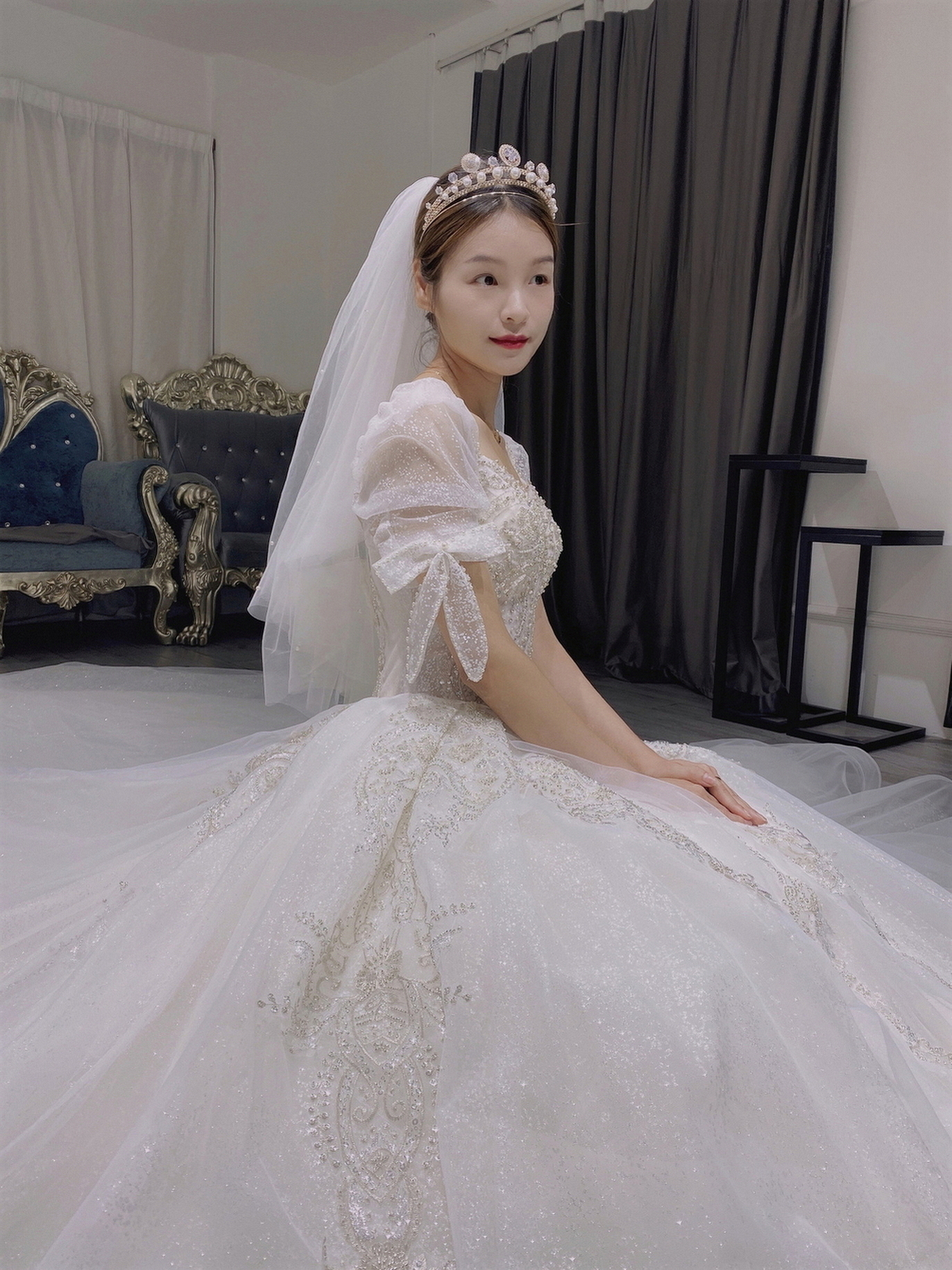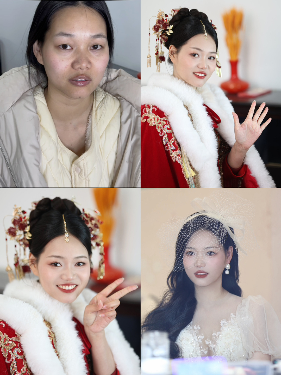 • 我要感谢漂亮的化妆师老师! 化妆师老师的化妆技术很棒,尽管化妆时间很长但小姐姐非常的有耐心,每一根头发丝都要搞的好好的几套造型都很漂亮,辛苦啦! 把我的眼妆画的瞬间放大,包括睫毛也是根据每个人的眼型一点一点进行调整,太爱了 他们家衣服也非常漂亮😻