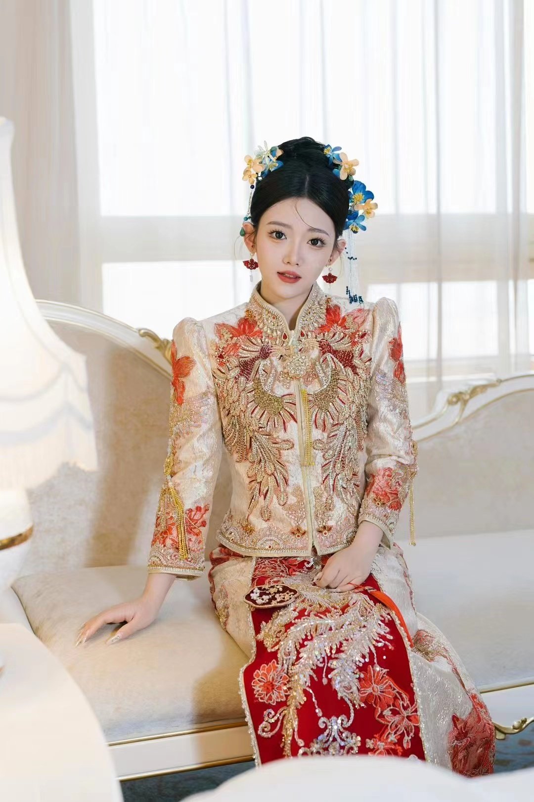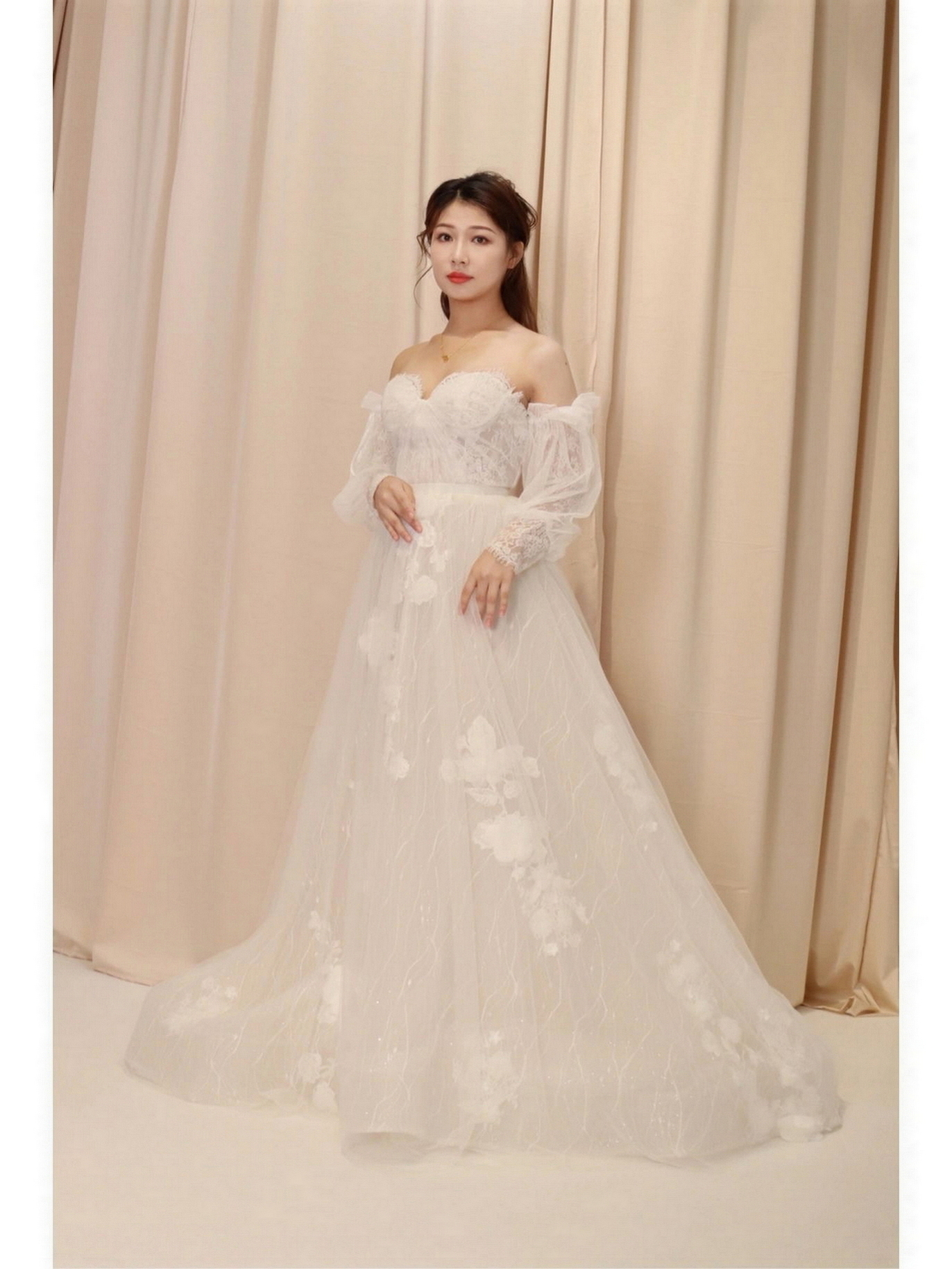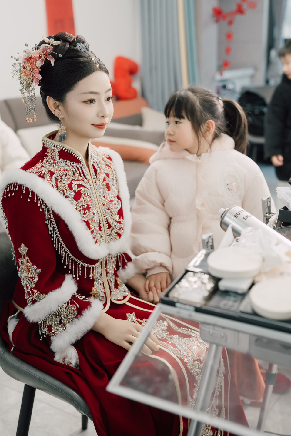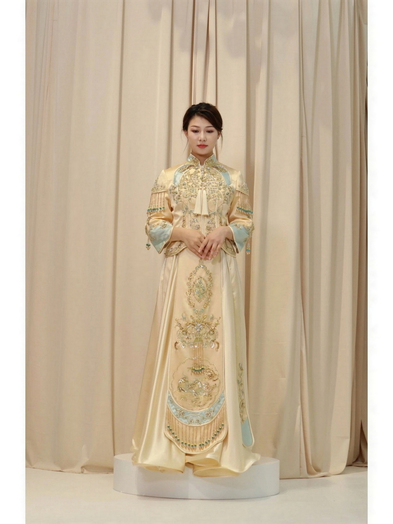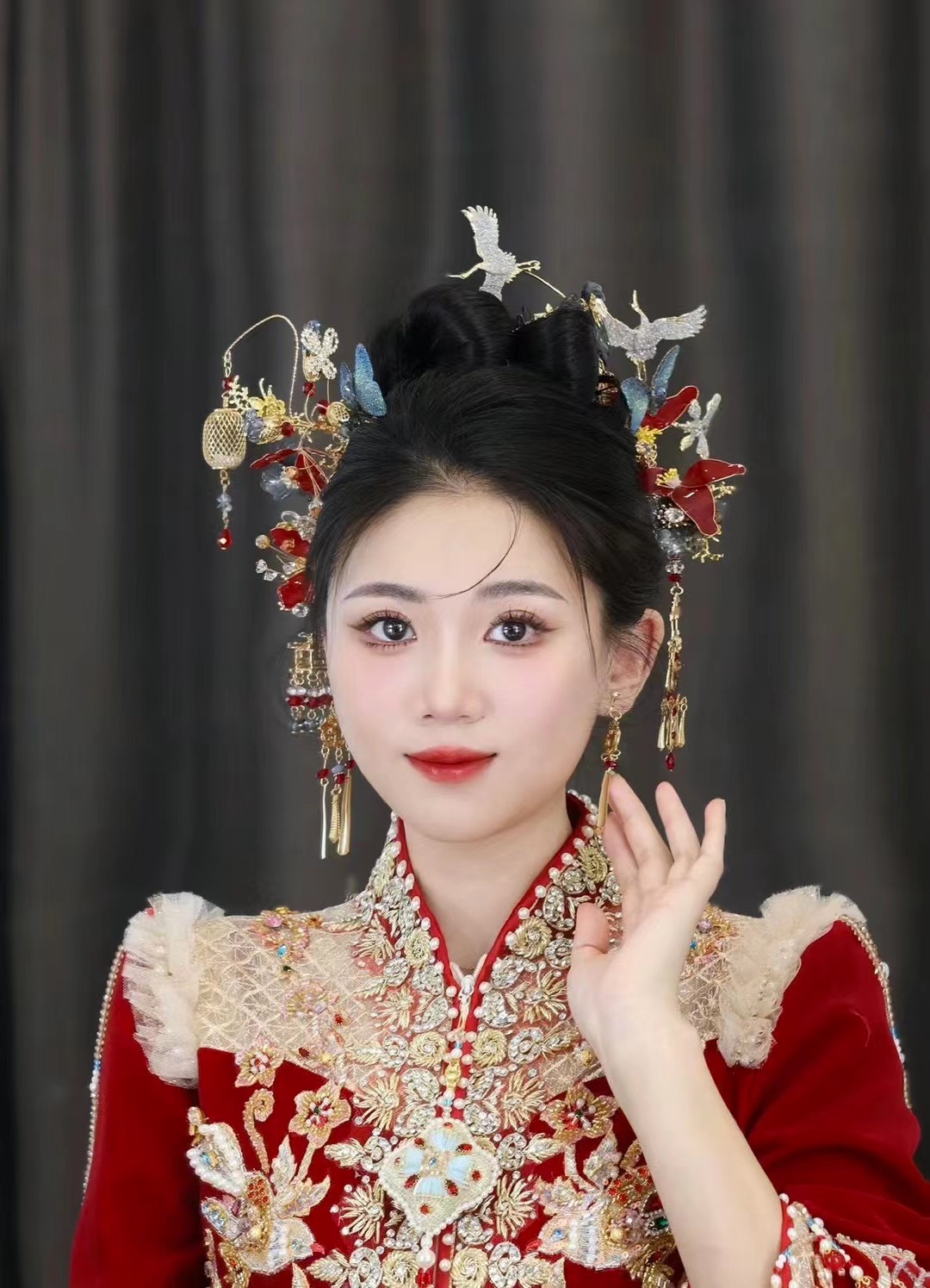 • 我要感谢漂亮的化妆师老师! 化妆师老师的化妆技术很棒,尽管化妆时间很长但小姐姐非常的有耐心,每一根头发丝都要搞的好好的几套造型都很漂亮,辛苦啦! 把我的眼妆画的瞬间放大,包括睫毛也是根据每个人的眼型一点一点进行调整,太爱了 他们家衣服也非常漂亮😻