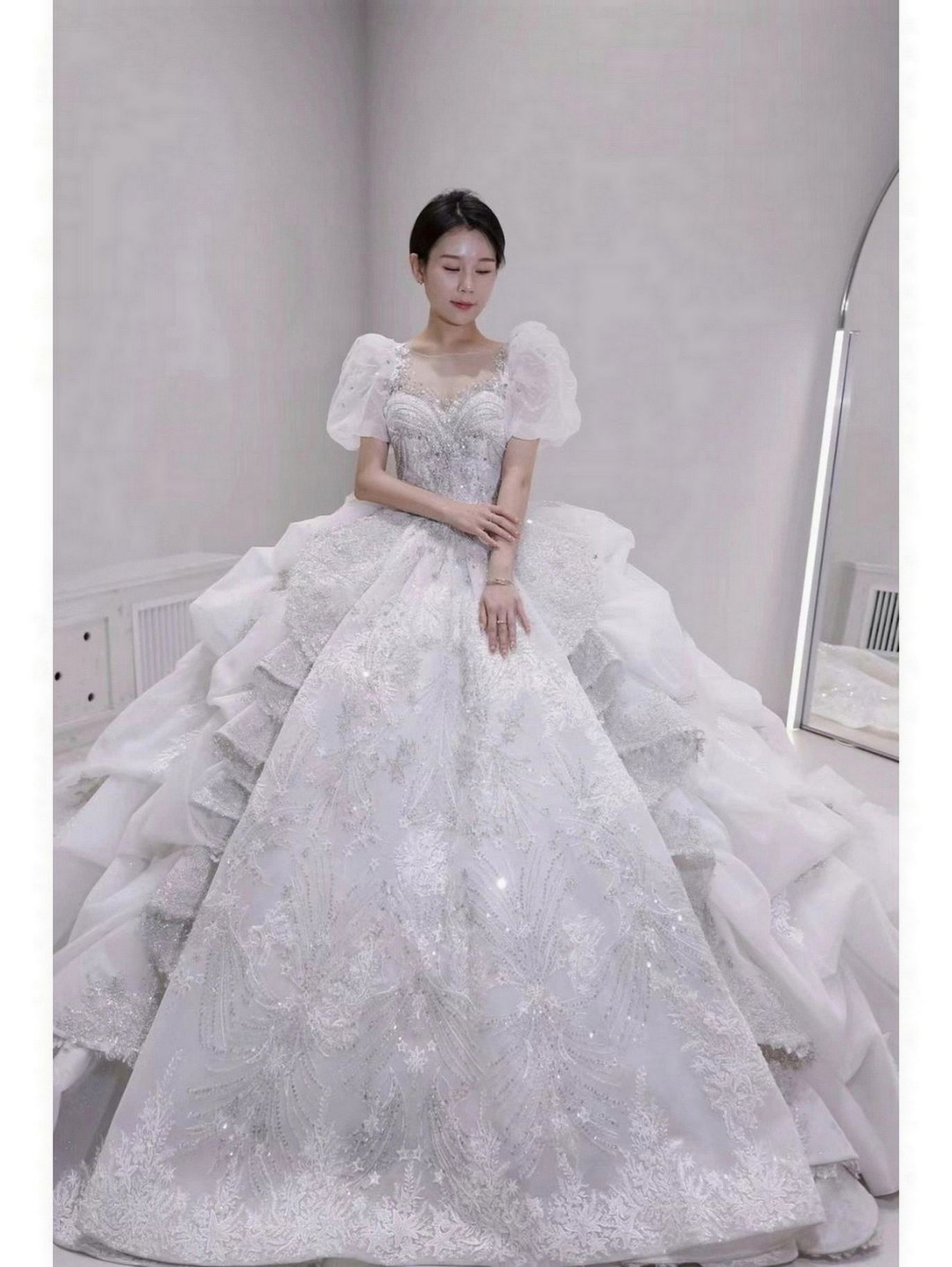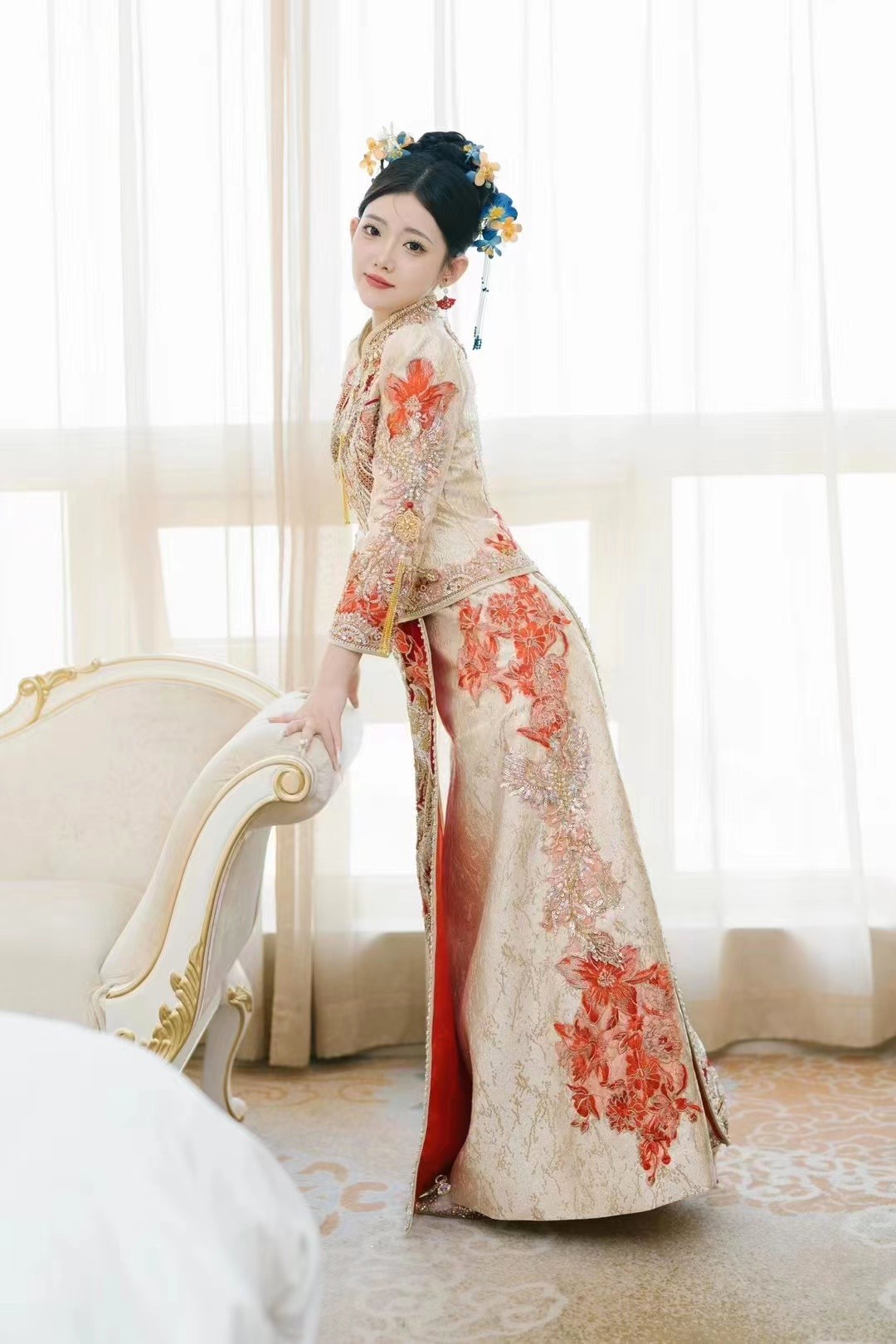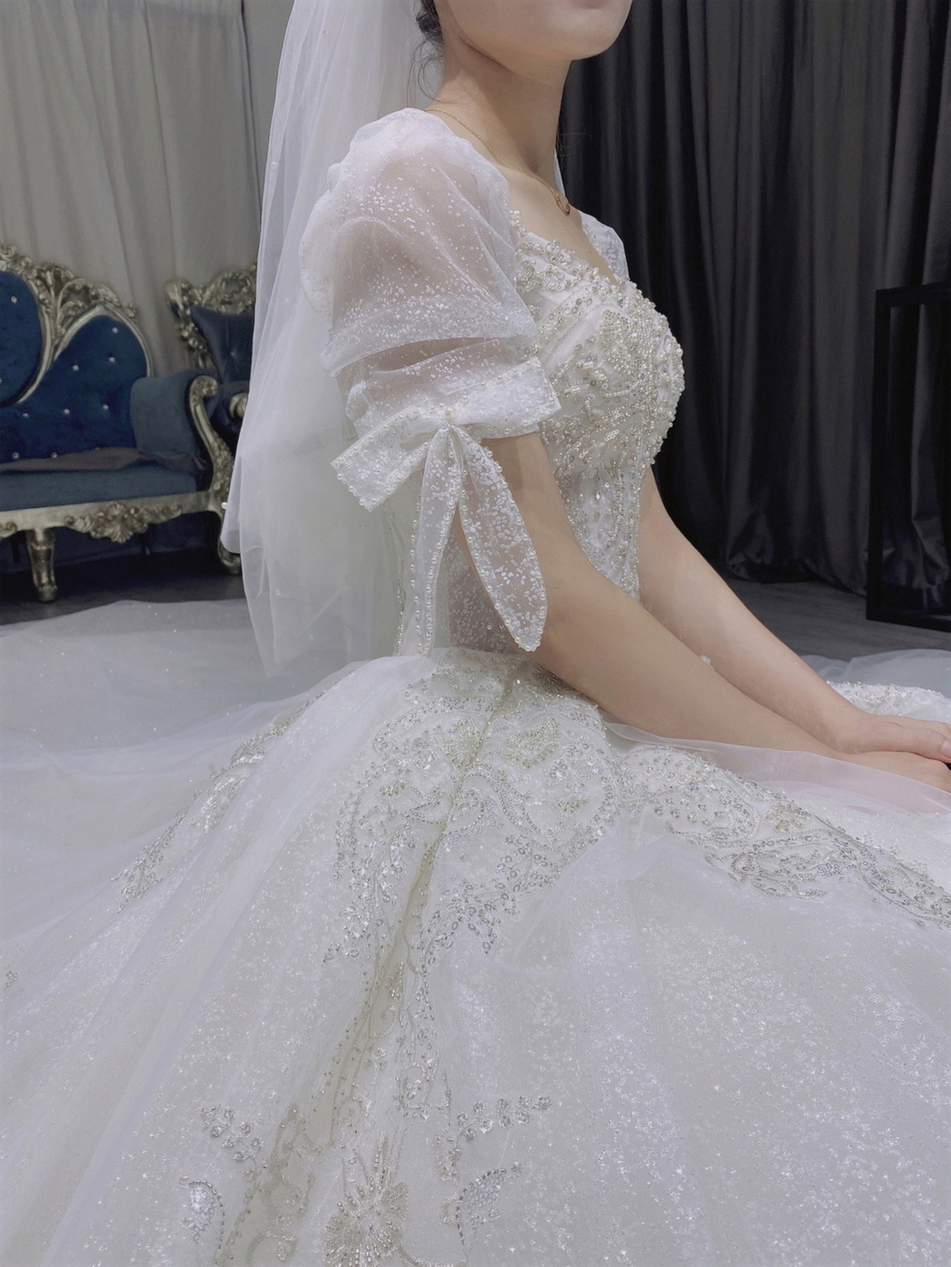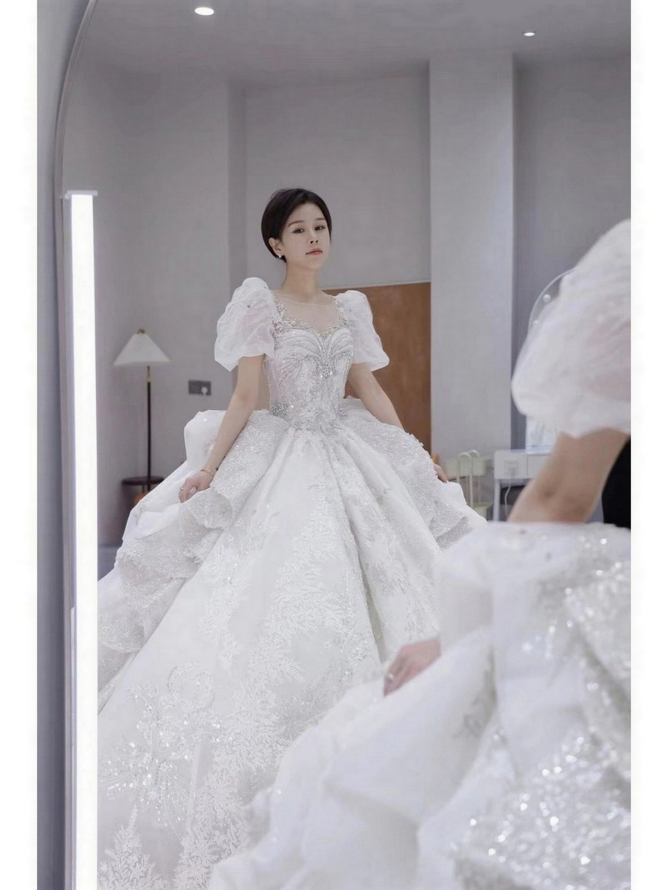 • 我要感谢漂亮的化妆师老师! 化妆师老师的化妆技术很棒,尽管化妆时间很长但小姐姐非常的有耐心,每一根头发丝都要搞的好好的几套造型都很漂亮,辛苦啦! 把我的眼妆画的瞬间放大,包括睫毛也是根据每个人的眼型一点一点进行调整,太爱了 他们家衣服也非常漂亮😻