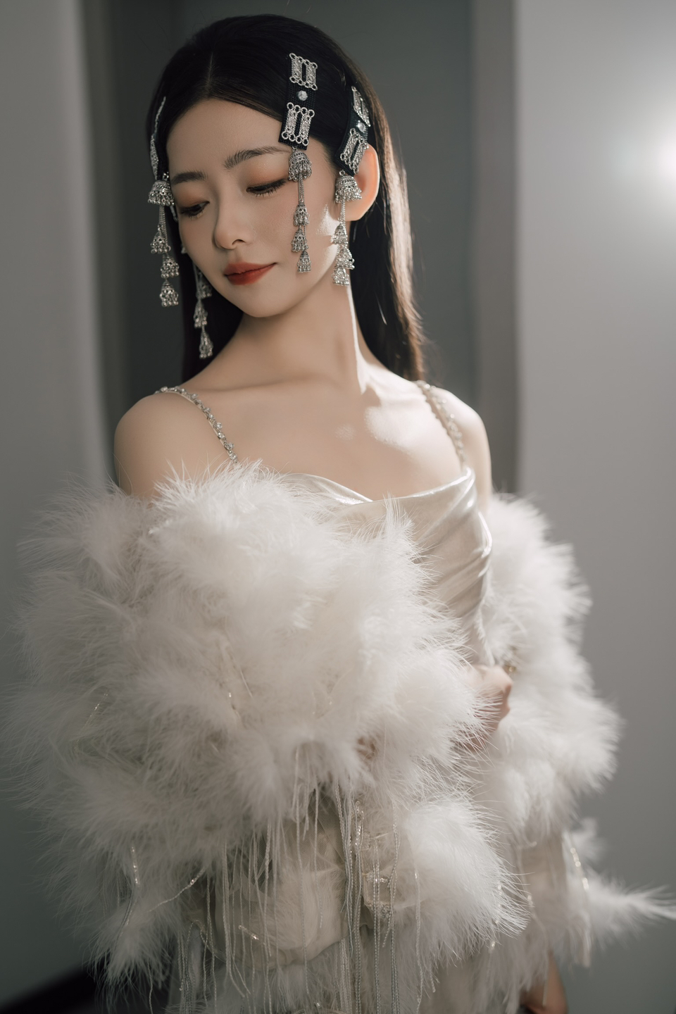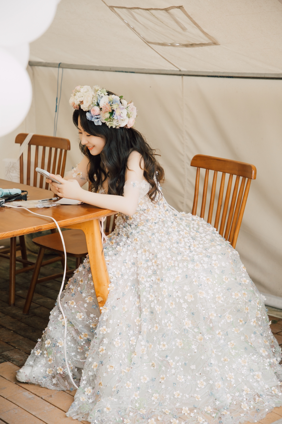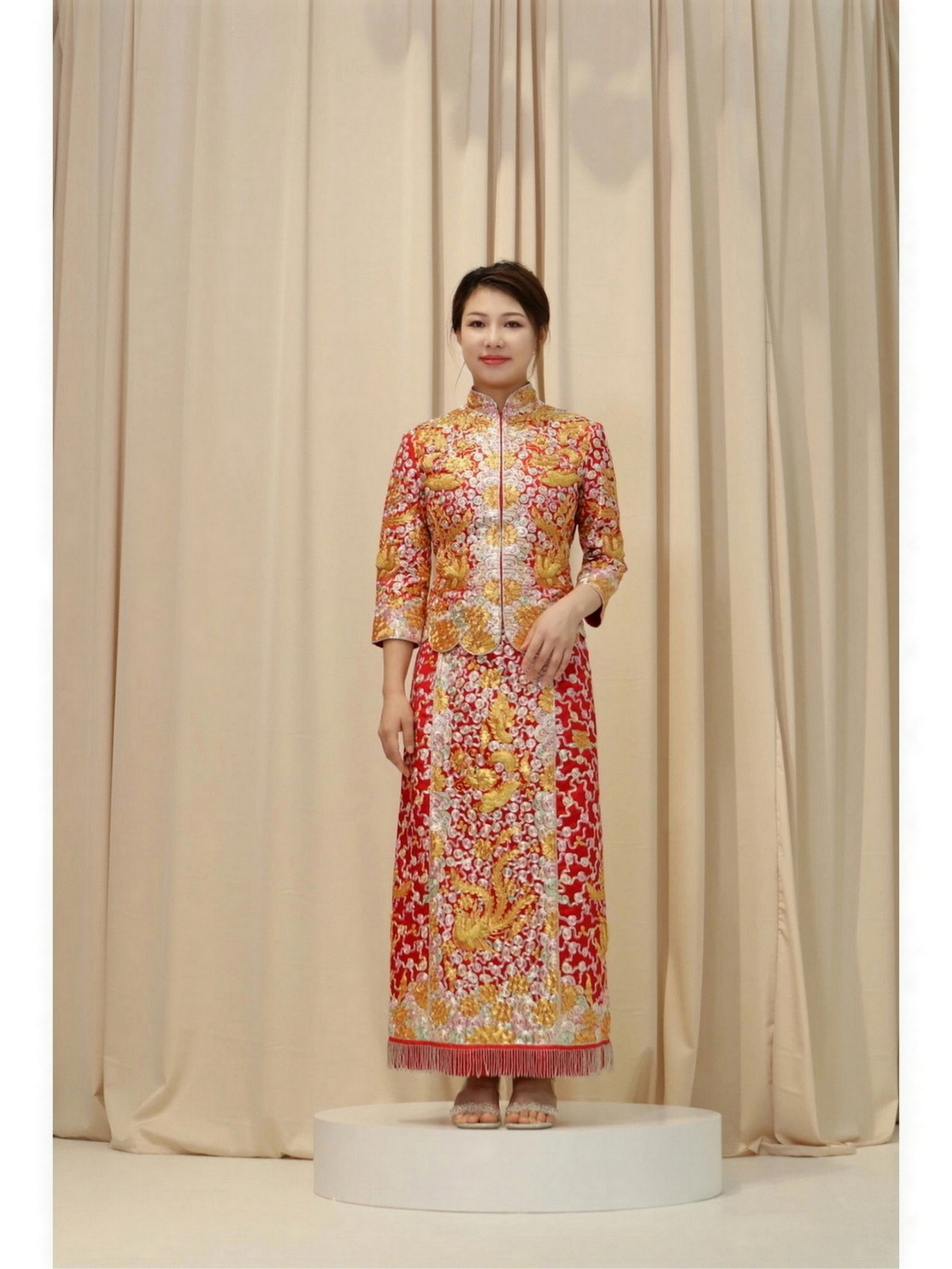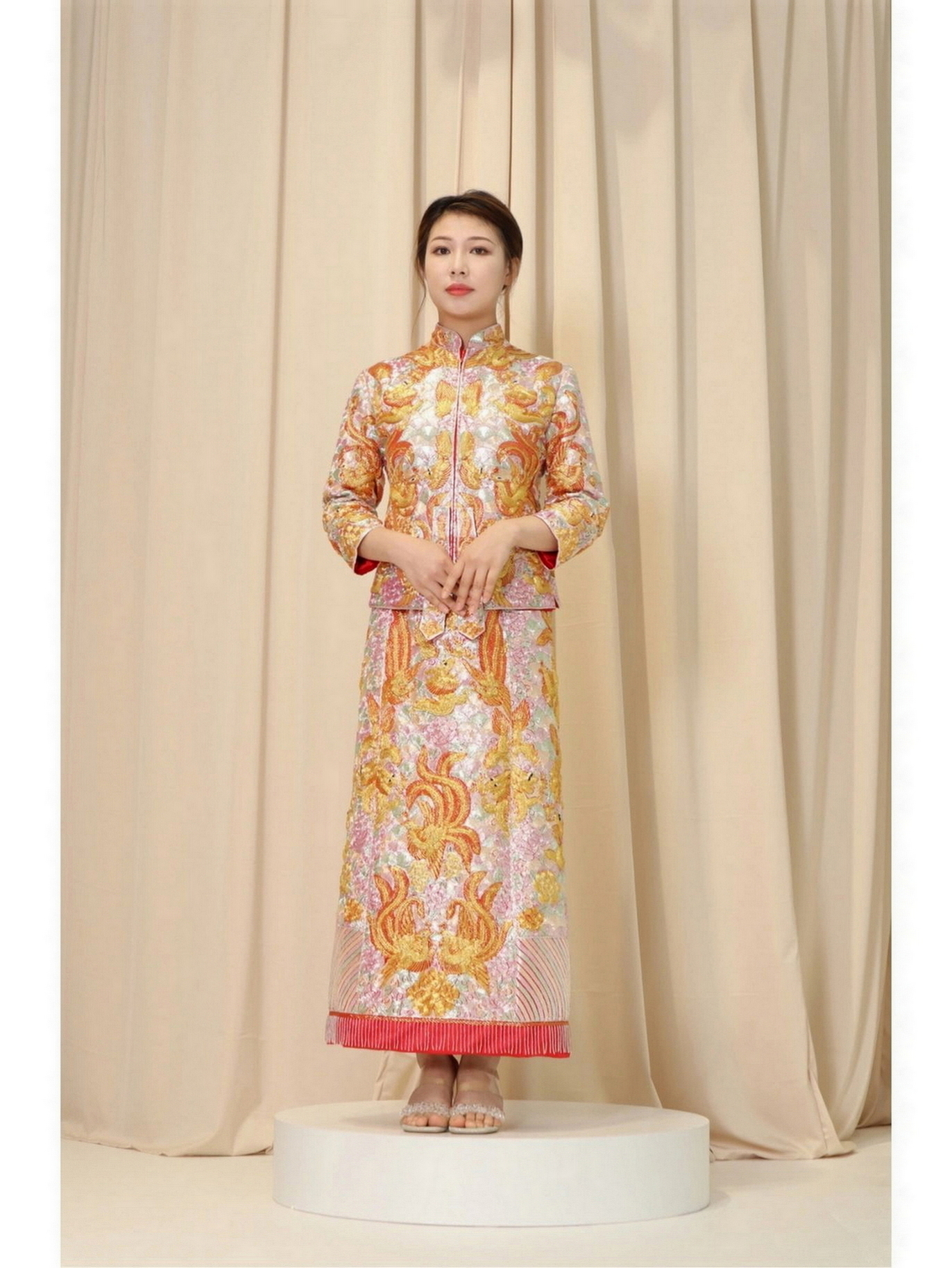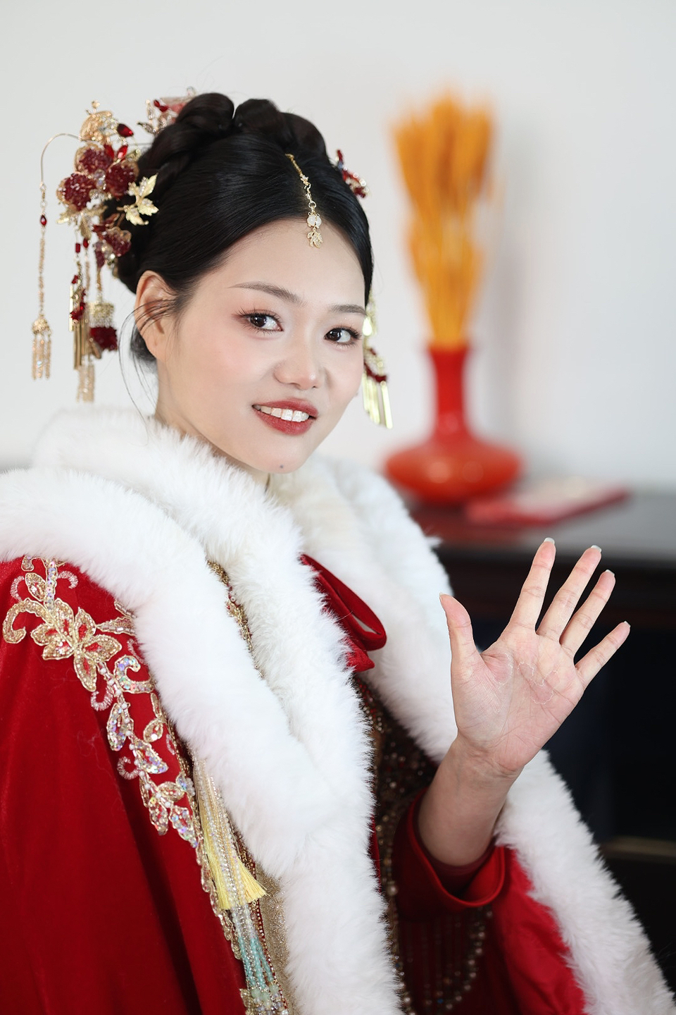 • 我要感谢漂亮的化妆师老师! 化妆师老师的化妆技术很棒,尽管化妆时间很长但小姐姐非常的有耐心,每一根头发丝都要搞的好好的几套造型都很漂亮,辛苦啦! 把我的眼妆画的瞬间放大,包括睫毛也是根据每个人的眼型一点一点进行调整,太爱了 他们家衣服也非常漂亮😻