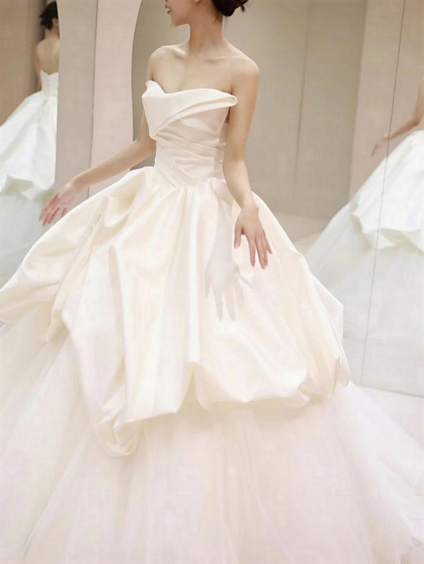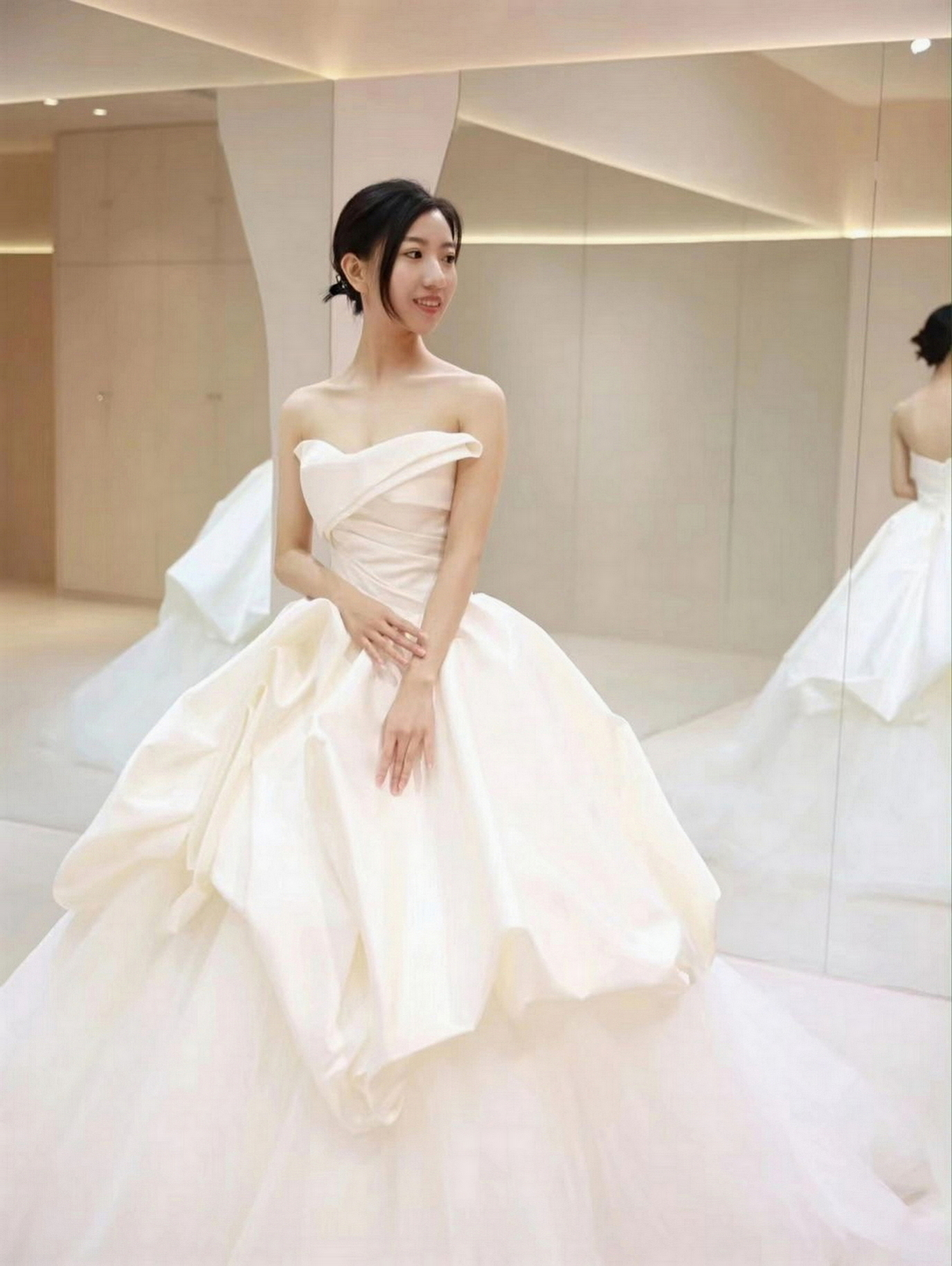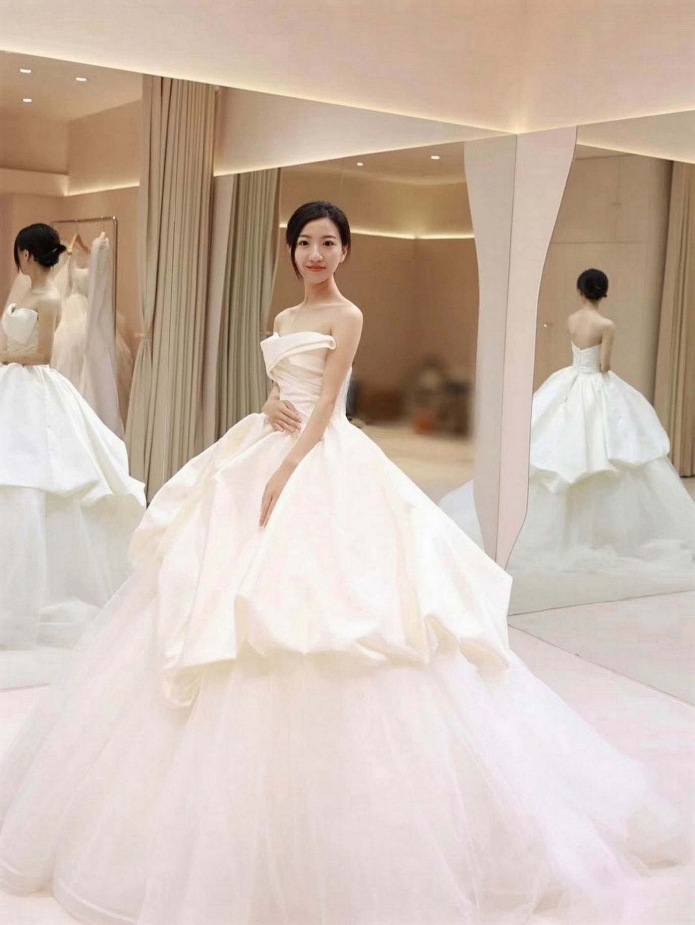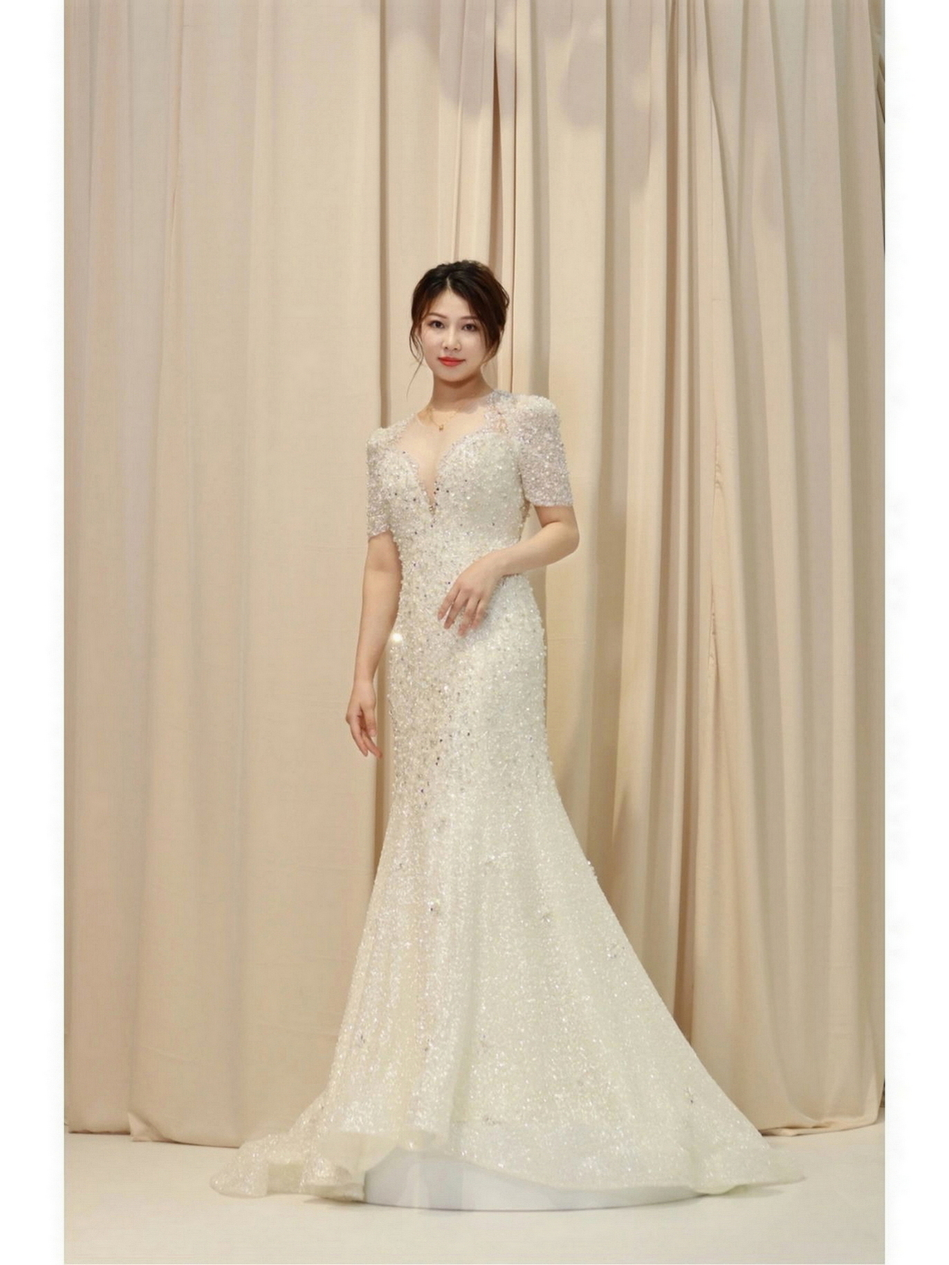 • 店里坏境非常好,工作人员小姐姐非常有耐心,衣服款式也蛮多的,范范老师化的妆真的很好看,婚礼当天超级满意